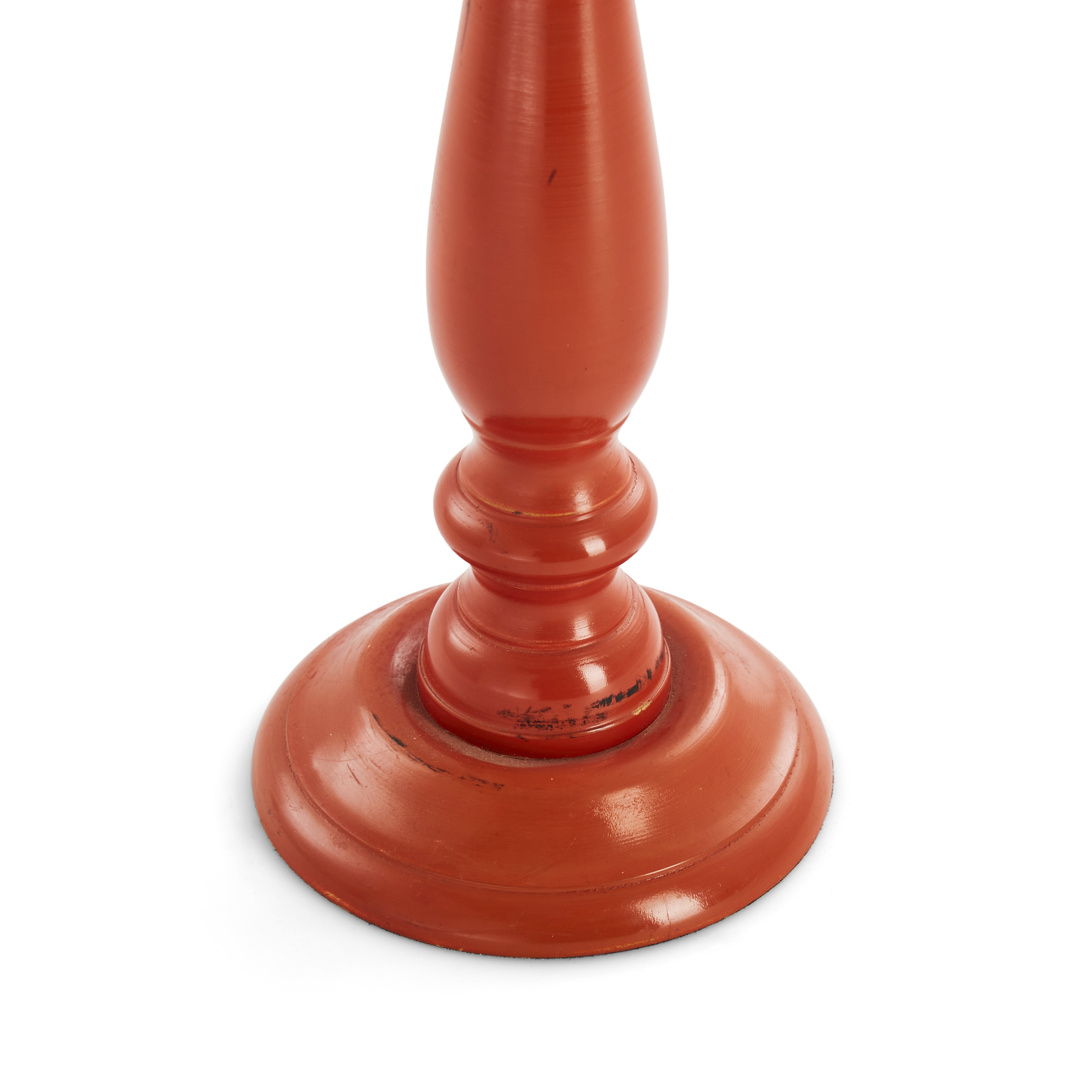Details: Red and orange vase with red flower detail Dimensions: 7" H x 4" W x 4" D