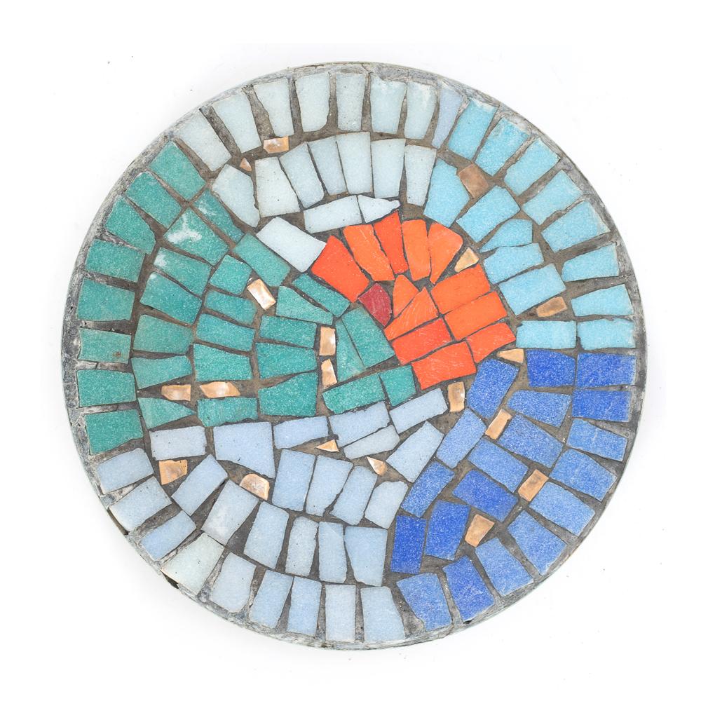 Description : Multicolored glass mosaic design plate Dimensions: 1" H x 8" W x 8" D