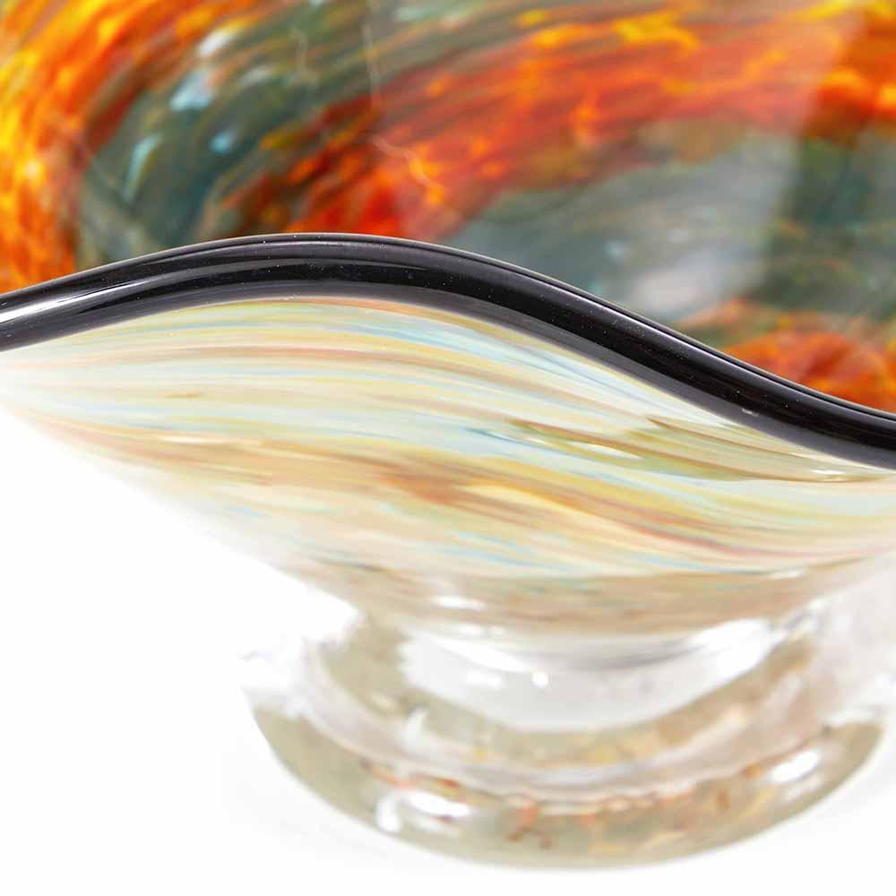 Details: Glass multi-colored spiral bowl Dimensions: 5.5" H x 10" W x 10" D Quantity: 1