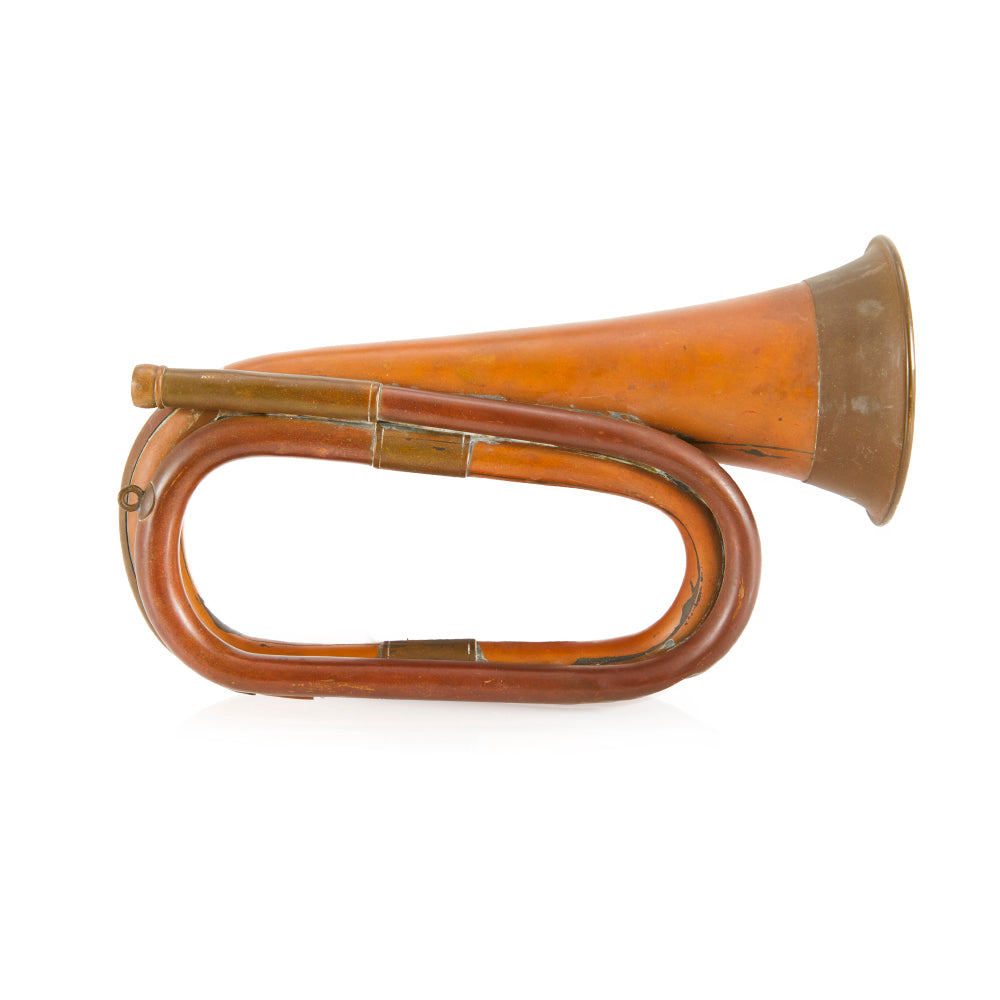 Details: Painted bronze bugle instrument Dimensions: 7" H x 12" W x 4" D Quantity: 1