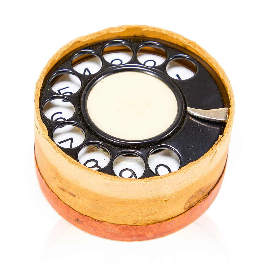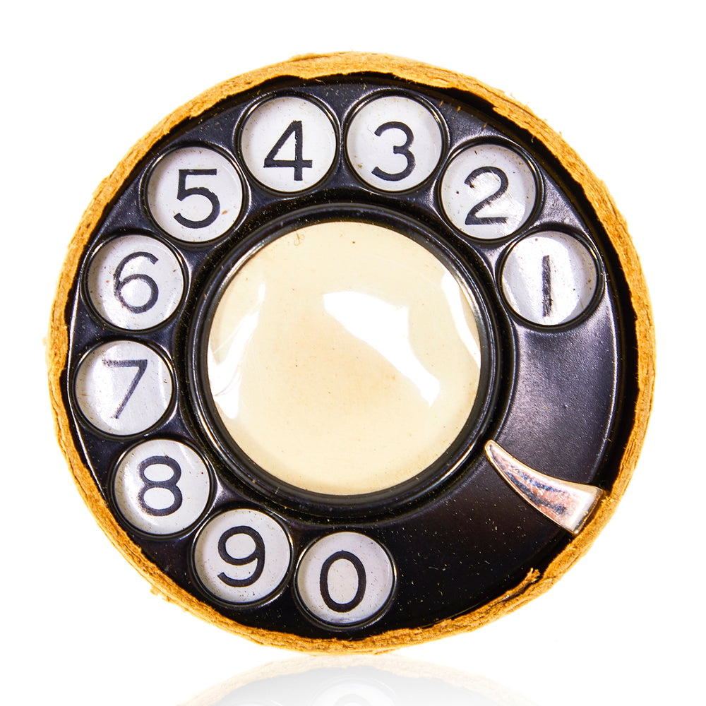 Details: Black rotary dial in orange leather case Dimensions: 2" H x 3" W x 3" D Quantity: 1
