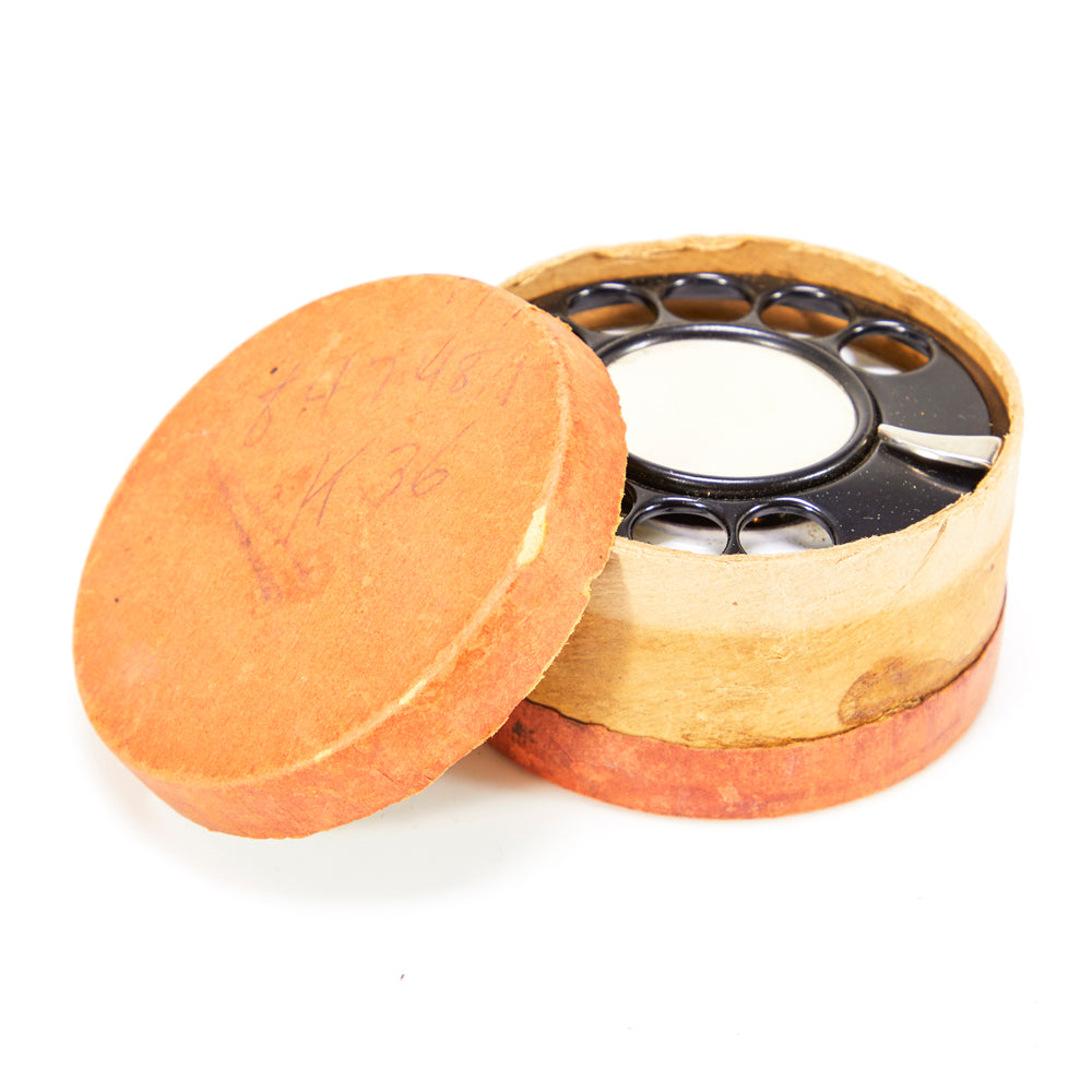 Details: Orange / white box with pattern on sides / top. Grey felt interior. Available in 2 other sizes - rented separately (see last pic)....