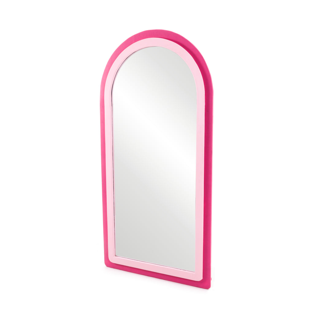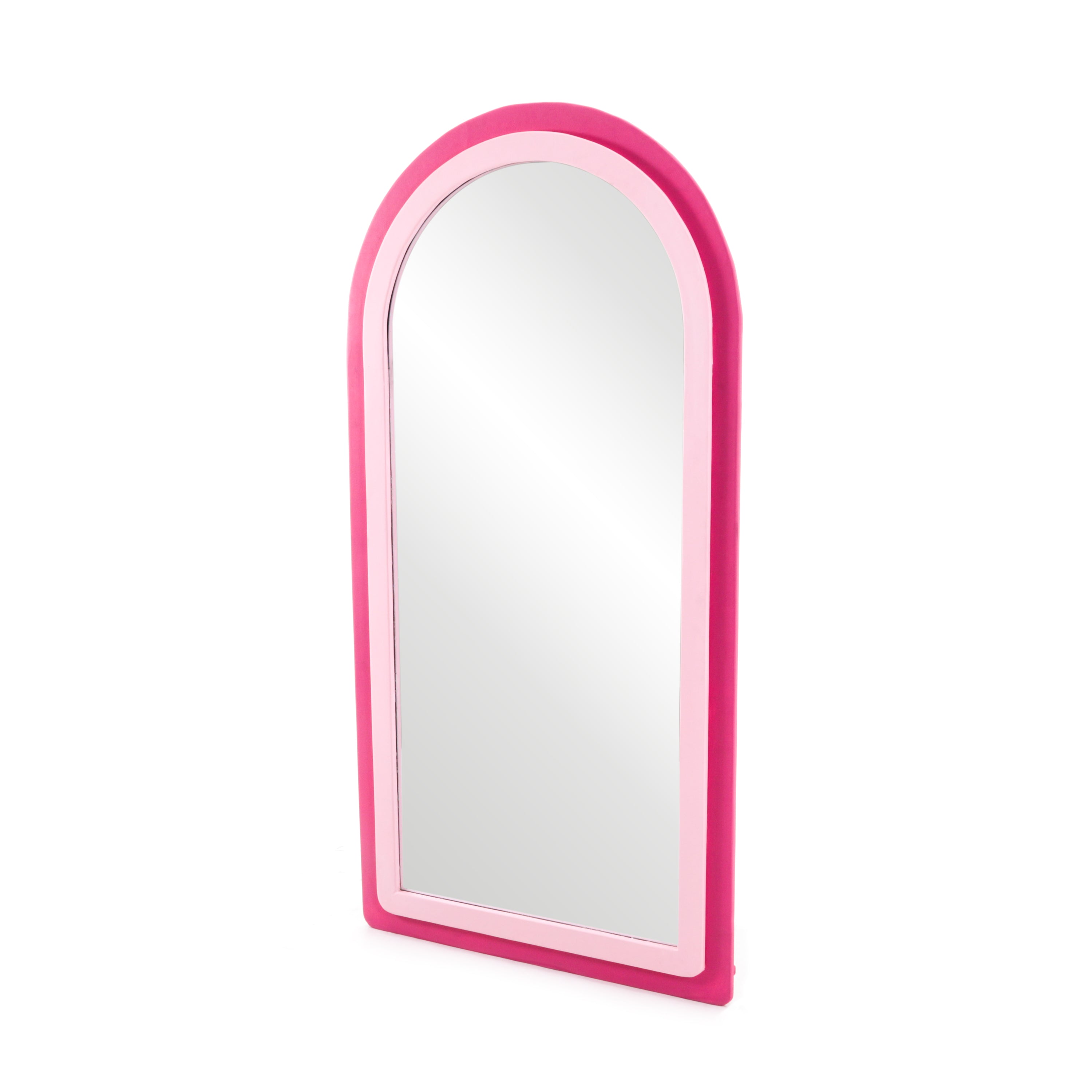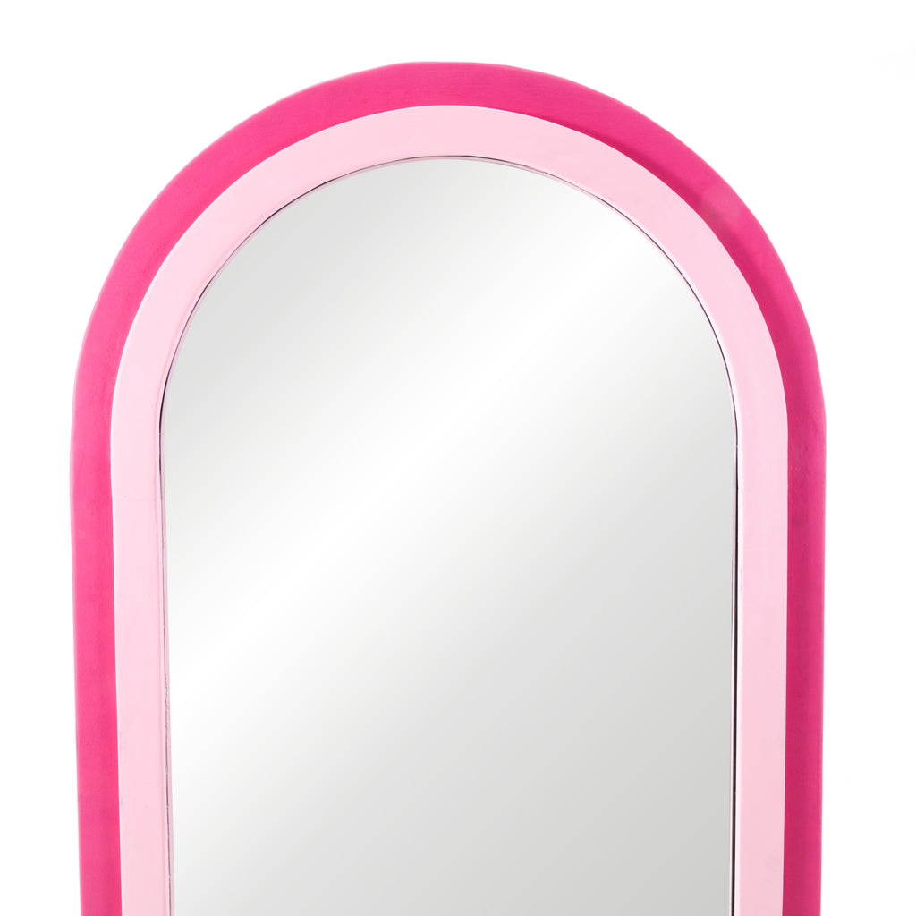 Details: Large arched floor mirror with hot and light pink painted frame Dimensions: 80.5" H x 40.75" W x 2.5" D