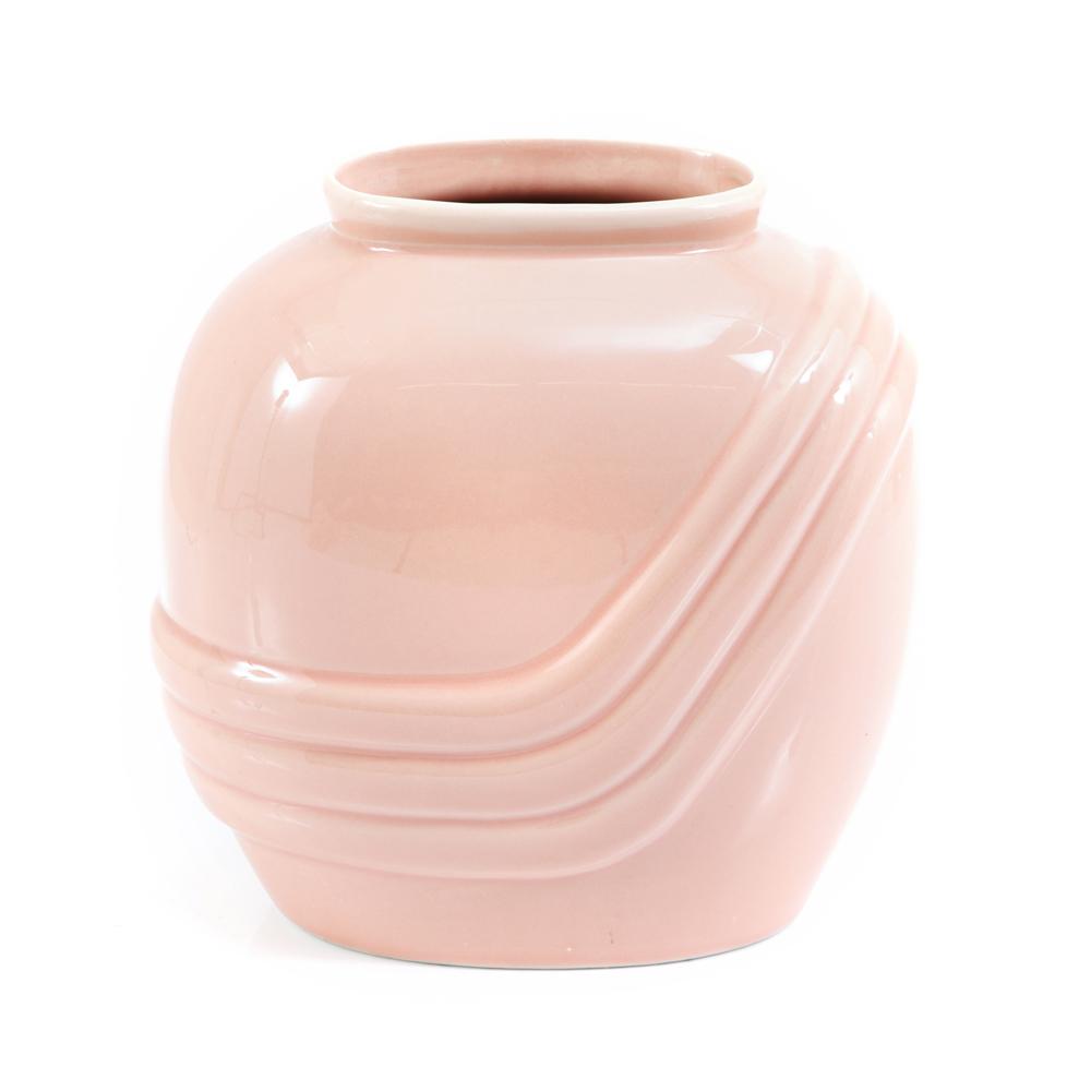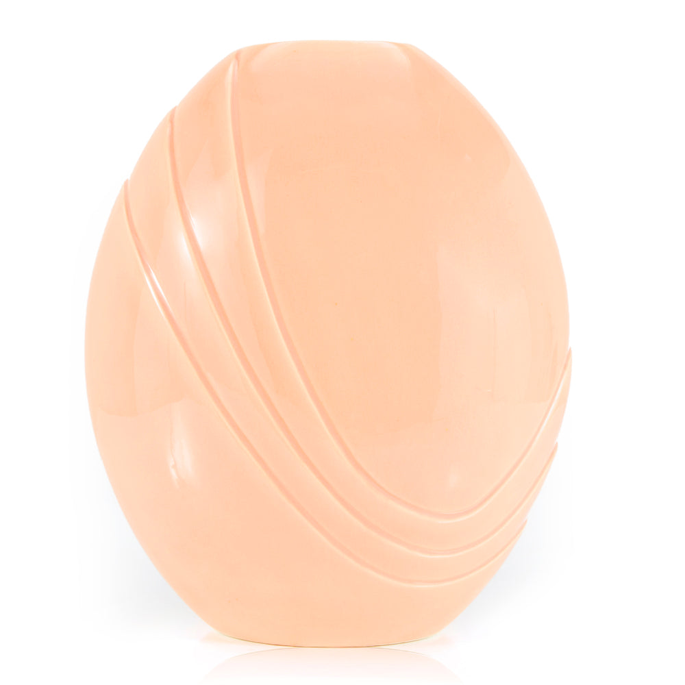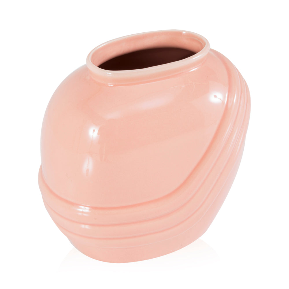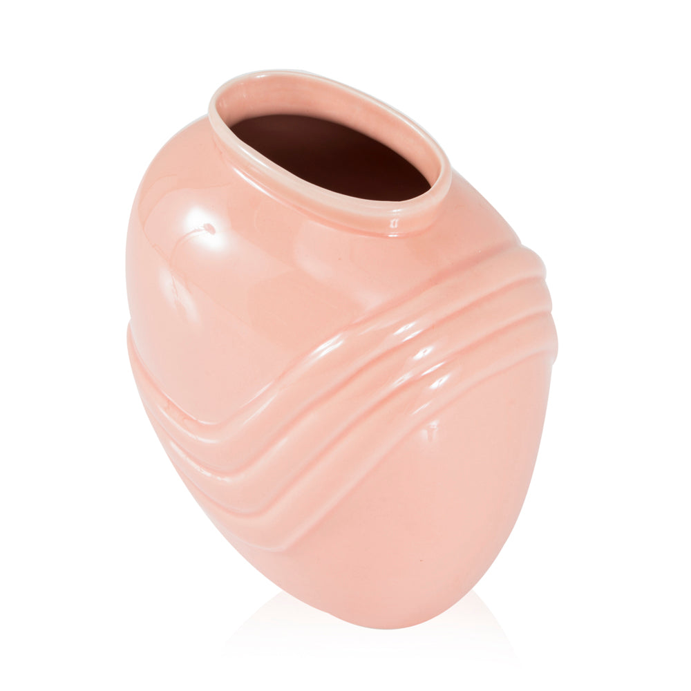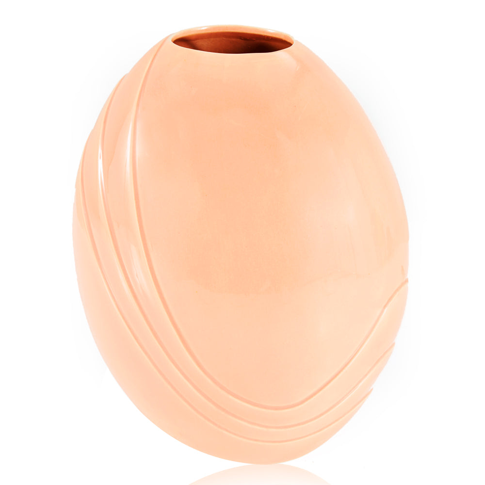 Details: Light pink egg shaped ceramic vase with tasteful ridges running asymmetrically across the body Dimensions: 15" H x 13" W x 6" D Quantity:...