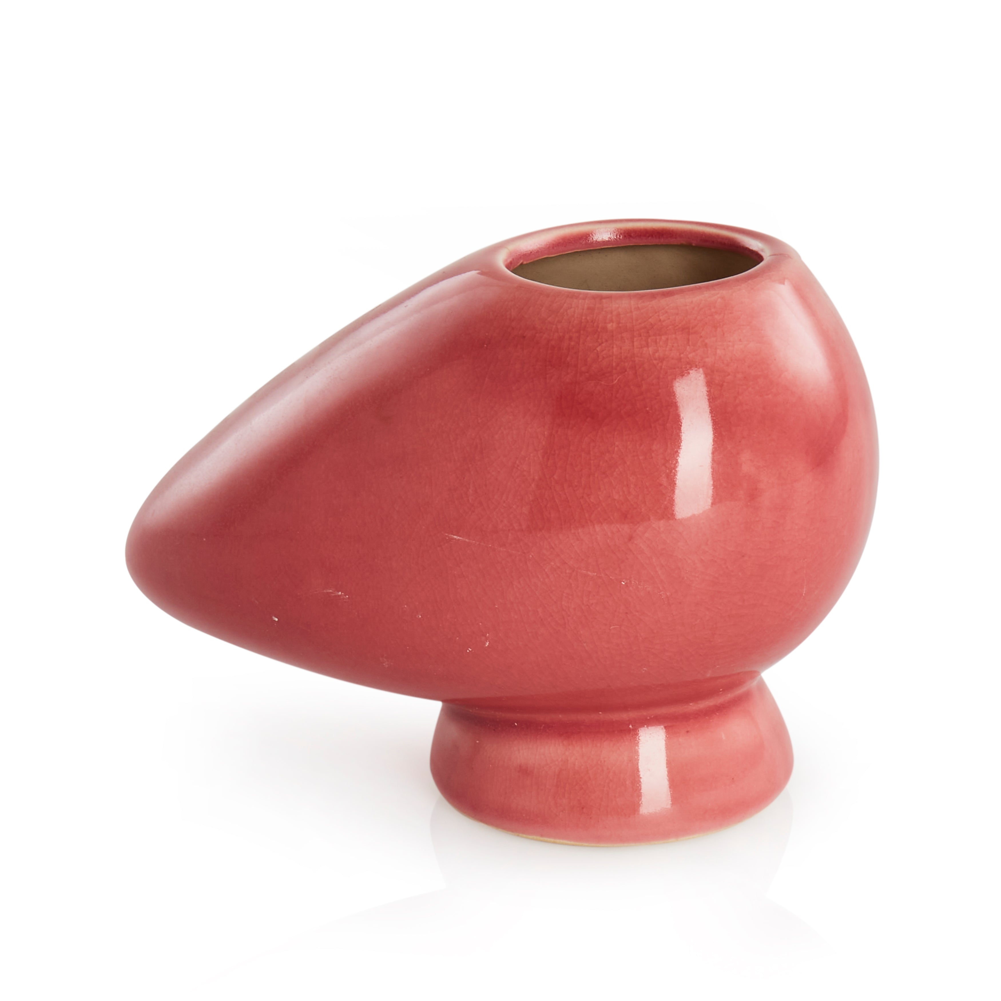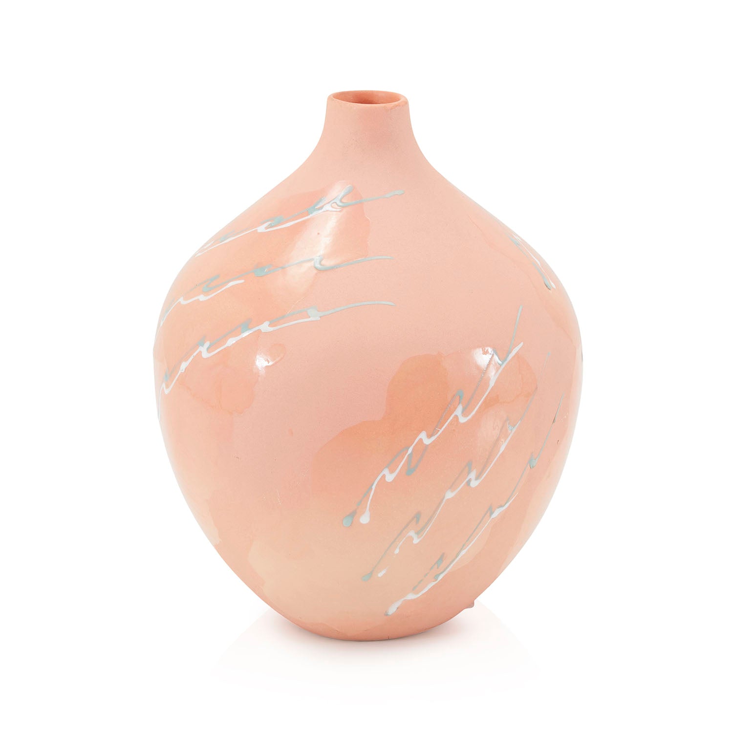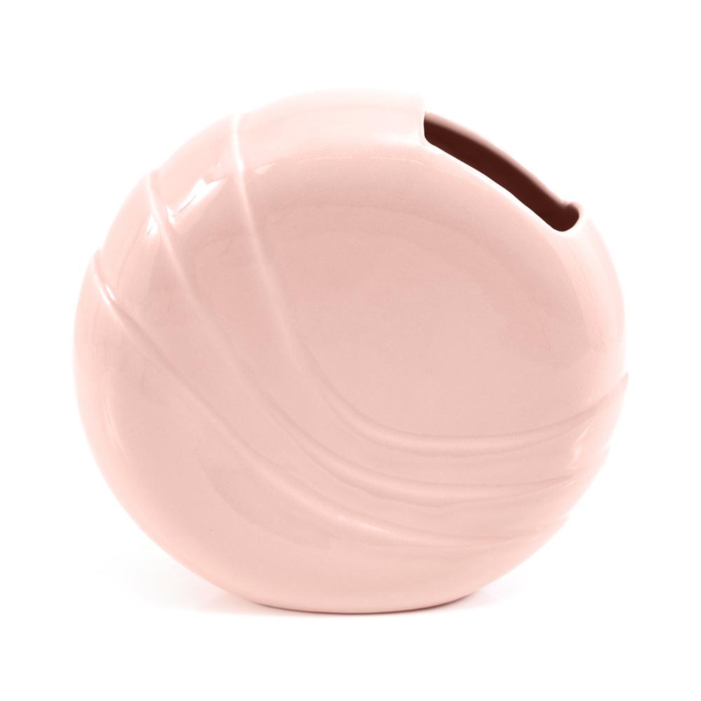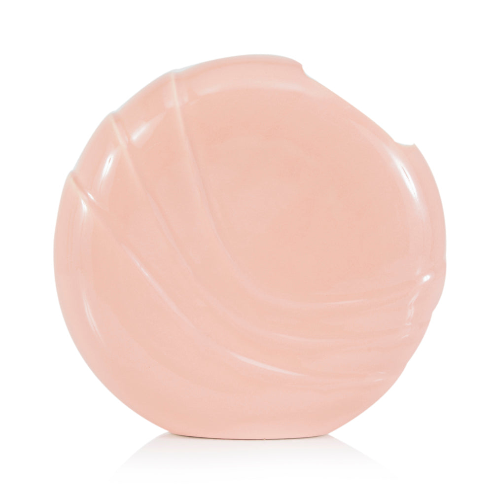 Details: Light pink egg shaped ceramic vase with tasteful ridges running asymmetrically across the body Dimensions: 15" H x 13" W x 6" D Quantity:...
