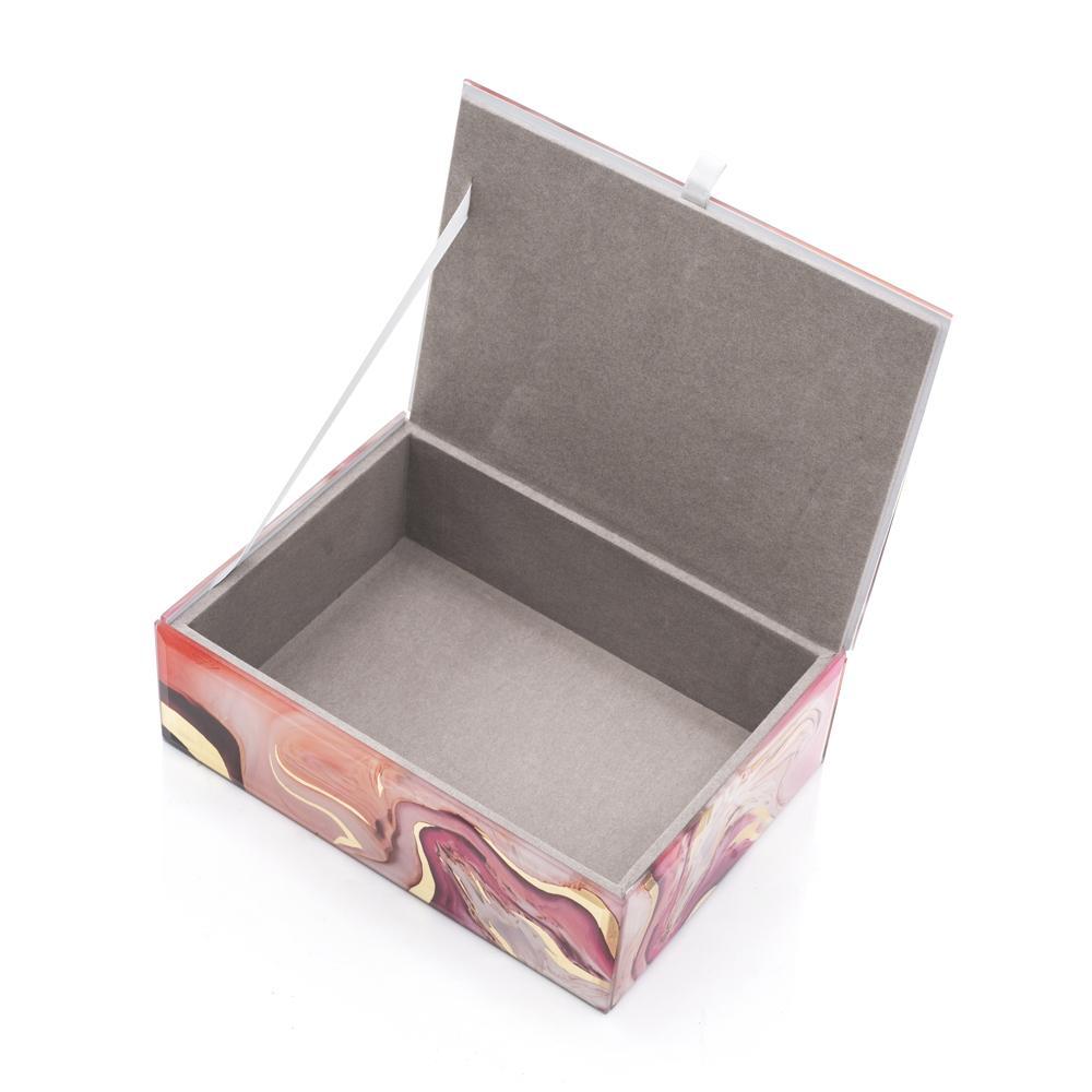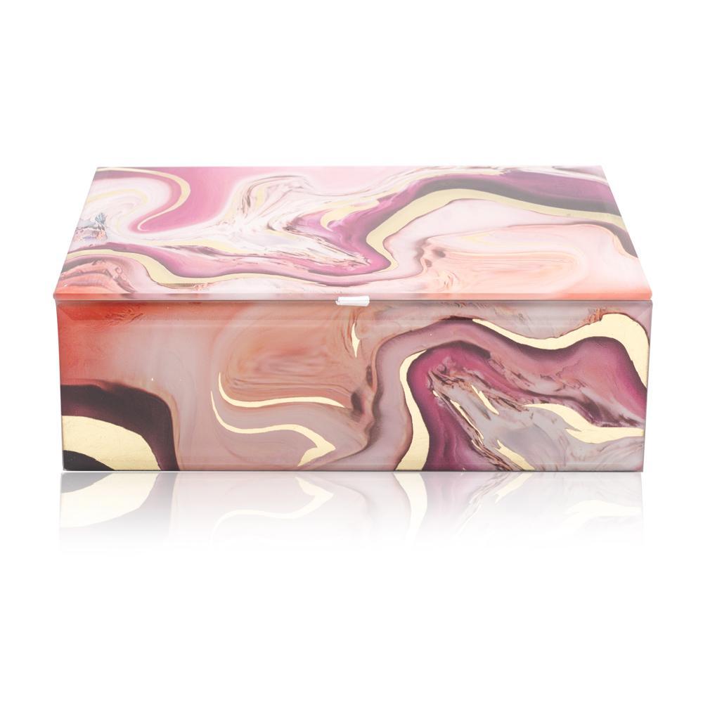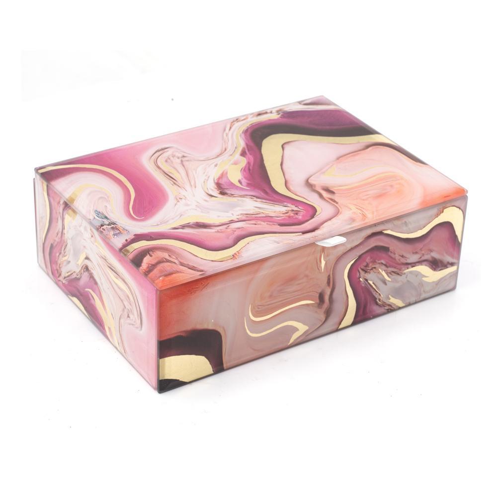 Details: Pink acrylic marble design keepsake box Dimensions: 2.5" H x 8" W x 6" D