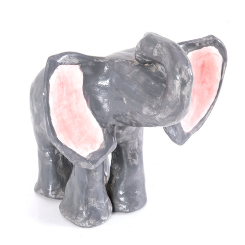 Details: Grey child painted ceramic elephant Dimensions: 9" H x 8" W x 10" D Quantity: 1