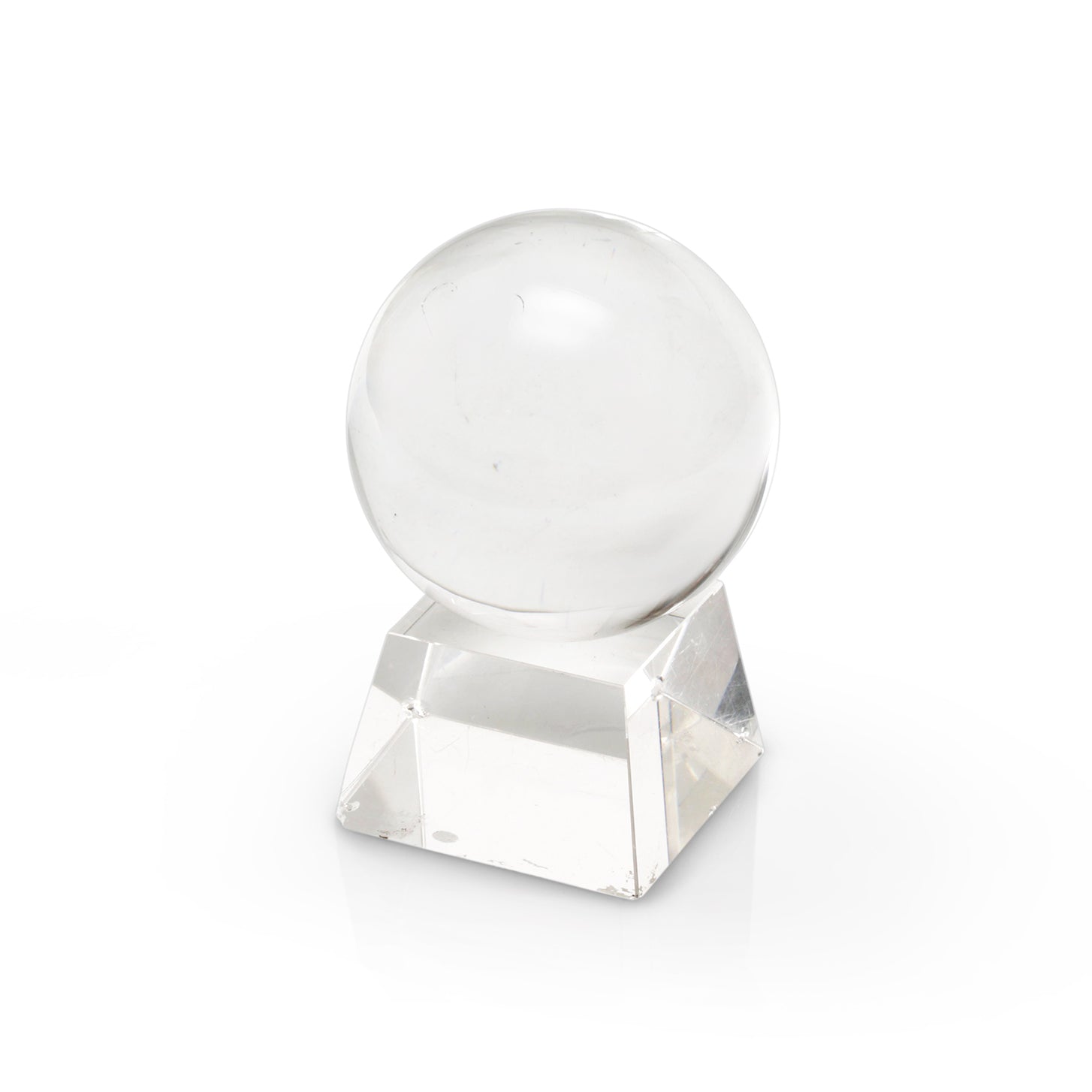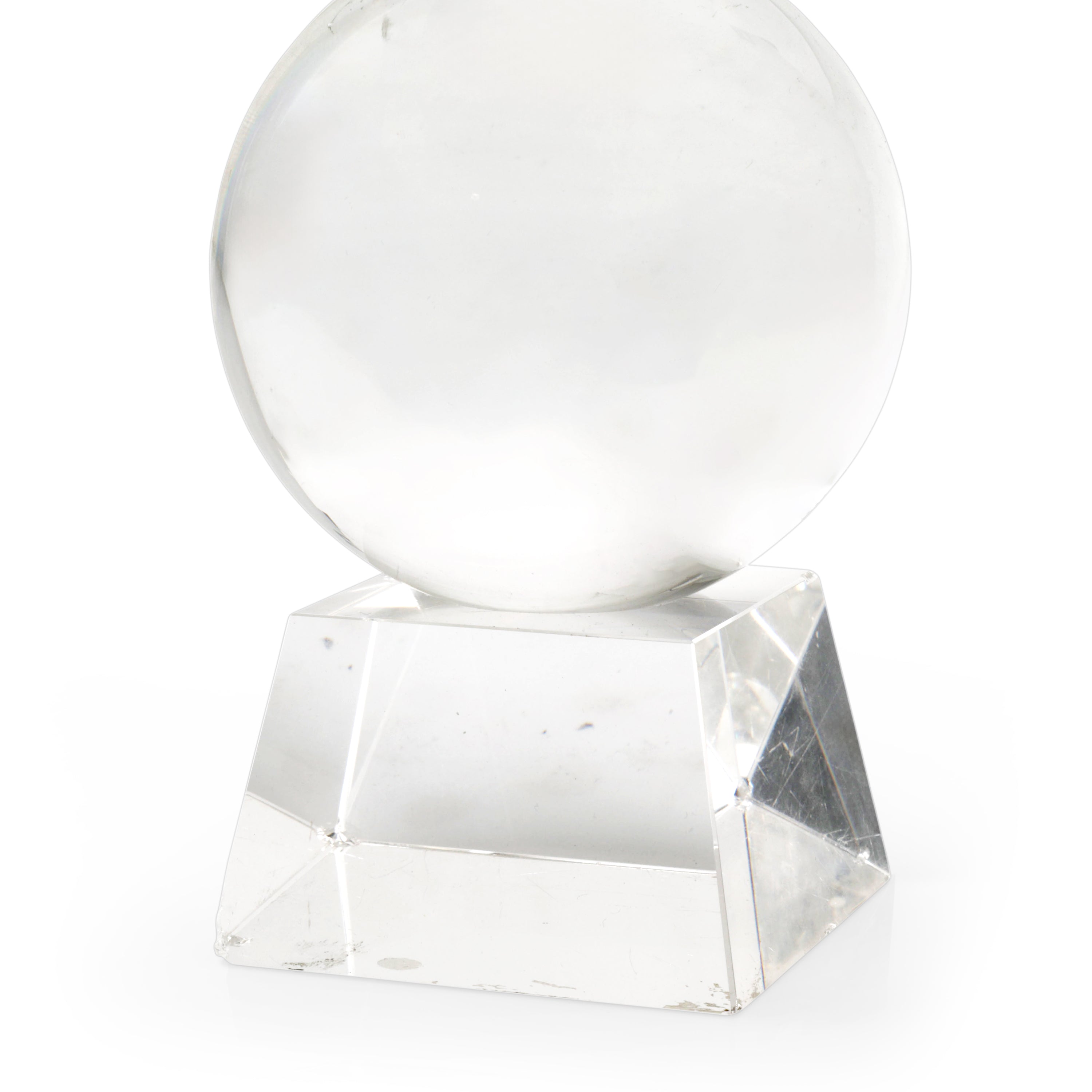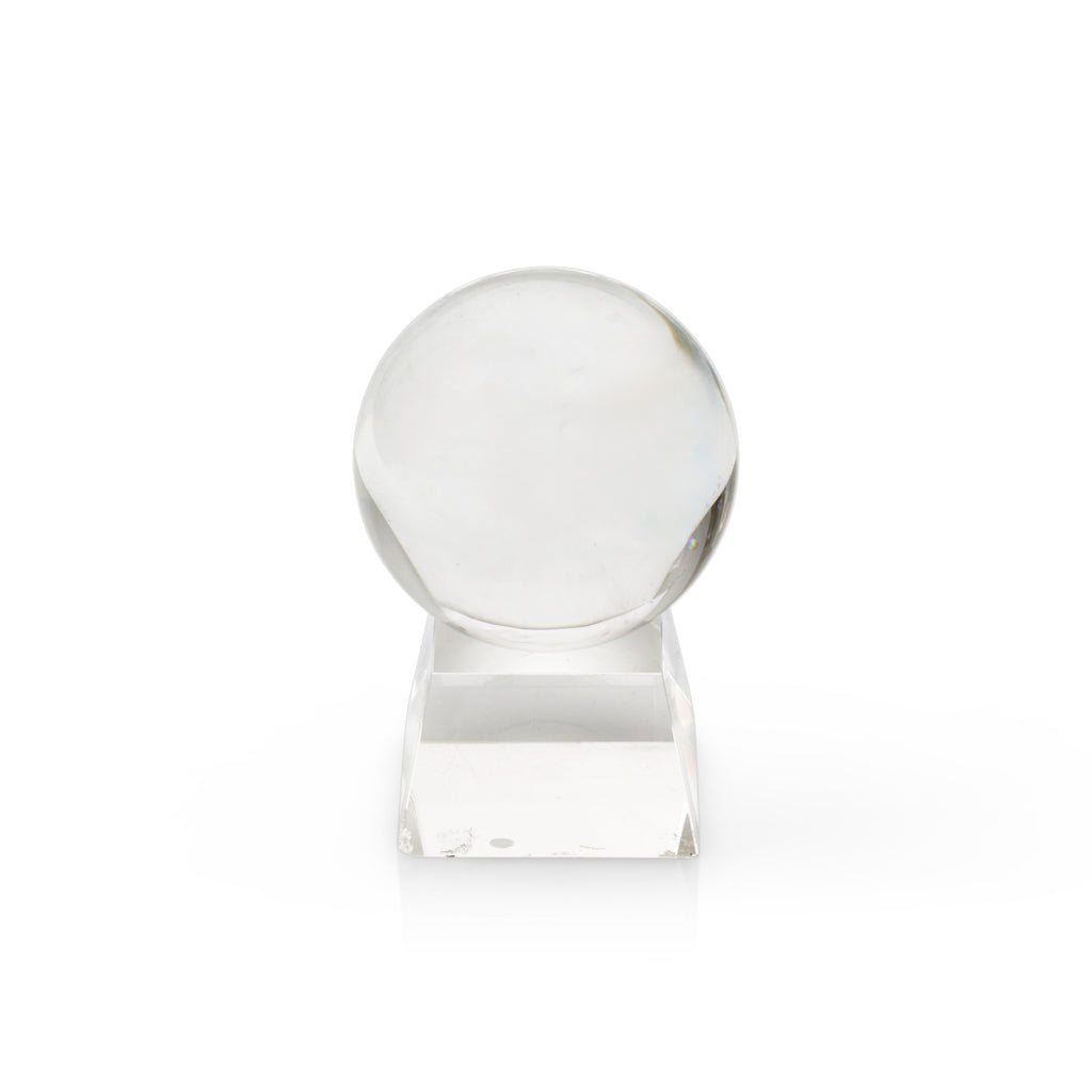 Details: Clear glass sphere on a tapered square base.