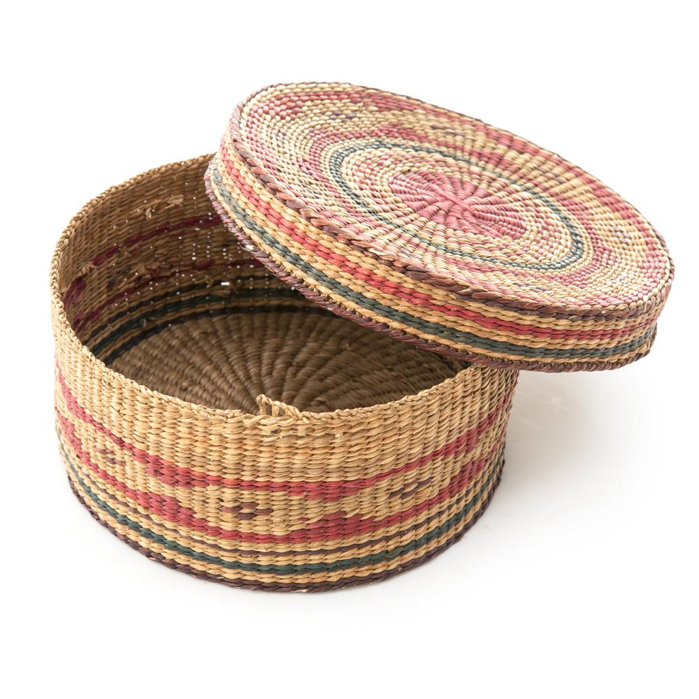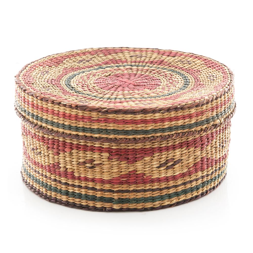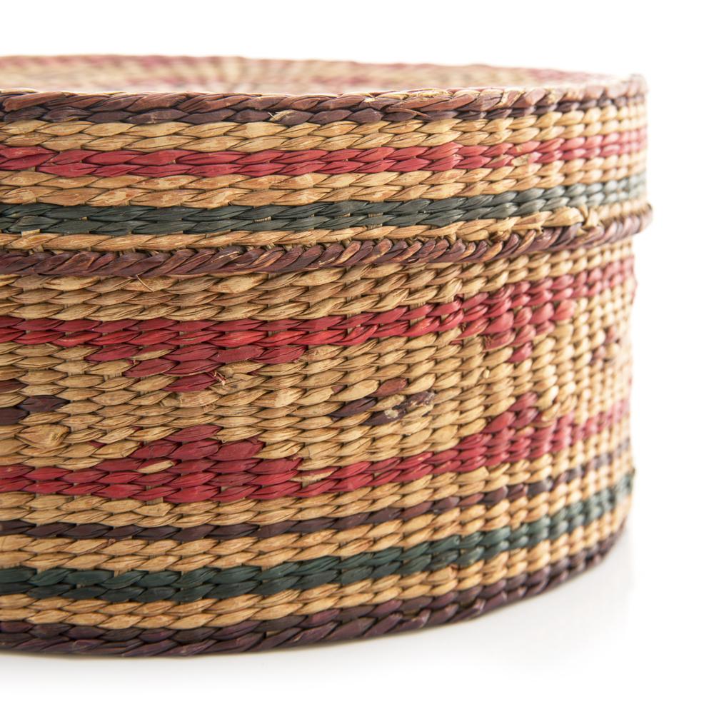 Details: Woven round box with lid.