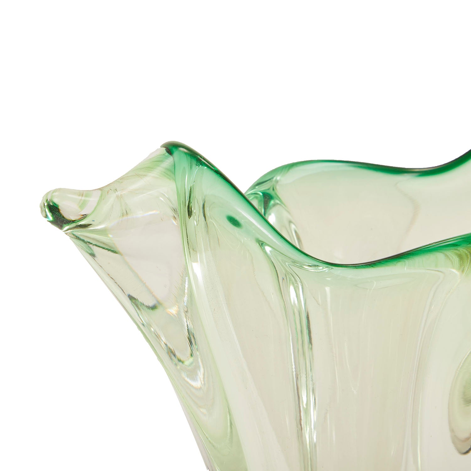 Details: Orange and green wavy glass vase Dimensions: 11" H X 7" W X 4" D