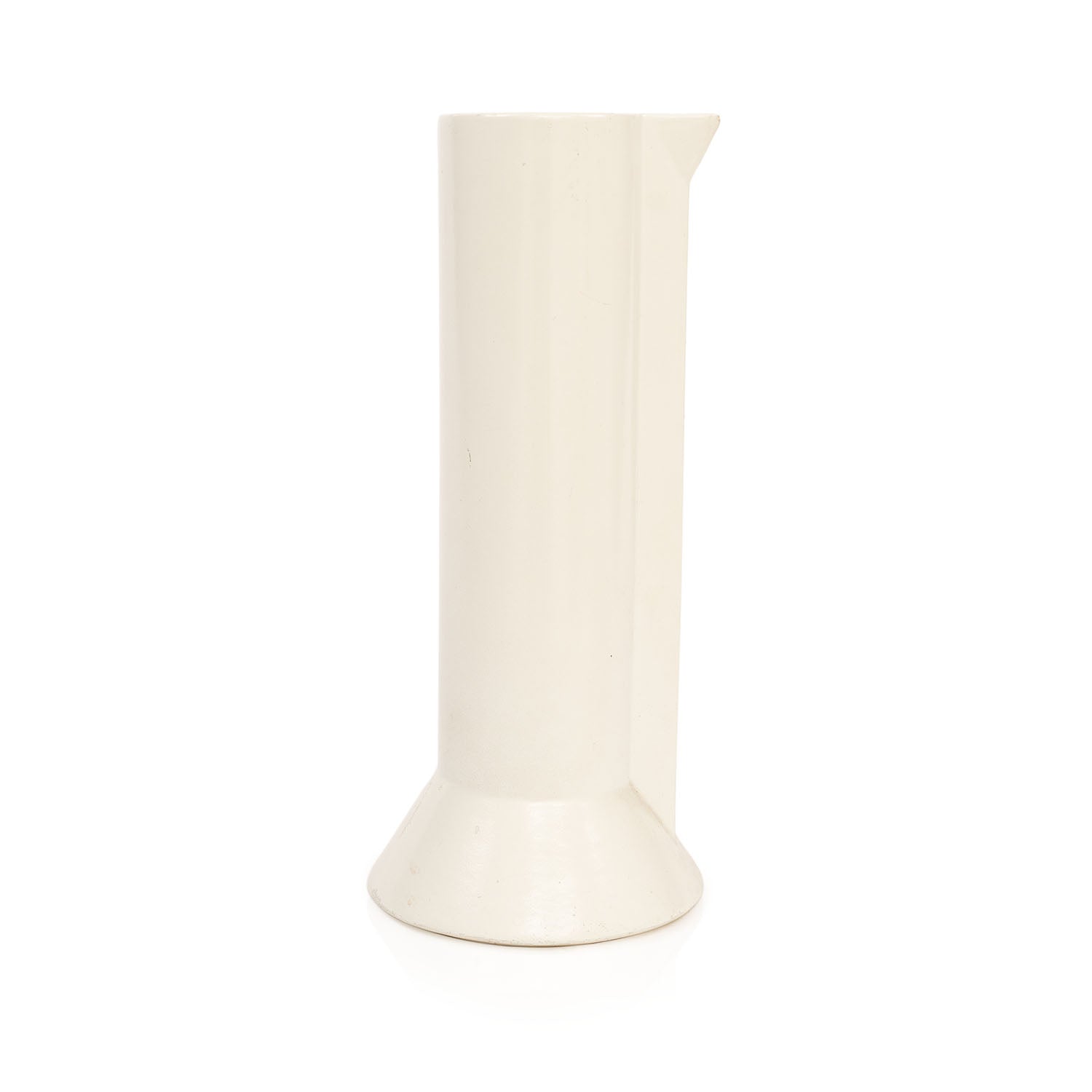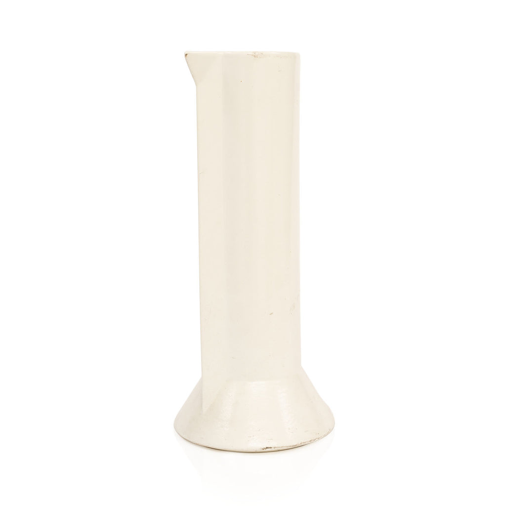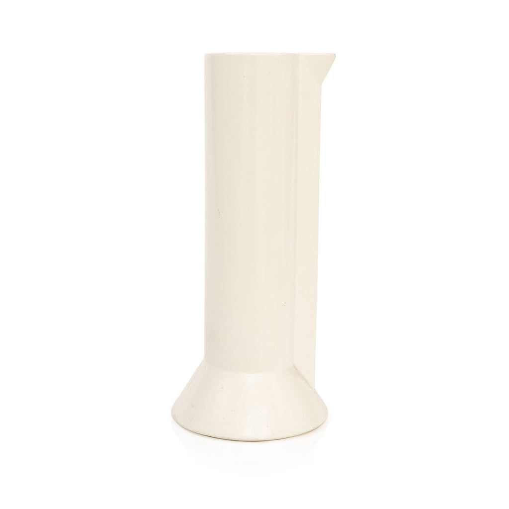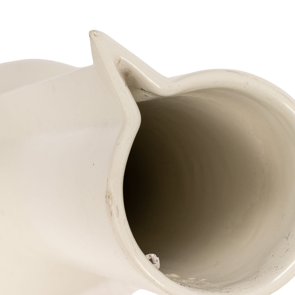 Details: Tall off-white ceramic pitcher with triangular spout and flared cylinder base