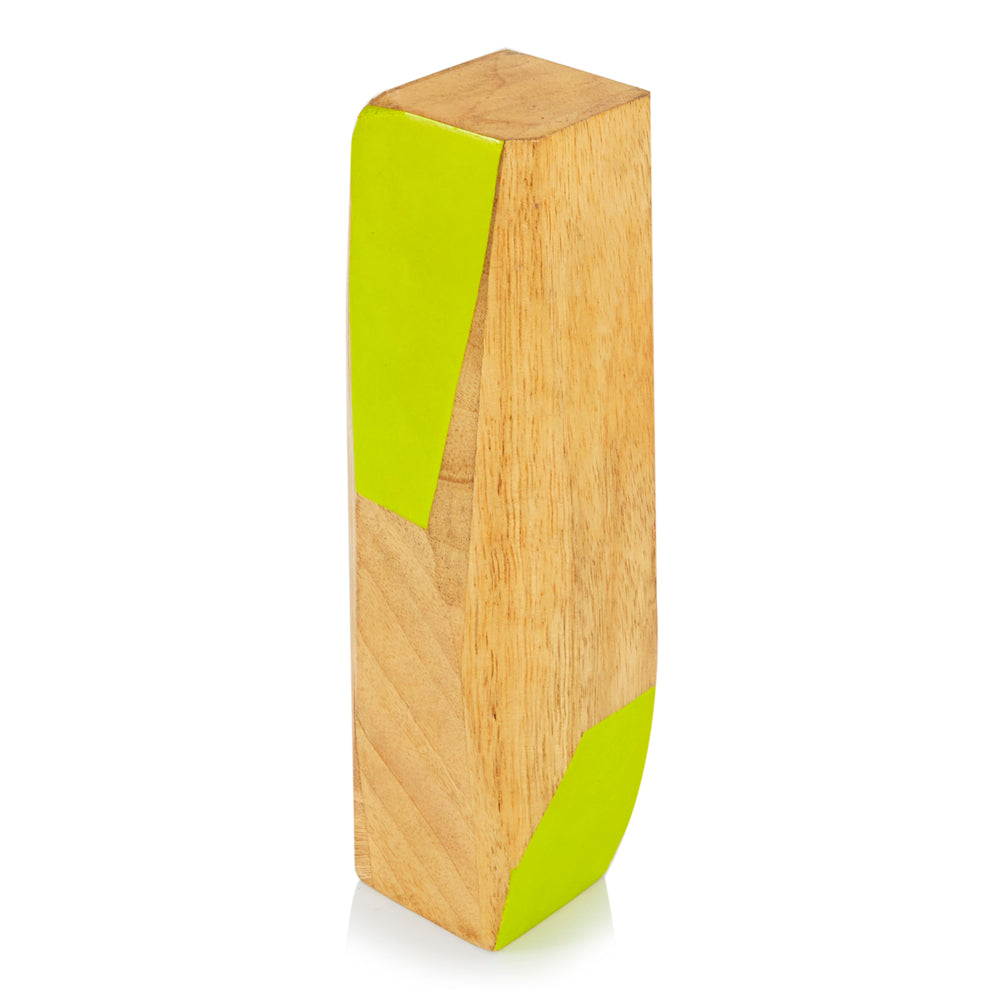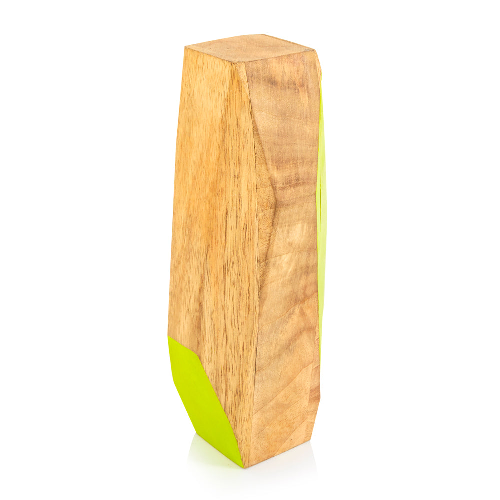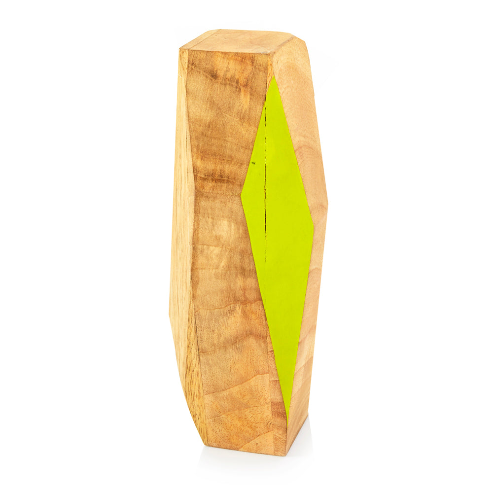 Details: Wood table sculpture with diamond cut facets and green / chartreuse painted sides