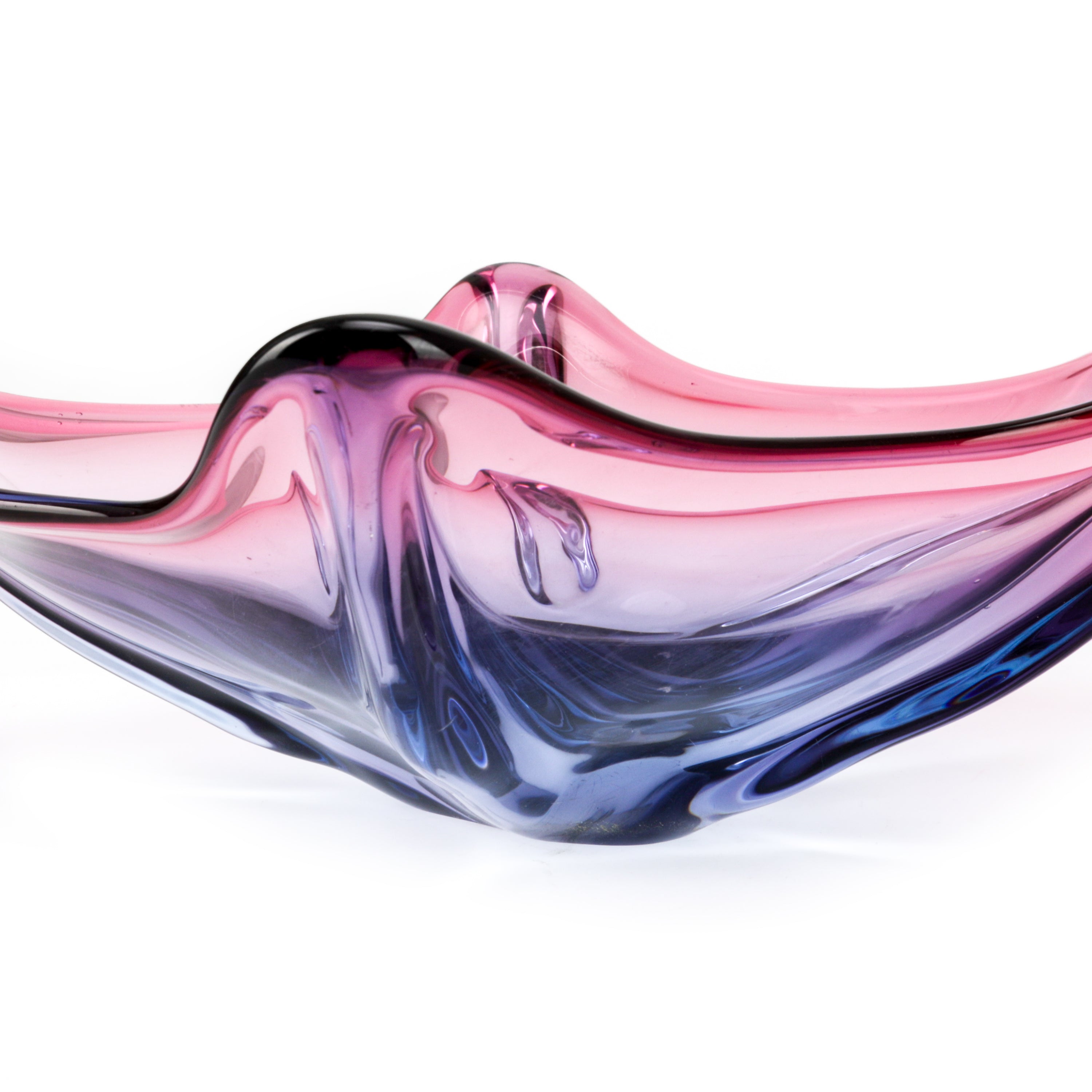 Details: Acrylic sculpture composed of a translucent purple sphere sitting atop a clear rectangular body with sporadic ridges Dimensions: 8" H x 3" W x...