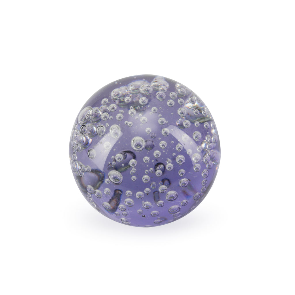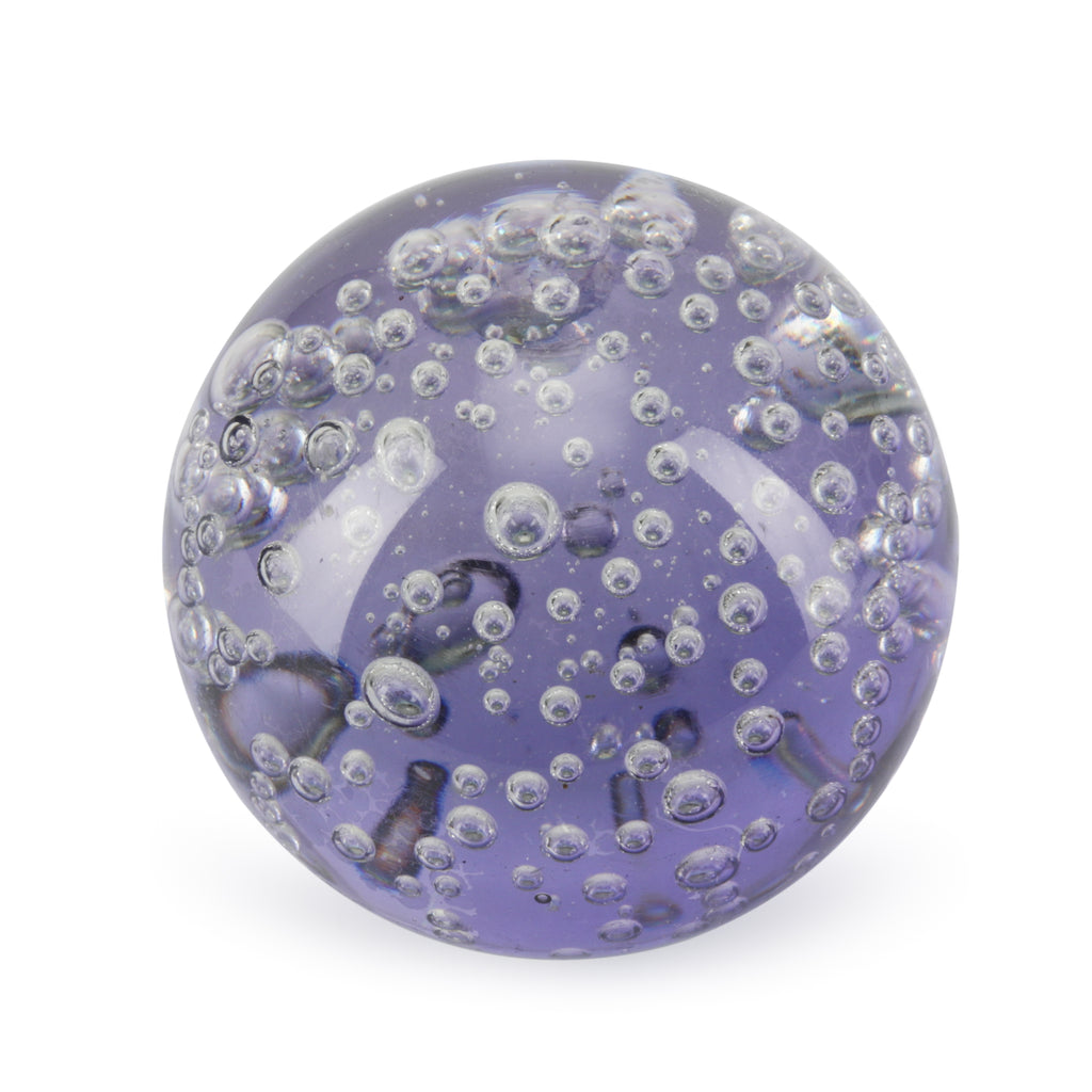 Details: Blue / Purple glass ball with bubbles inside and flat bottom. Part of a set of colorful glass paperweights (priced per piece). Dimensions: 3.5"...
