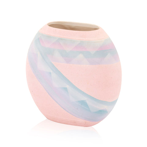 Details: Rustic purple/eggplant painted ceramic vase with blue paint splatters, tiny handles, and black metal tripod stand Dimensions: 22.5" H x 10" W x 10"...