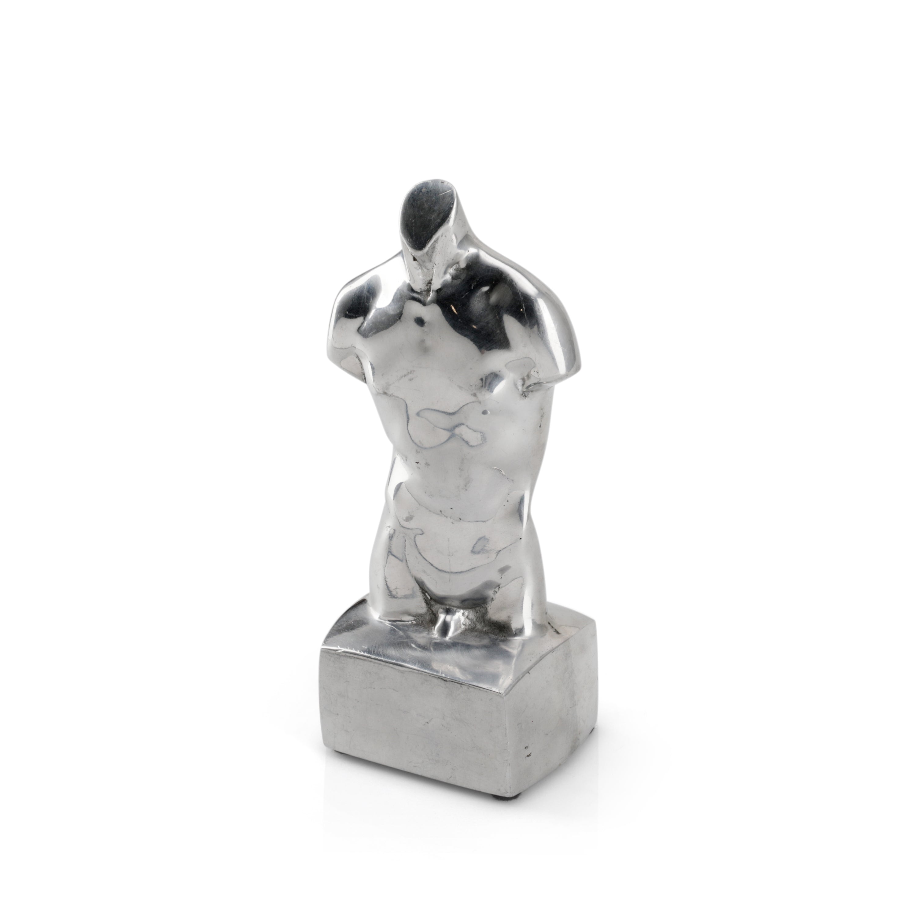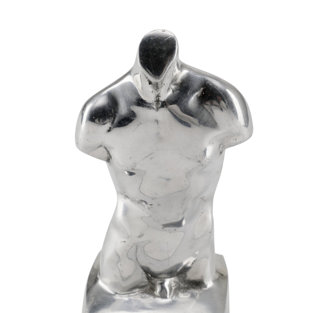 Details: Chrome bust of a male torso with square base. Dimensions: 8.5" H x 3.5" W x 2.75" D