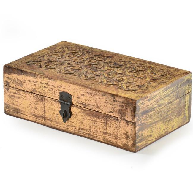 Details: Wood, Distressed, Gold Brushed, Latch Box, Shelf/Desk DecorationDimensions: 10 H x 6 W x 3.5 D