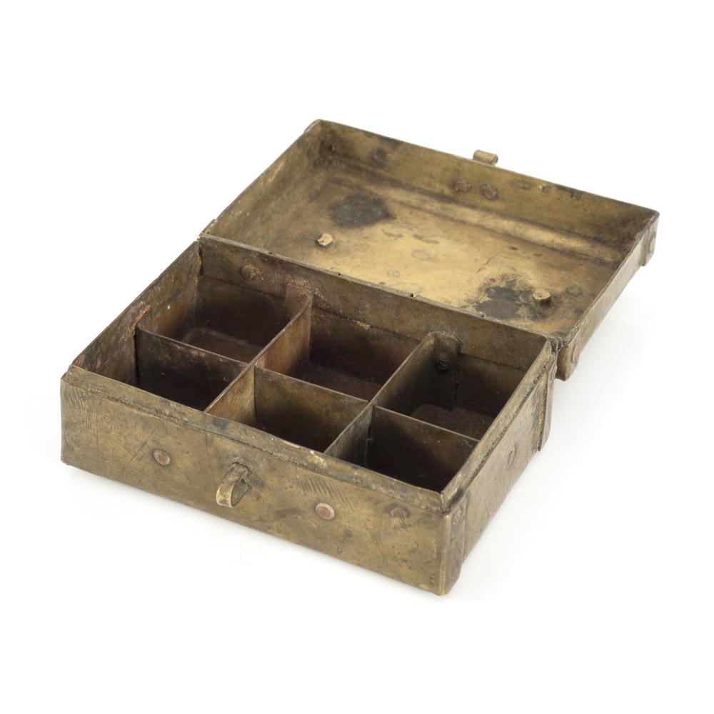 Details: Golden rustic miniature box Dimensions: 1.5" H x 3.5" W x 2" D