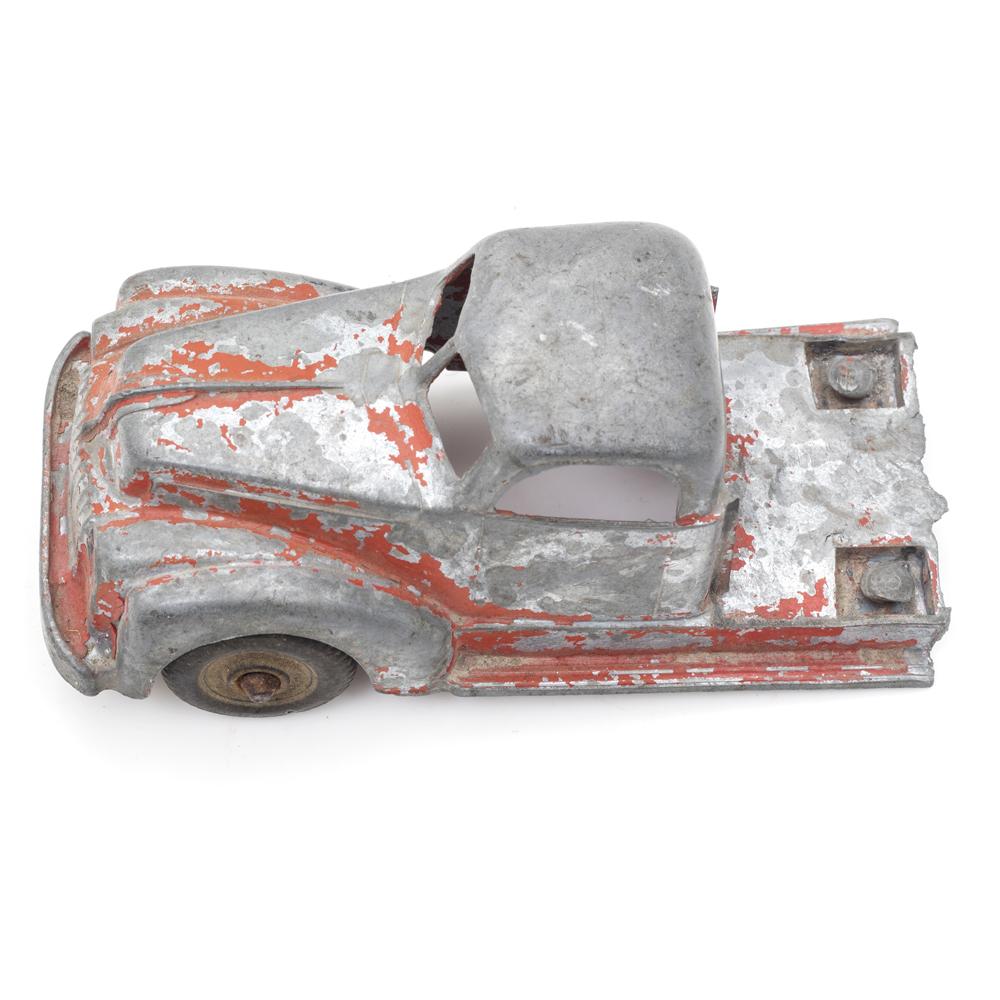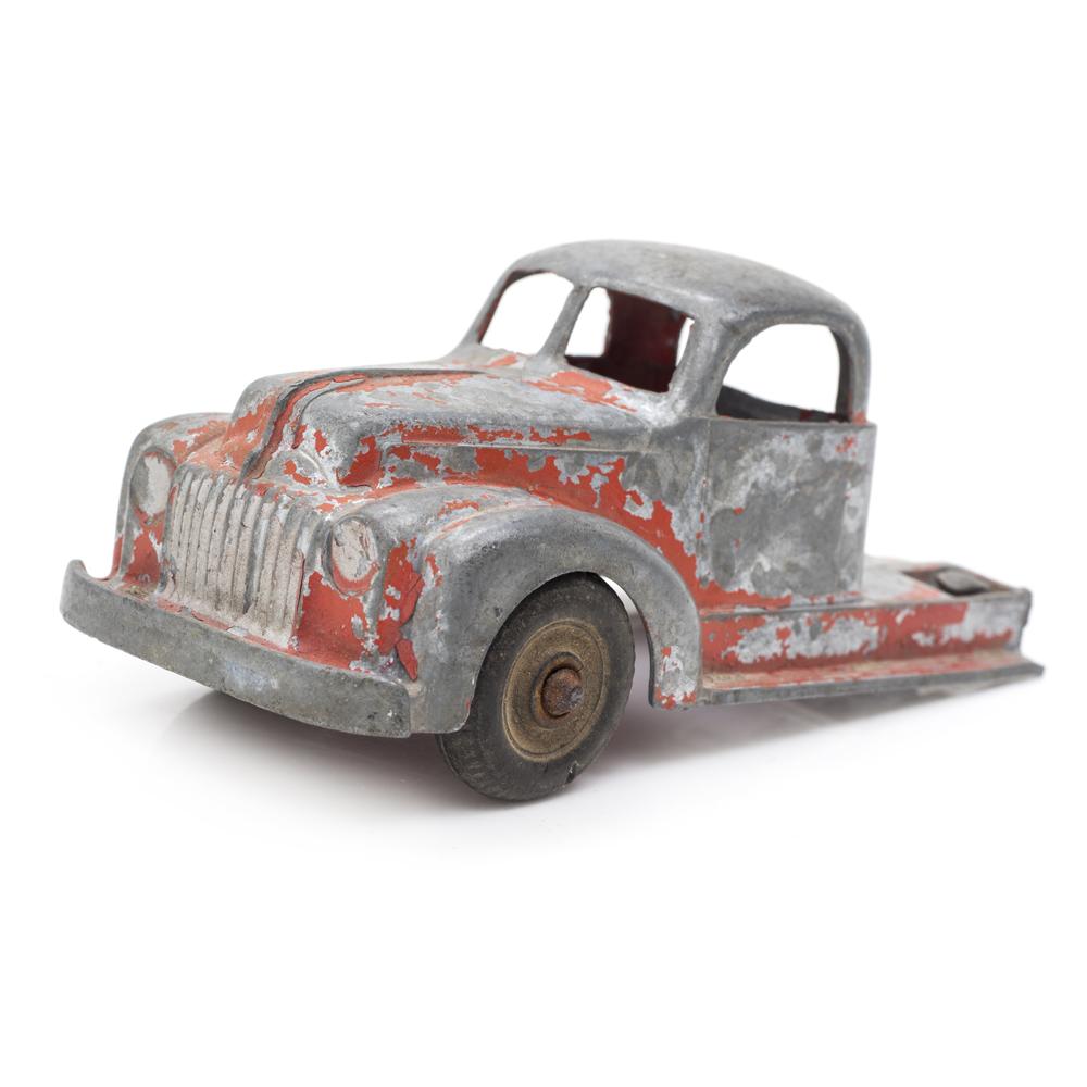 Details: Rustic grey with chipping red paint toy truck. Dimensions: 2.5" H x 5" W x 2.5" D