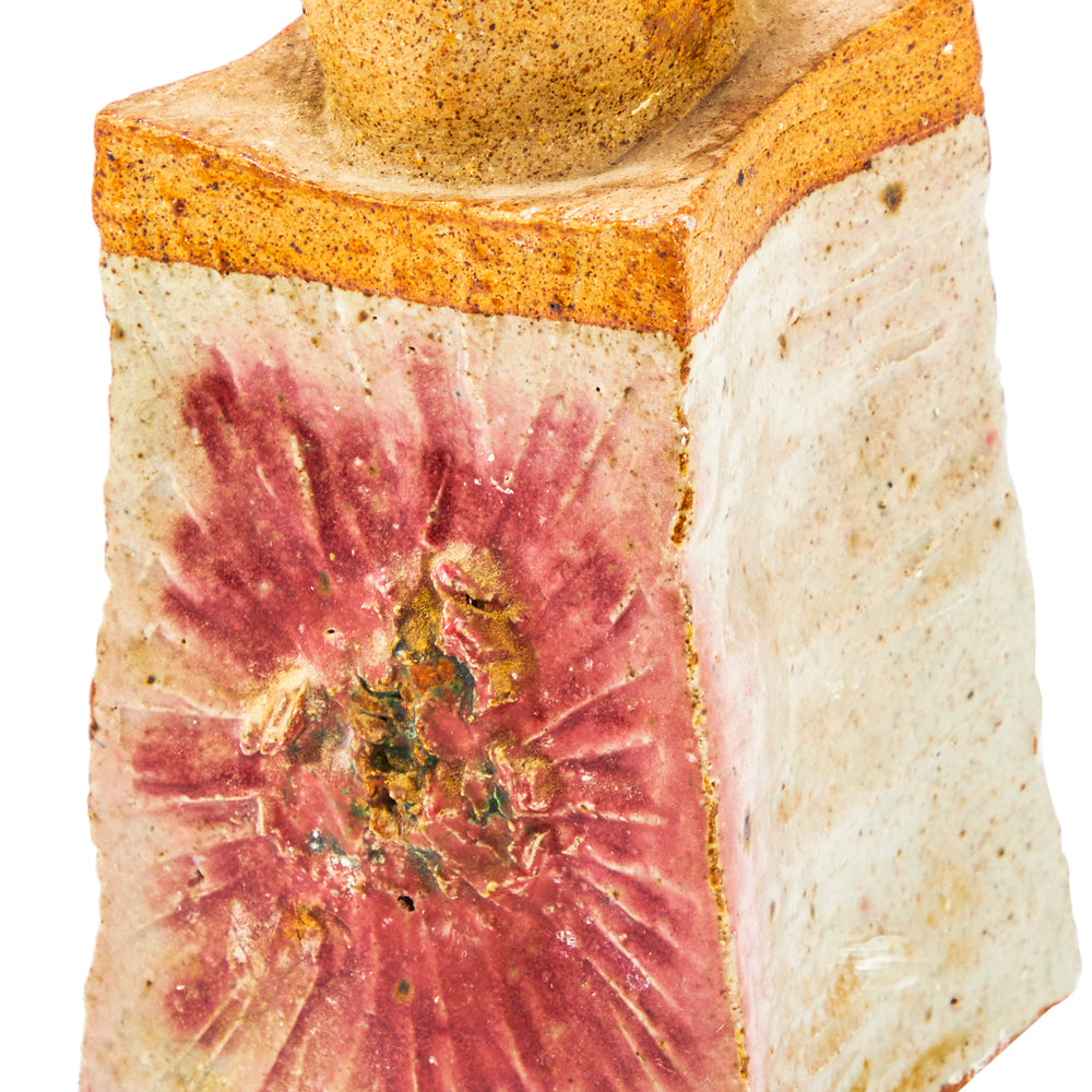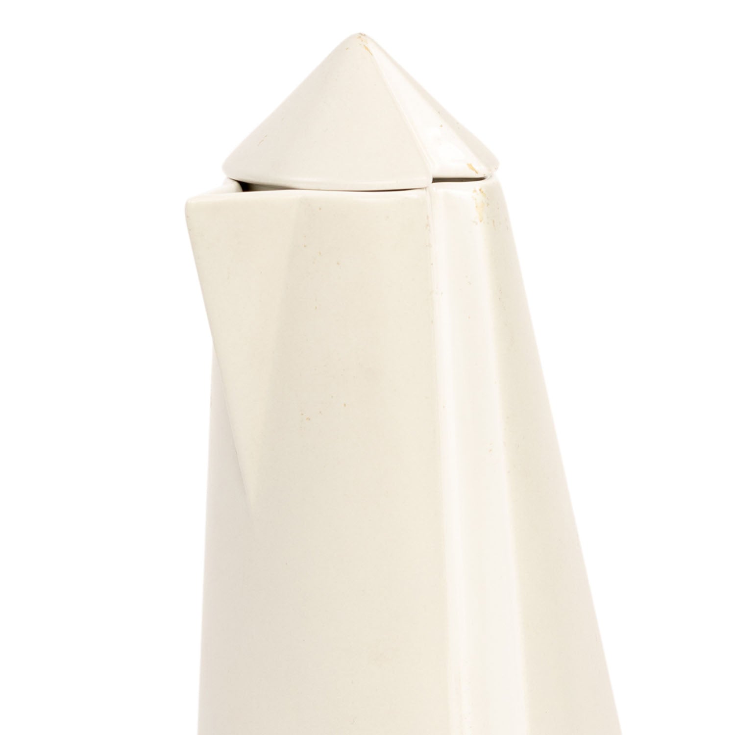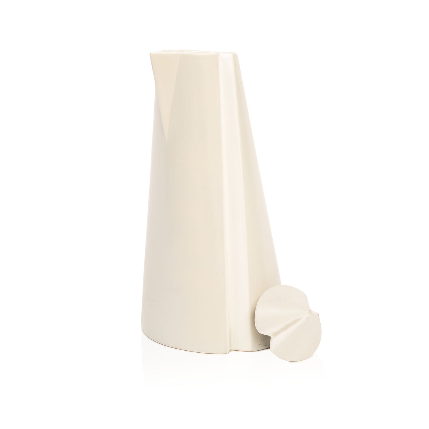 Details: Off-white triangular abstract sculpture of an American Indian mother holding a sleeping child in her hair, with large concave indent Dimensions: 13" H x 16"...