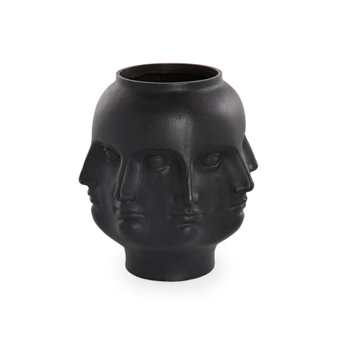 Details: Black vase featuring mutliple sculpted faces that blend into one another Also available in white or silver. Dimensions: 10" H x 6" W x...