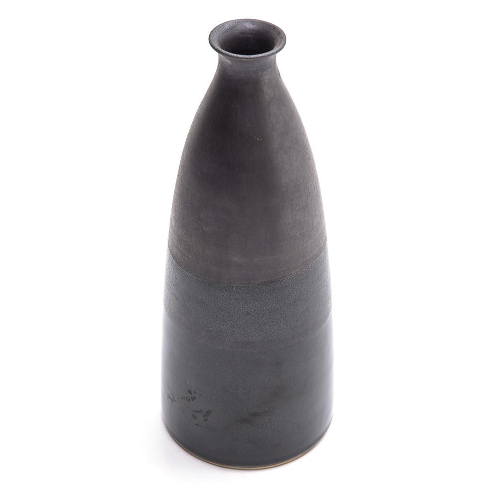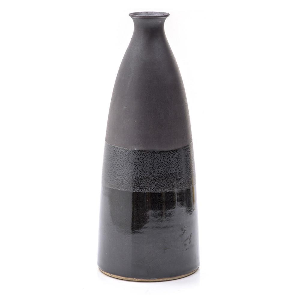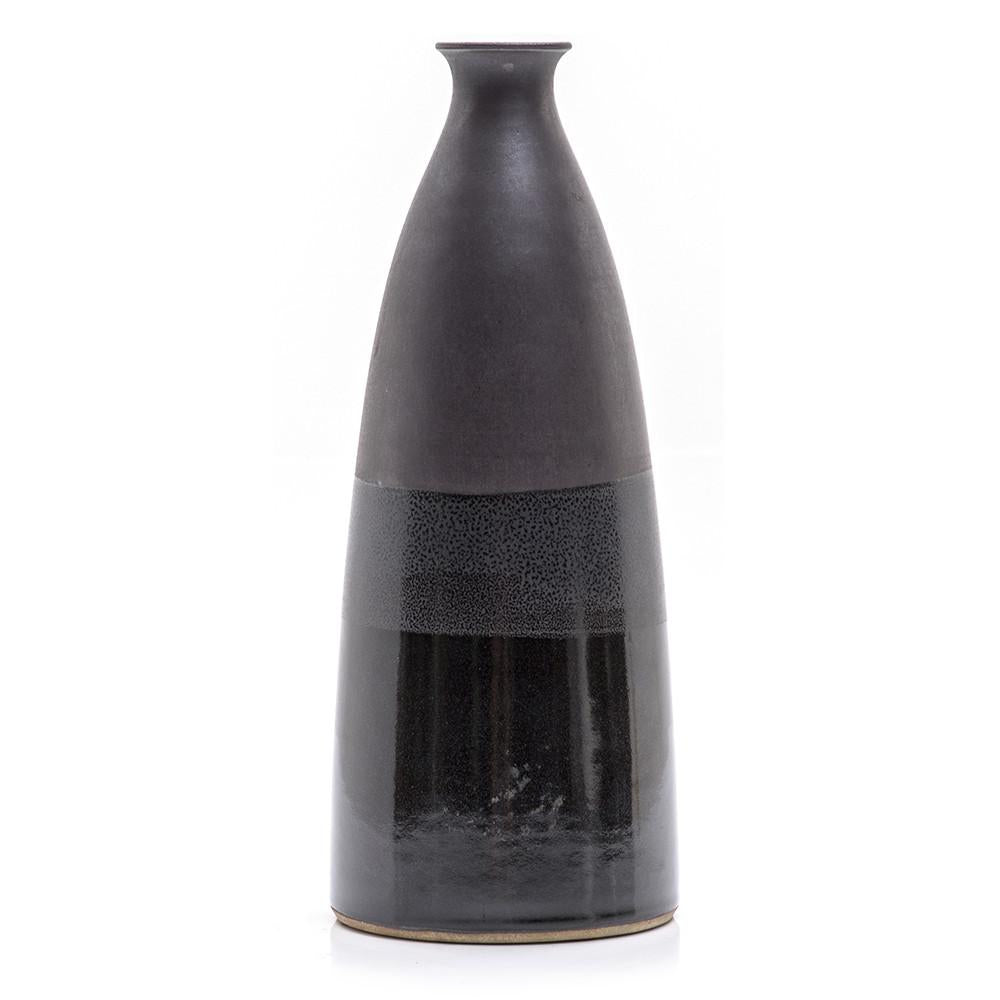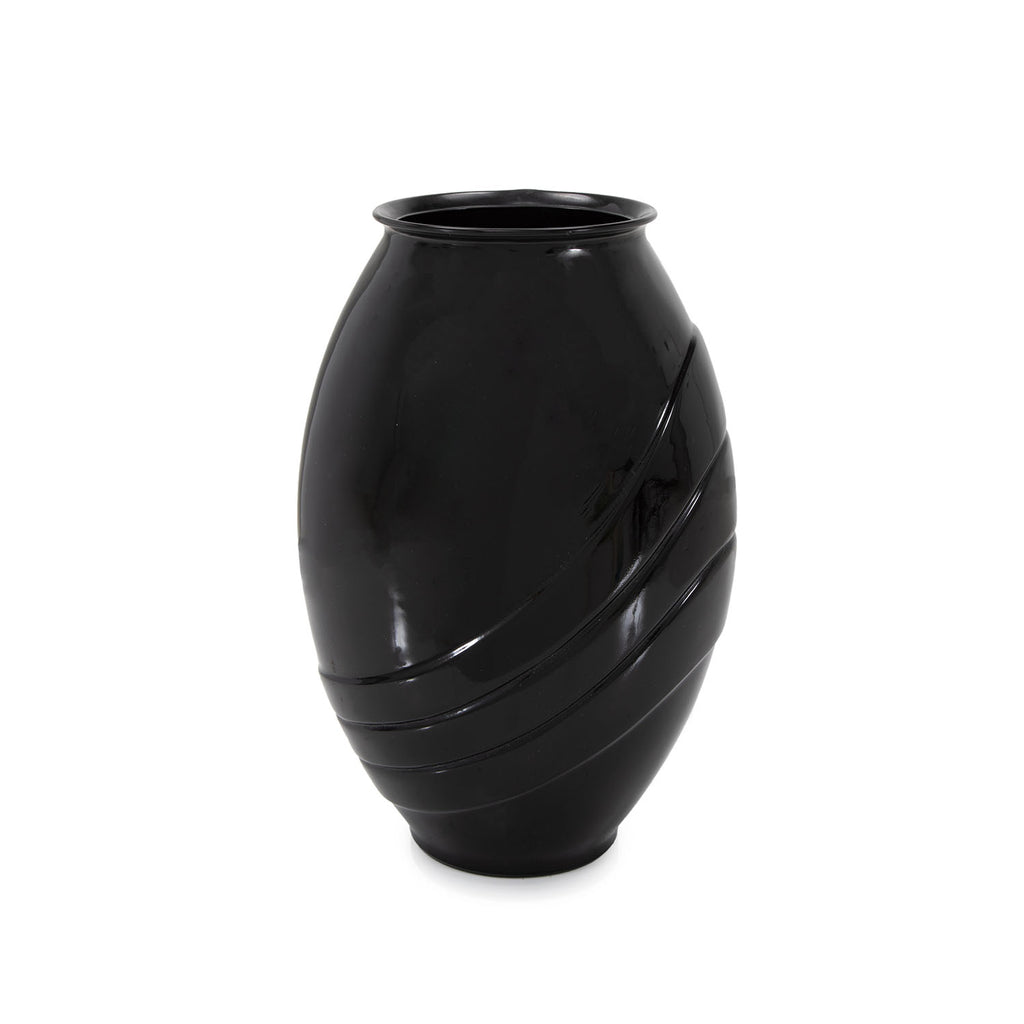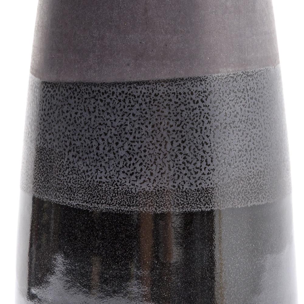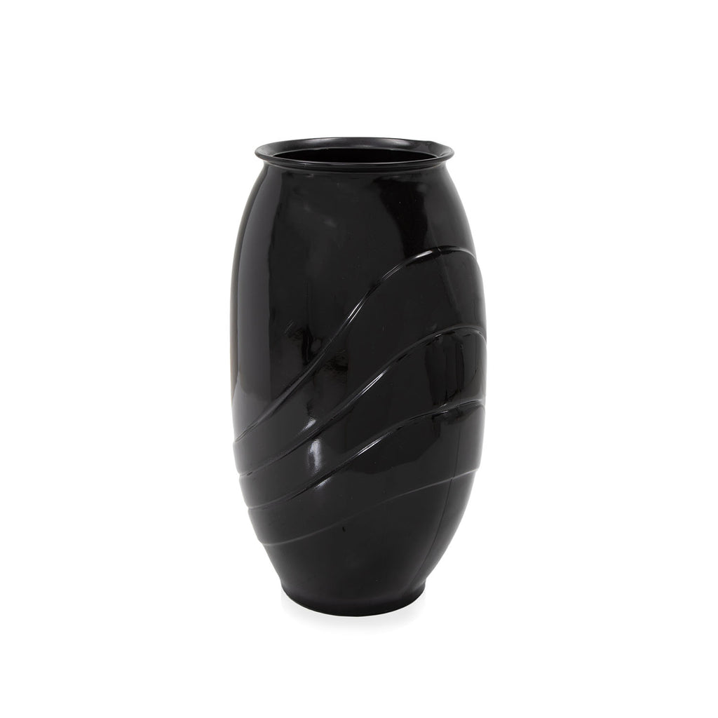 Details: Black tall vase with stripe glaze detail. Dimensions: 14" H x 5.5" W x 5.5" D