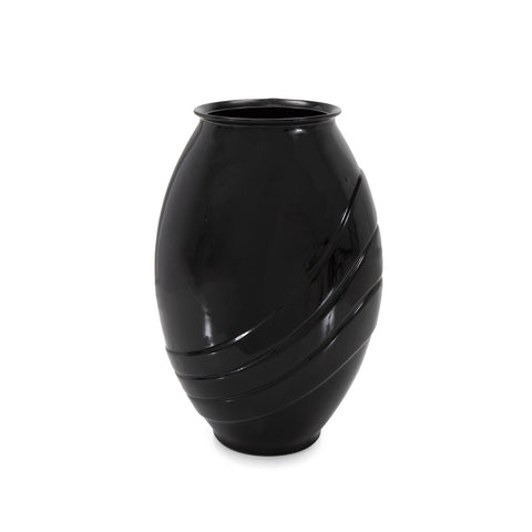 Details: Deco style ceramic vase with black lacquer finish Dimensions: 16" H x 10" W x 7" D Quantity: 1