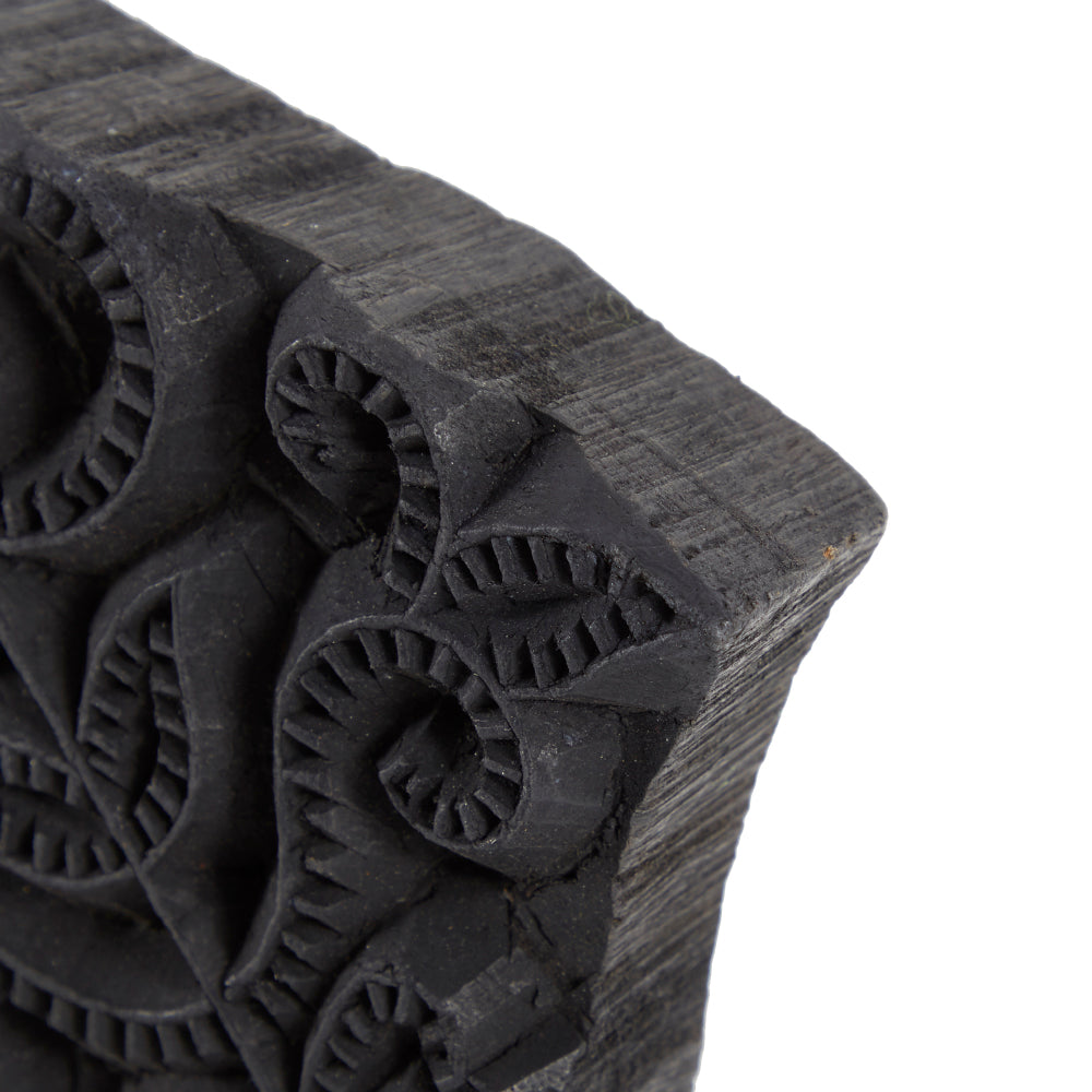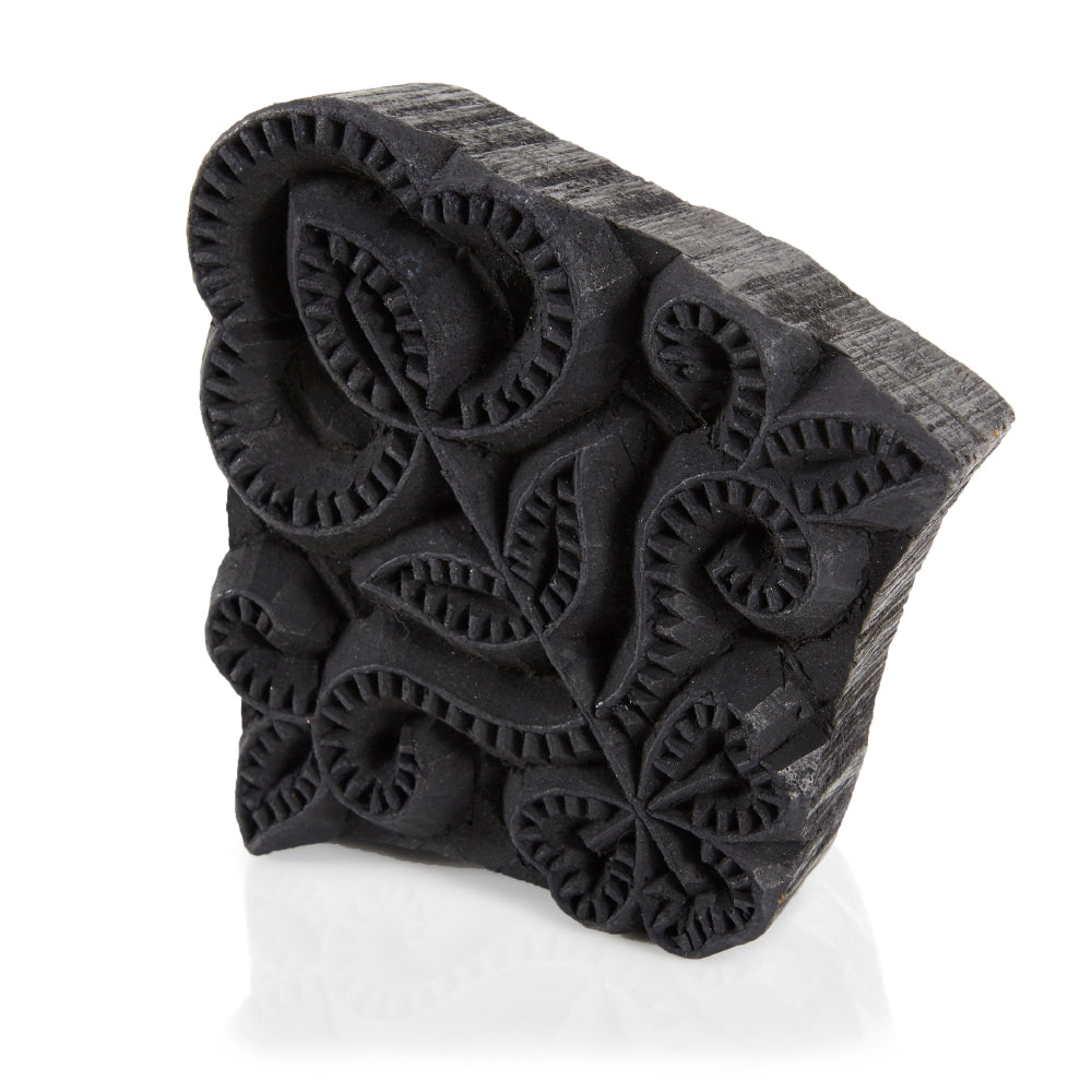 Details: Black carved floral woodblock for block printing Dimensions: 1.5" H x 5.5" W x 5.5" D Quantity: 1