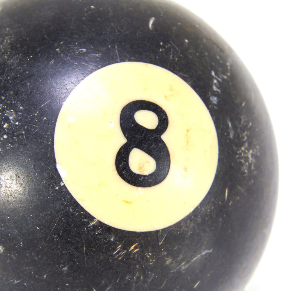 Details: Eight ball for pool billiards game with minor scuff marks Dimensions: 2" H x 2" W x 2" D Quantity: 1