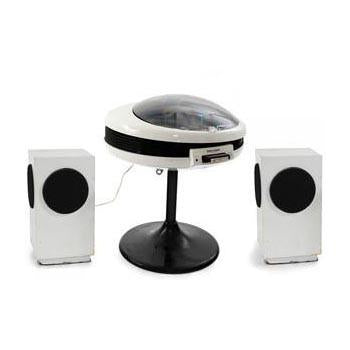 Details: Black and silver metal sphere speakers. Body is constructed of heavy black metal components with a silver metal base. Dimensions: 11" H x 10" W...