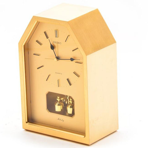 Details: Seiko, Gold, Table Top, Clock, Geometric Shaped, DomeDimensions: 7" H X 5" W X 3" D