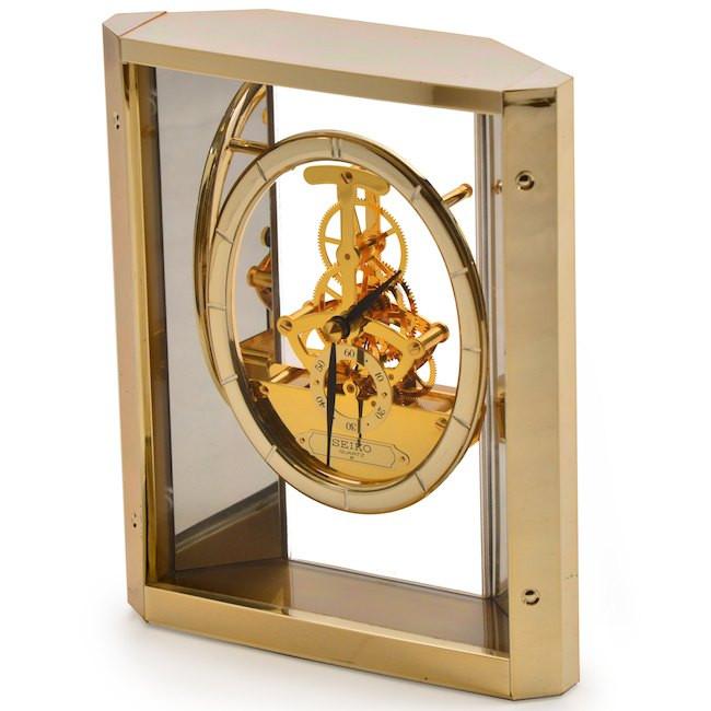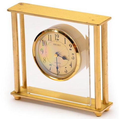 Details: Seiko, Table Top, Clock, Gold, Brass, Glass, See ThroughDimensions: 8" H X 6" W X 2" D