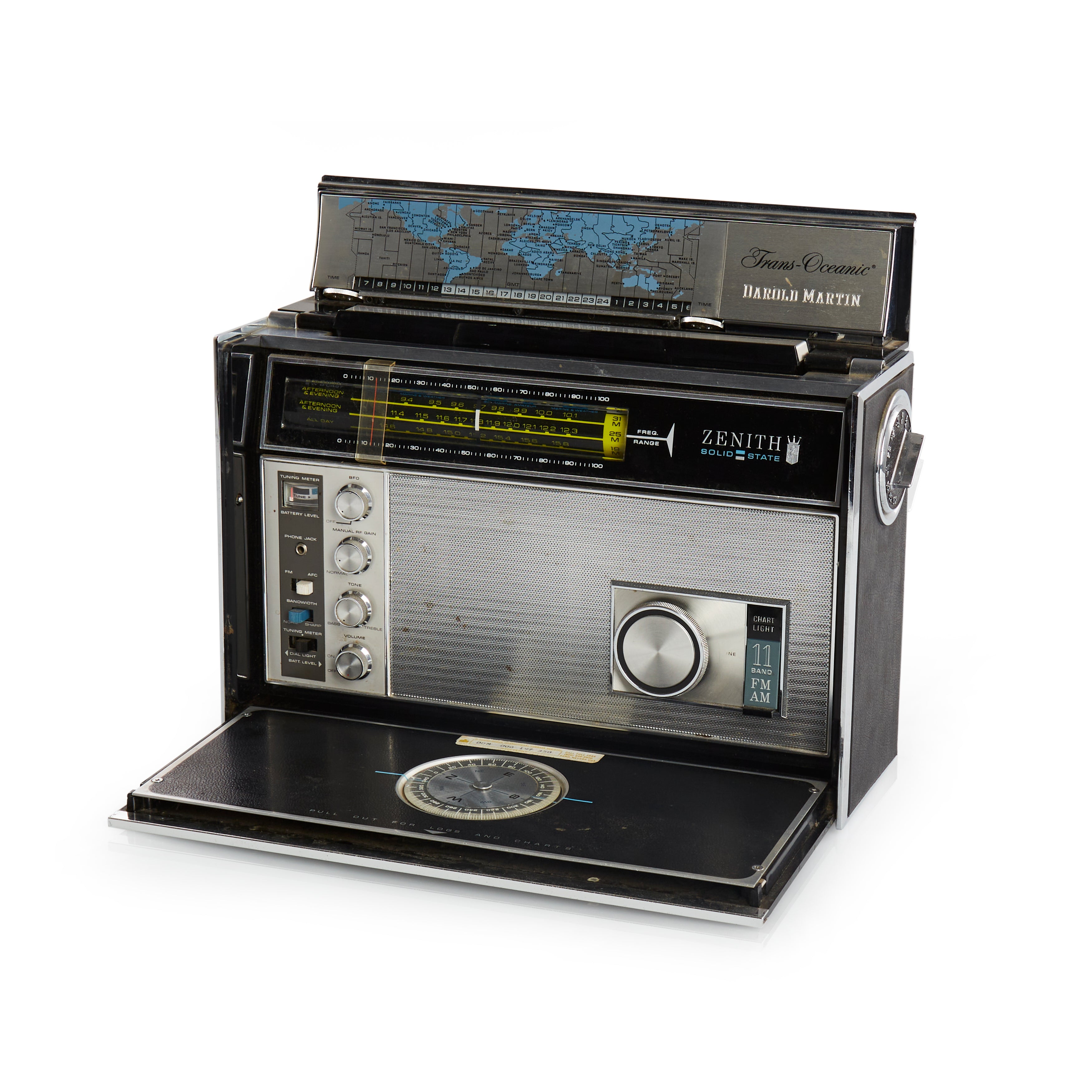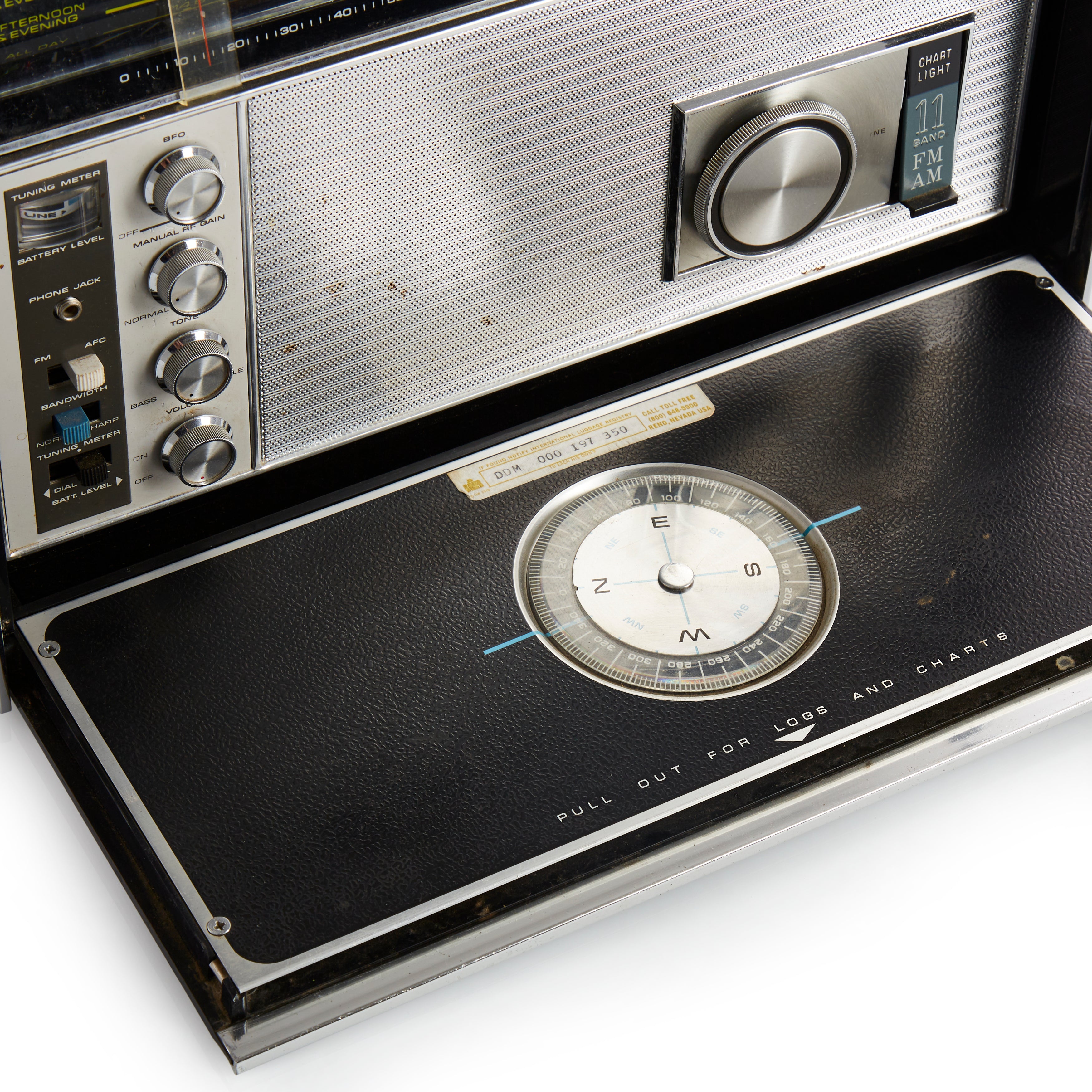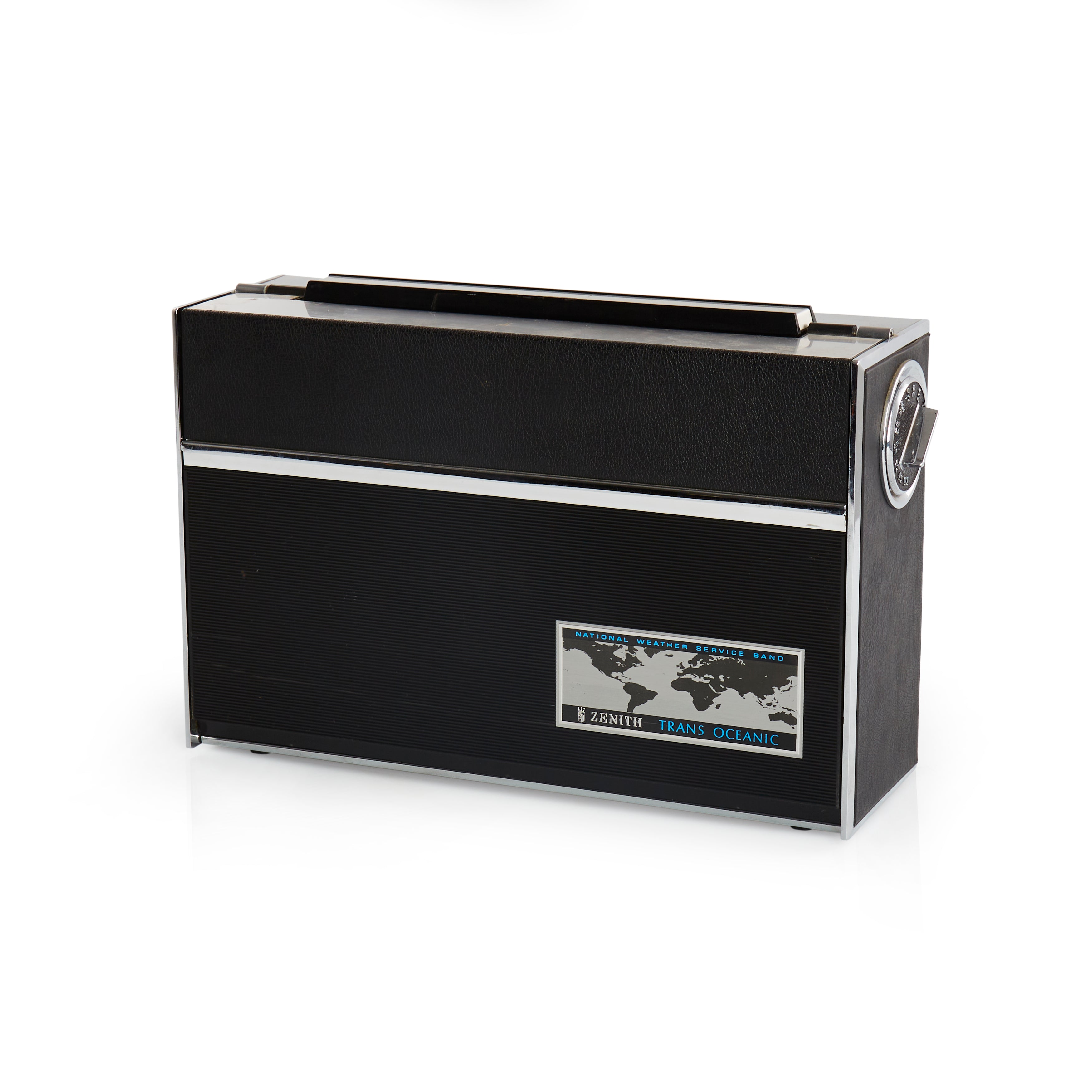 Description: Small portable vintage analog television with foldable antenna and handle for carrying. The body is constructed of beige plastic with silver metal accents. ...