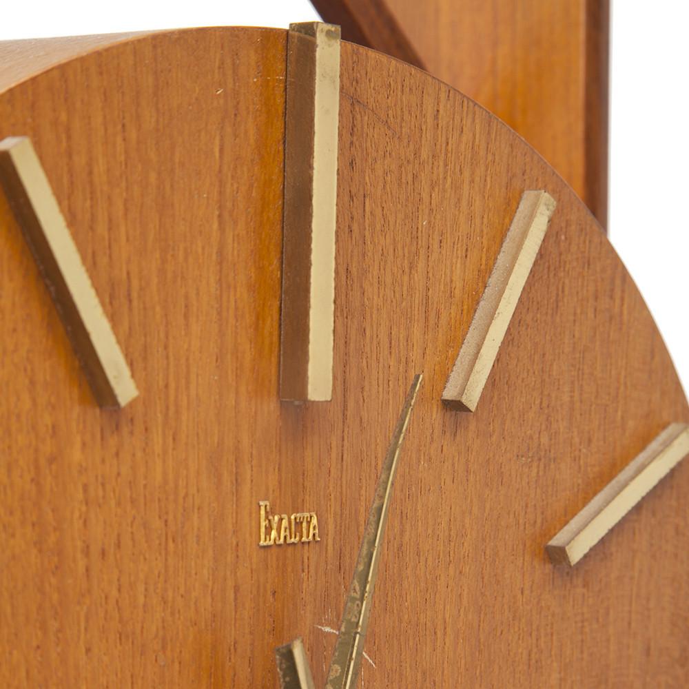 Details: Rectangular table clock with light wood body, analog hands and six wood legs Dimensions: 11.5" H x 5" W x 3" D Quantity: 1