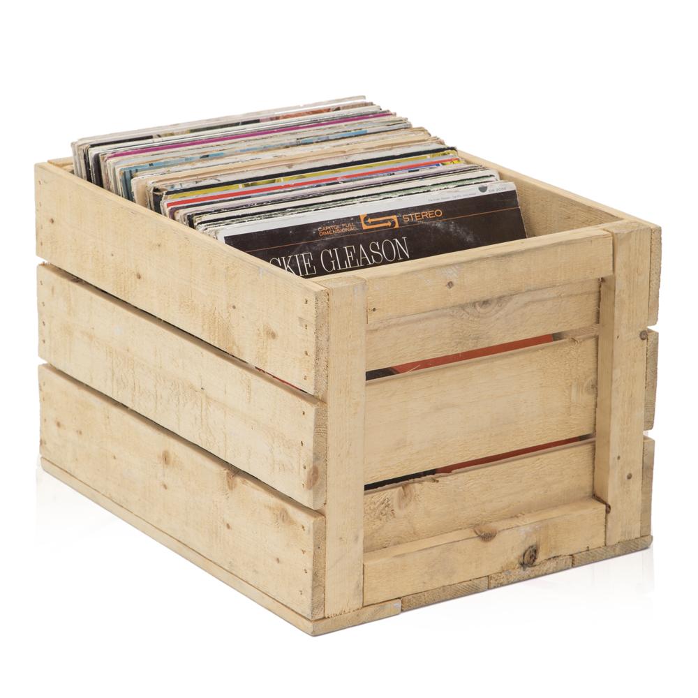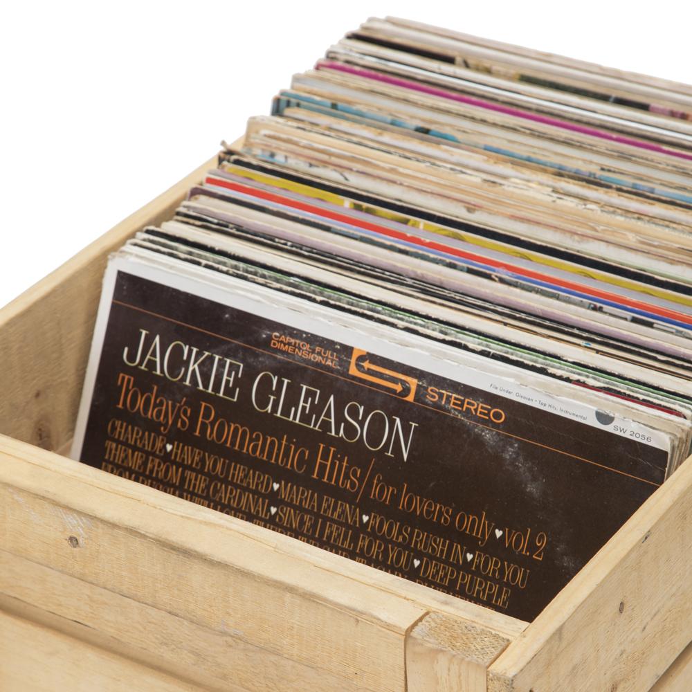 Details: Wood Crate Filled With Records Dimensions: 12" H x 14" W x 18" D