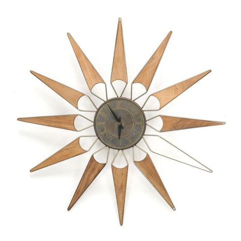 Details: Clock with wooden 12 pointed star patternDimensions: 28" Diameter