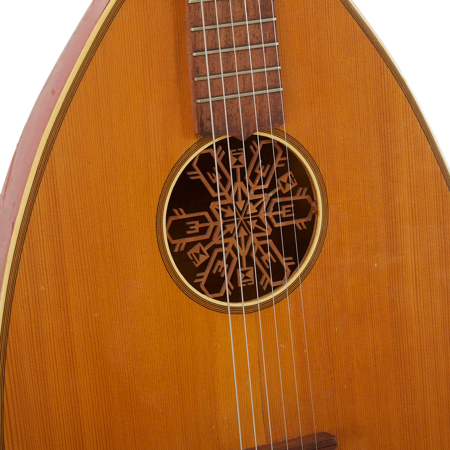 Details: Wooden zither harp with red detailing Dimensions: 16" H x 8" W x 1" D