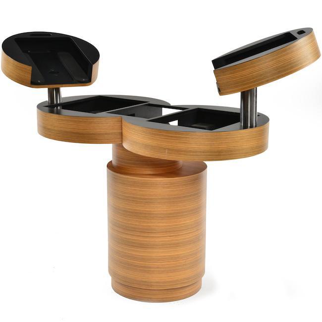 Details: Large symmetrical faux wood and black DJ stand with four sections (VERY LARGE - DOES NOT BREAK DOWN must send 2 people to pickup +...