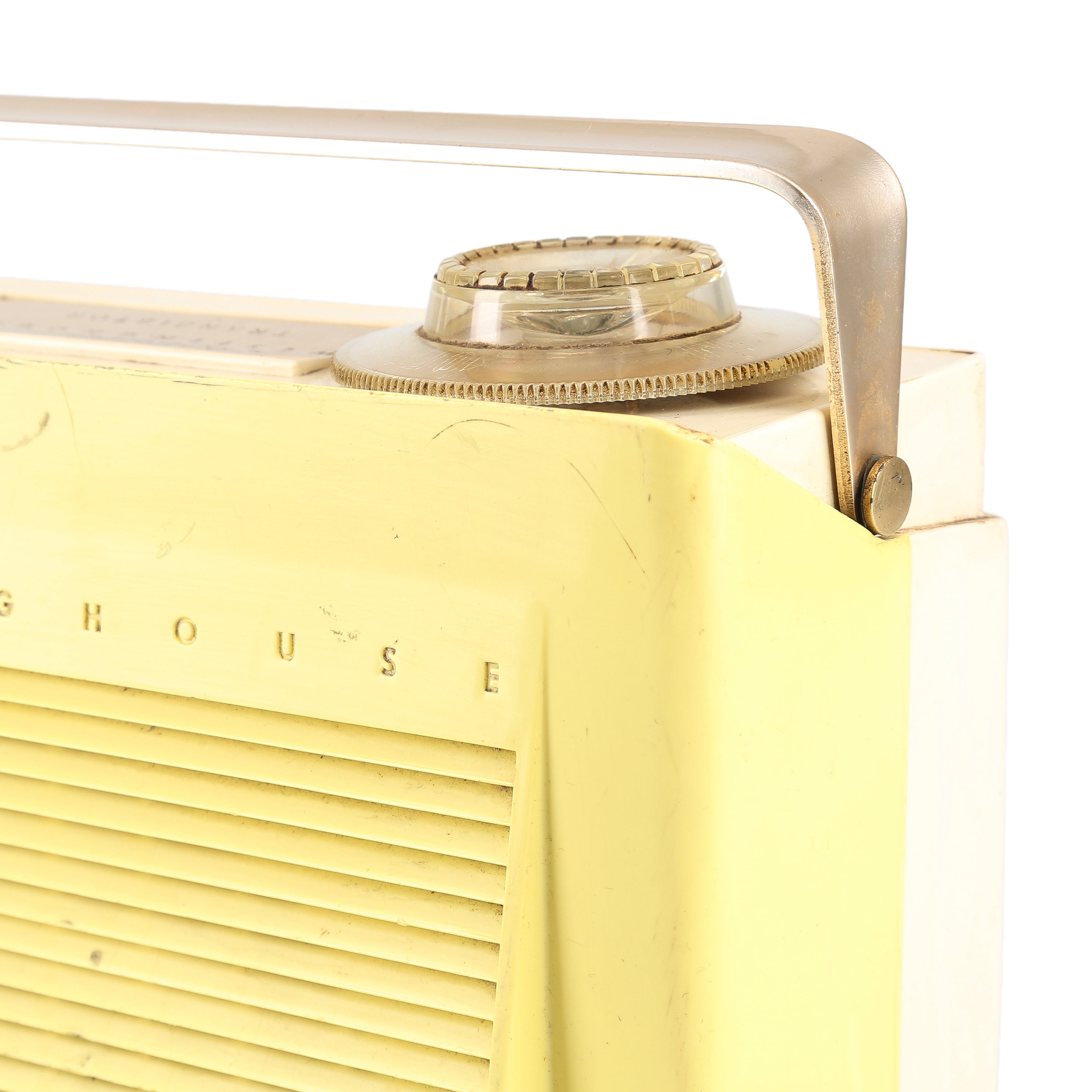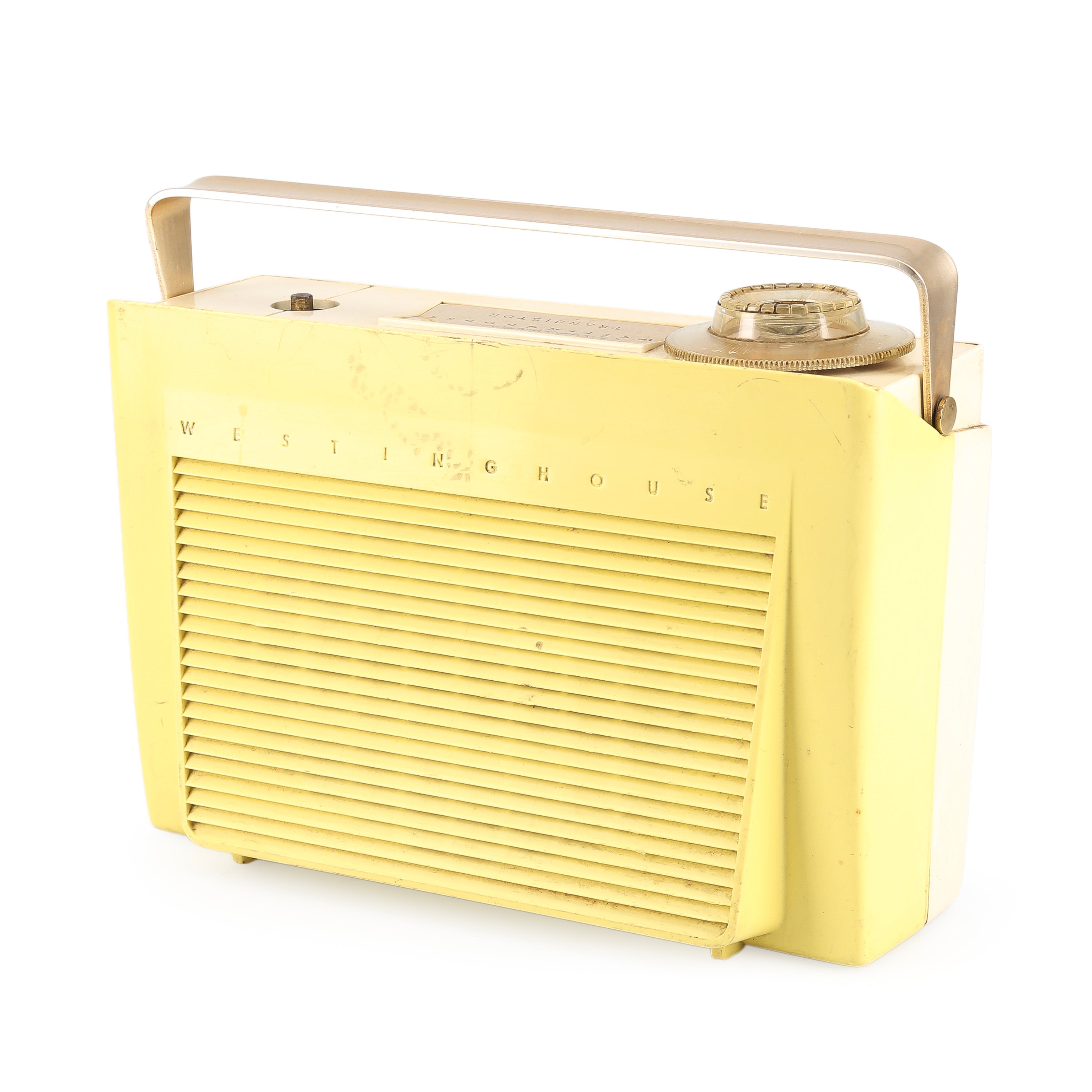 Details: Portable hand held radio with distressed case. Dimensions: 4.75" H X 3" W X 1.5" D