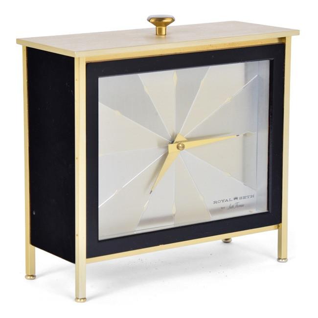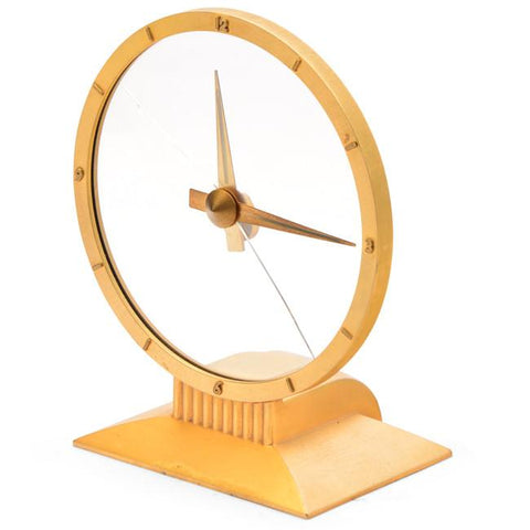 Details: Ornamental gold painted Rococo style tabletop clock with small round face, with 2 cherubs and sitting musician woman Dimensions: 12" H x 10" W x 3" D Quantity:...