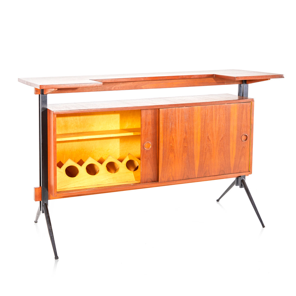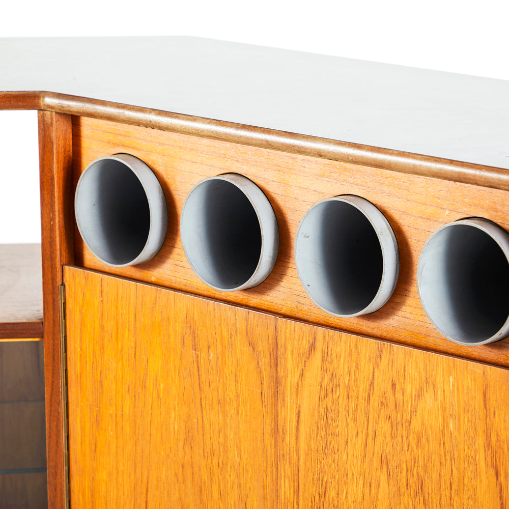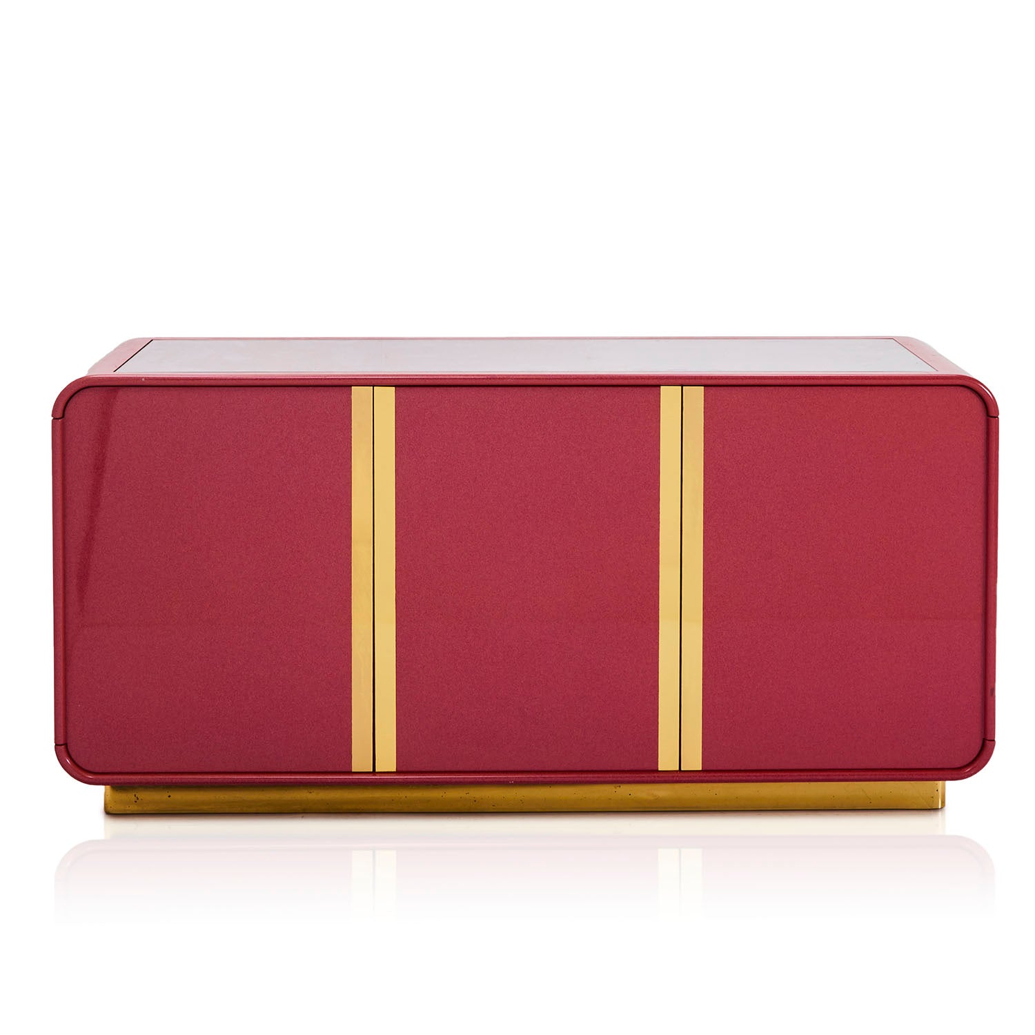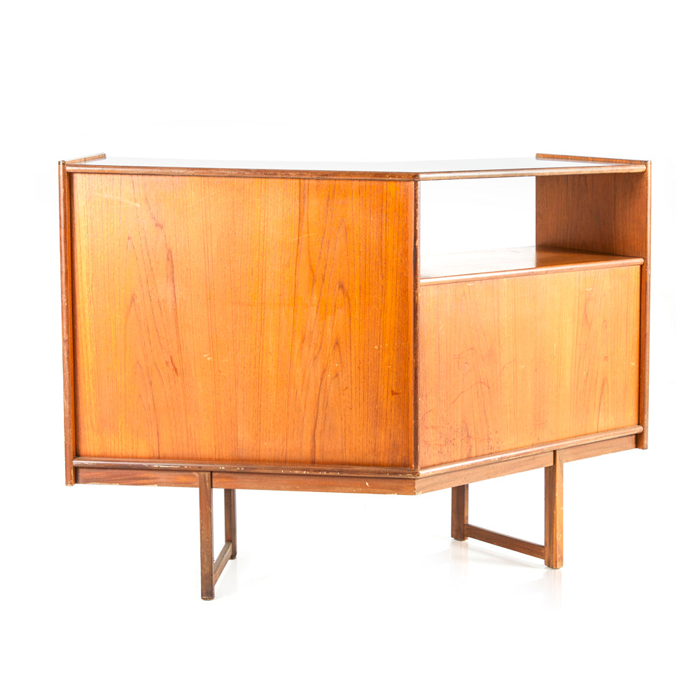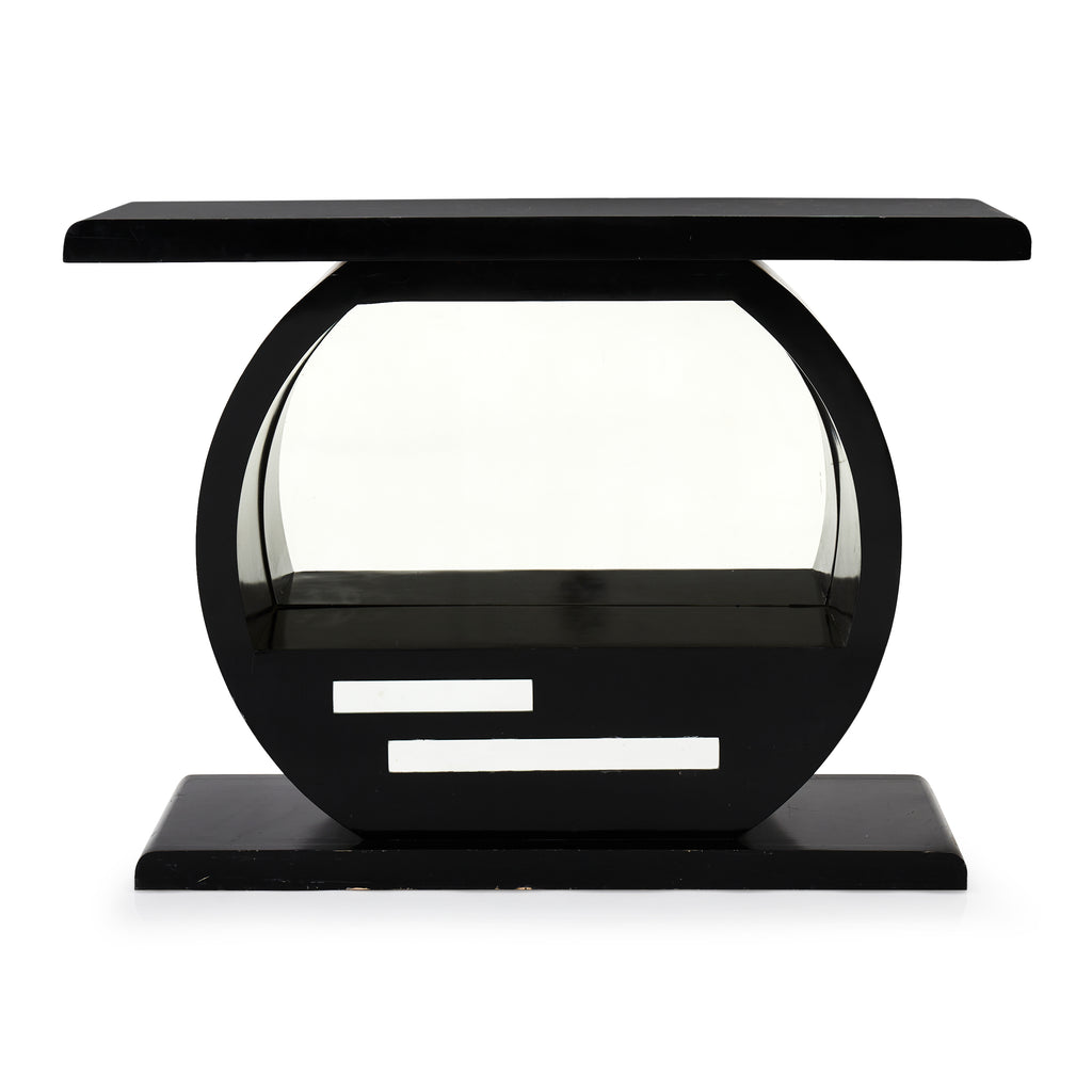 Details: Wood vintage television stand with TV removed, replaced with lit bottle display area, with velvet shelves, and intricate wallpaper Dimensions: 30" H x 45"...