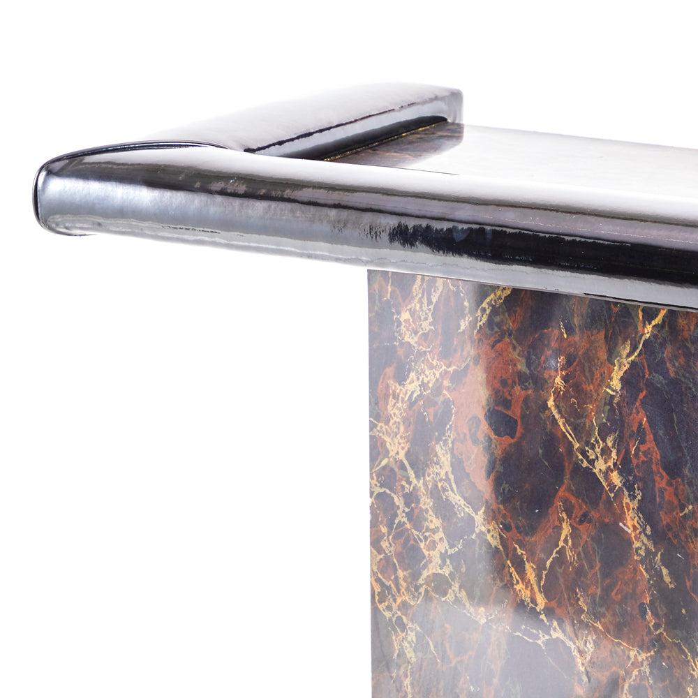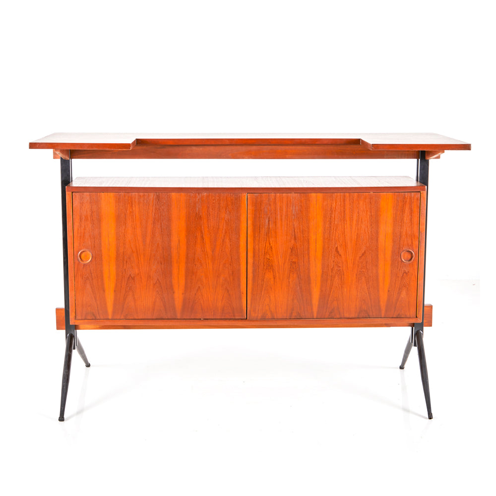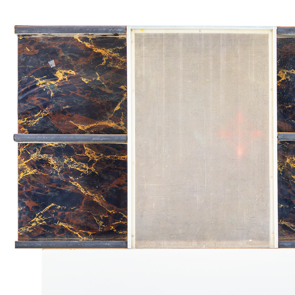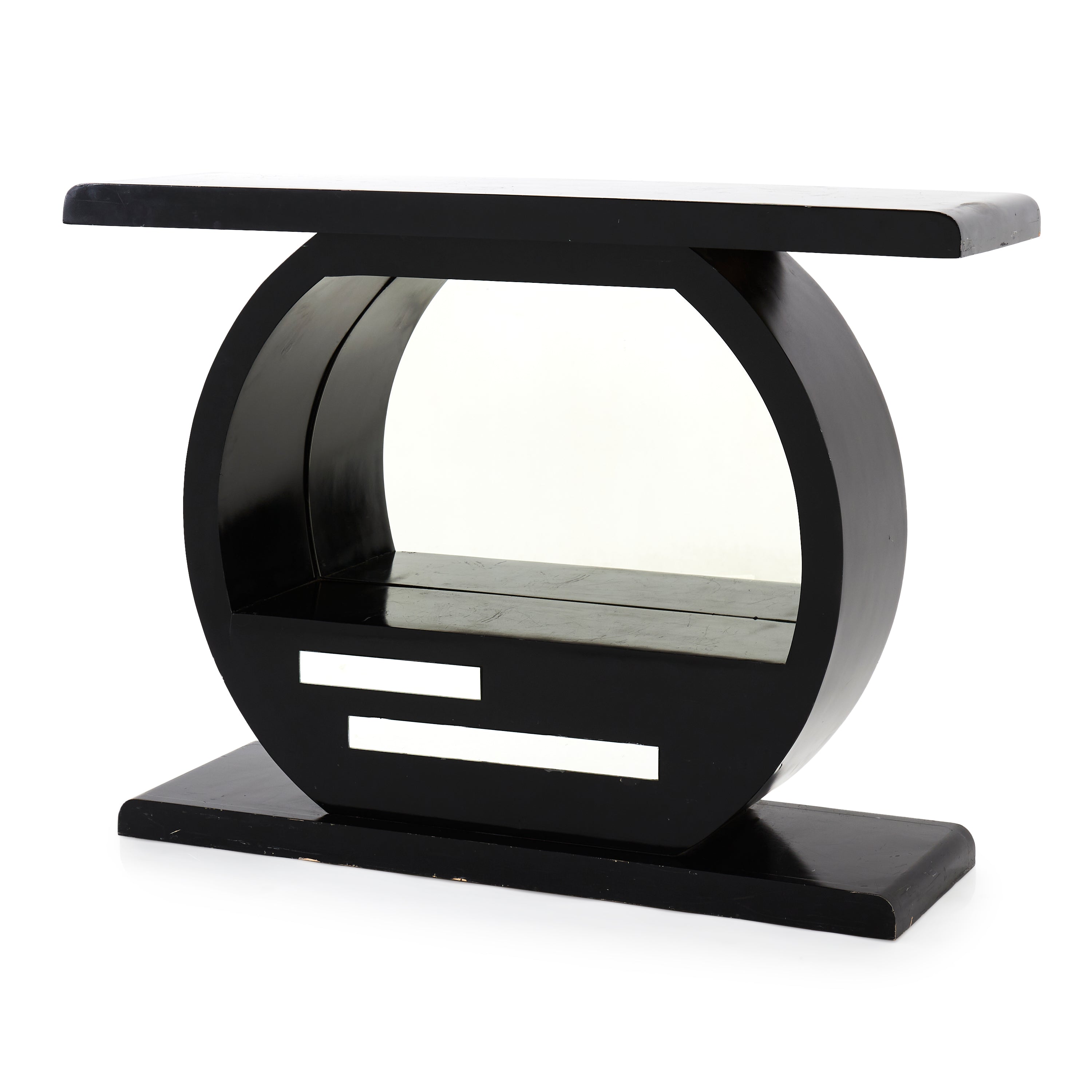 Details: Wood vintage television stand with TV removed, replaced with lit bottle display area, with velvet shelves, and intricate wallpaper Dimensions: 30" H x 45"...