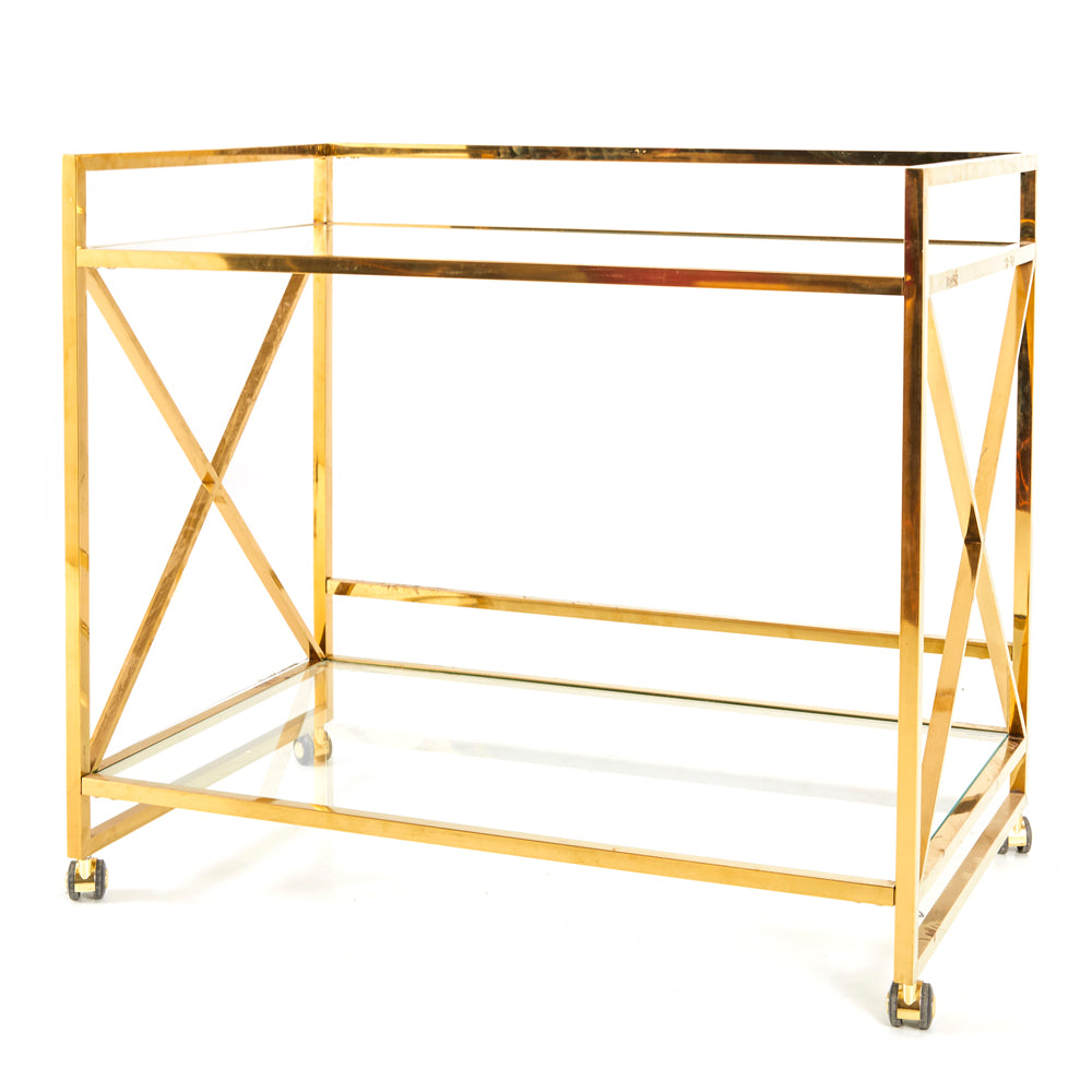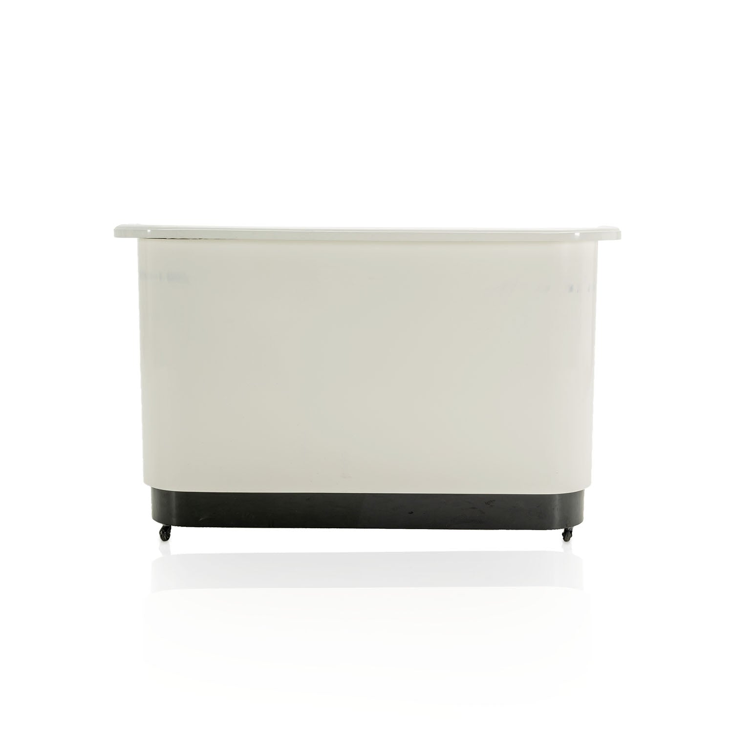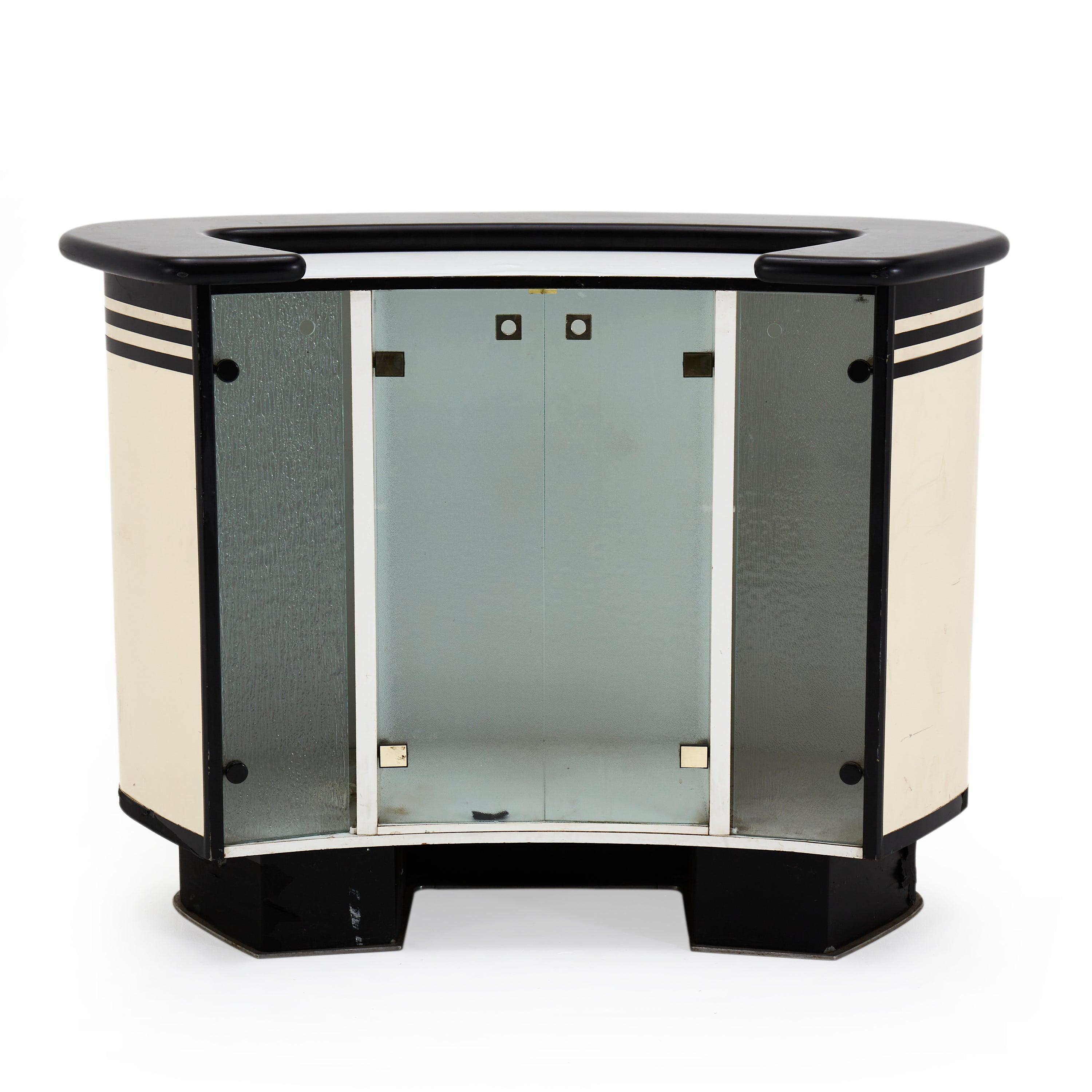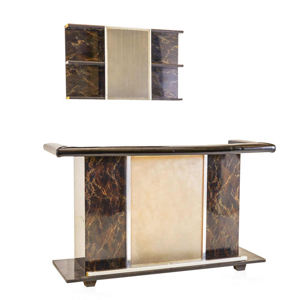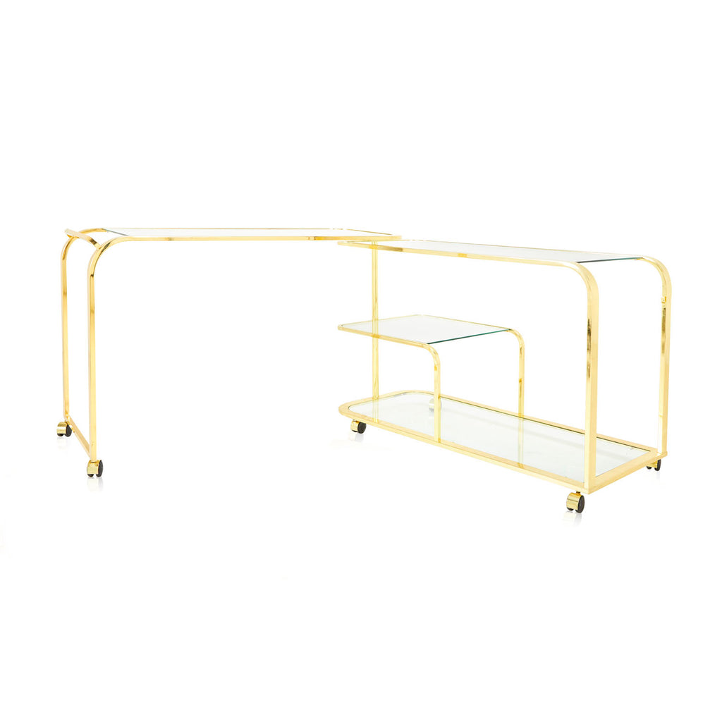Details: Vintage bar with acrylic / wood frame and velvet accents. White shelves. Glass table top. Excellent condition. Matching bar stools available (rented separately). Dimensions:...