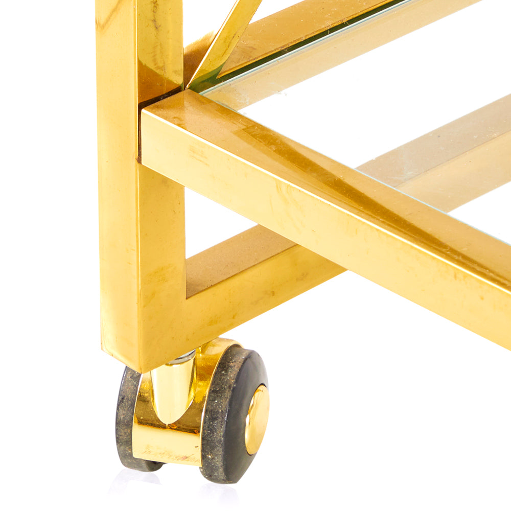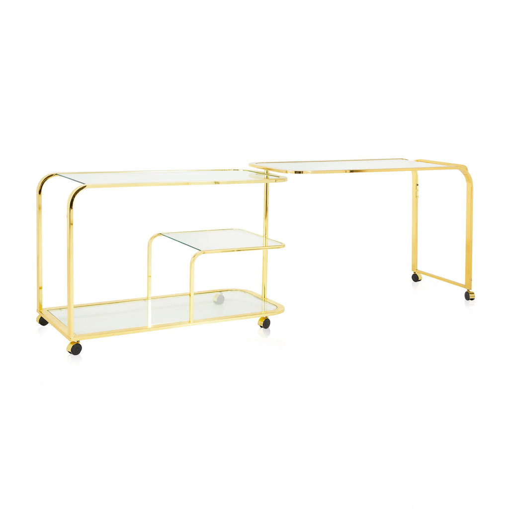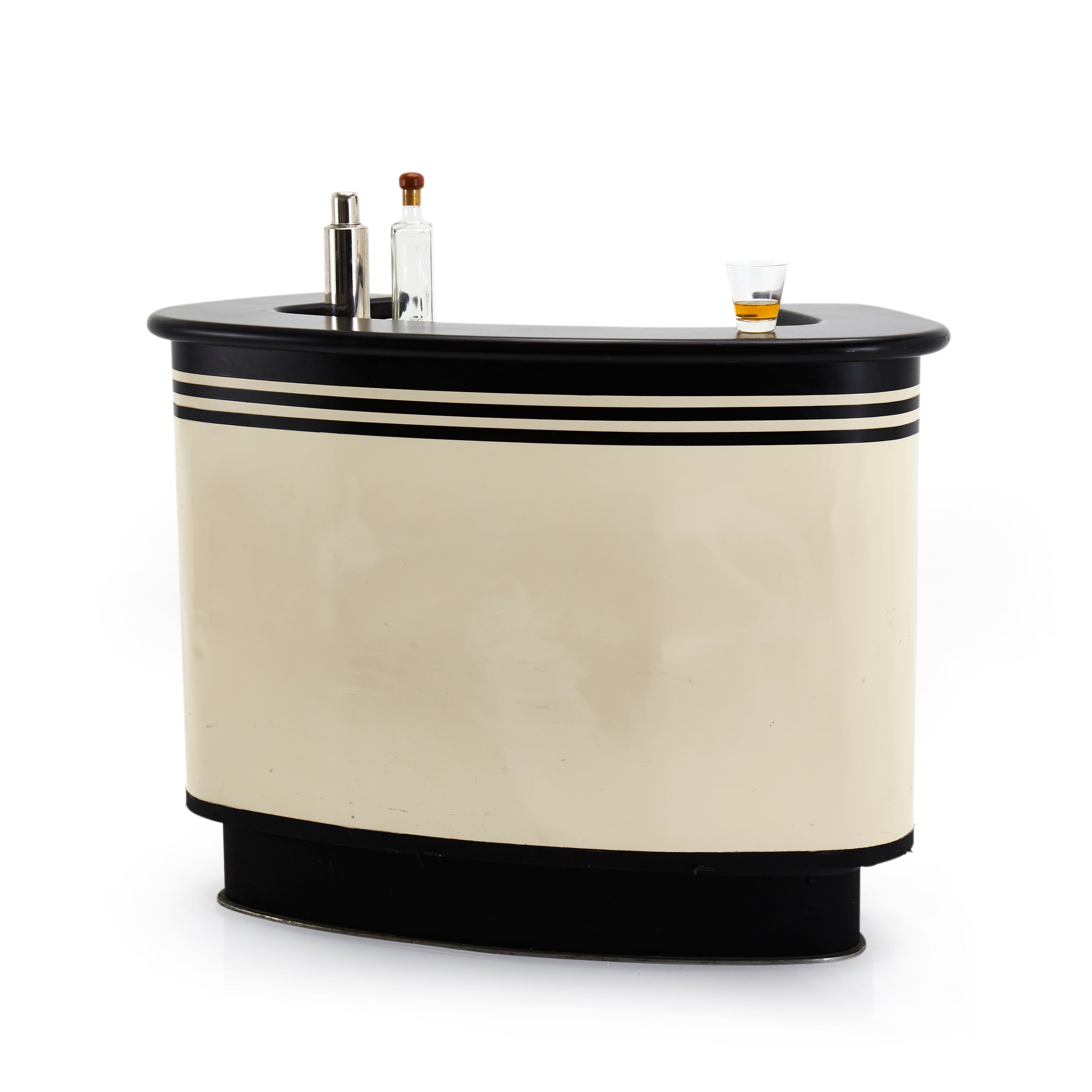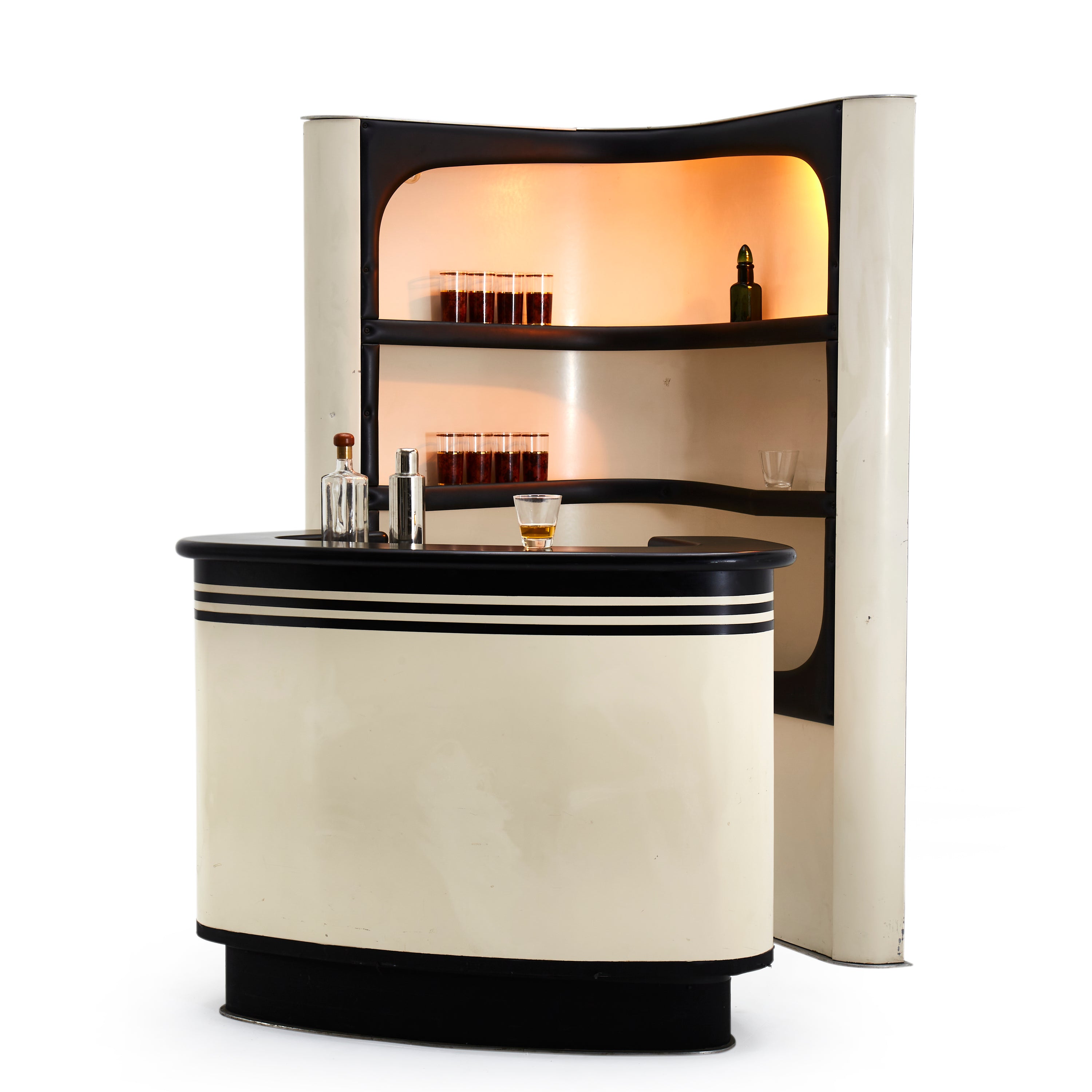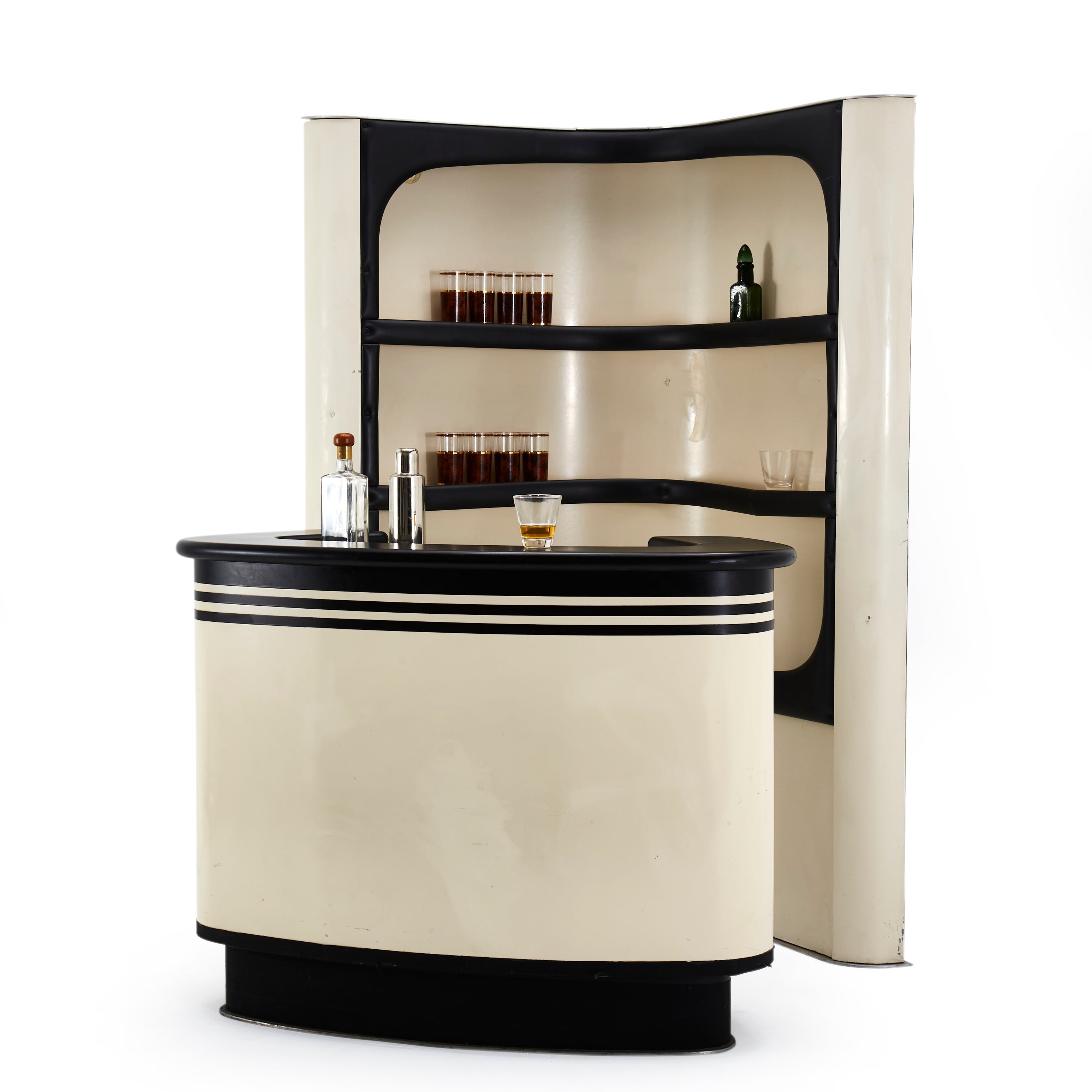Details: Vintage bar with acrylic / wood frame and velvet accents. White shelves. Glass table top. Excellent condition. Matching bar stools available (rented separately). Dimensions:...