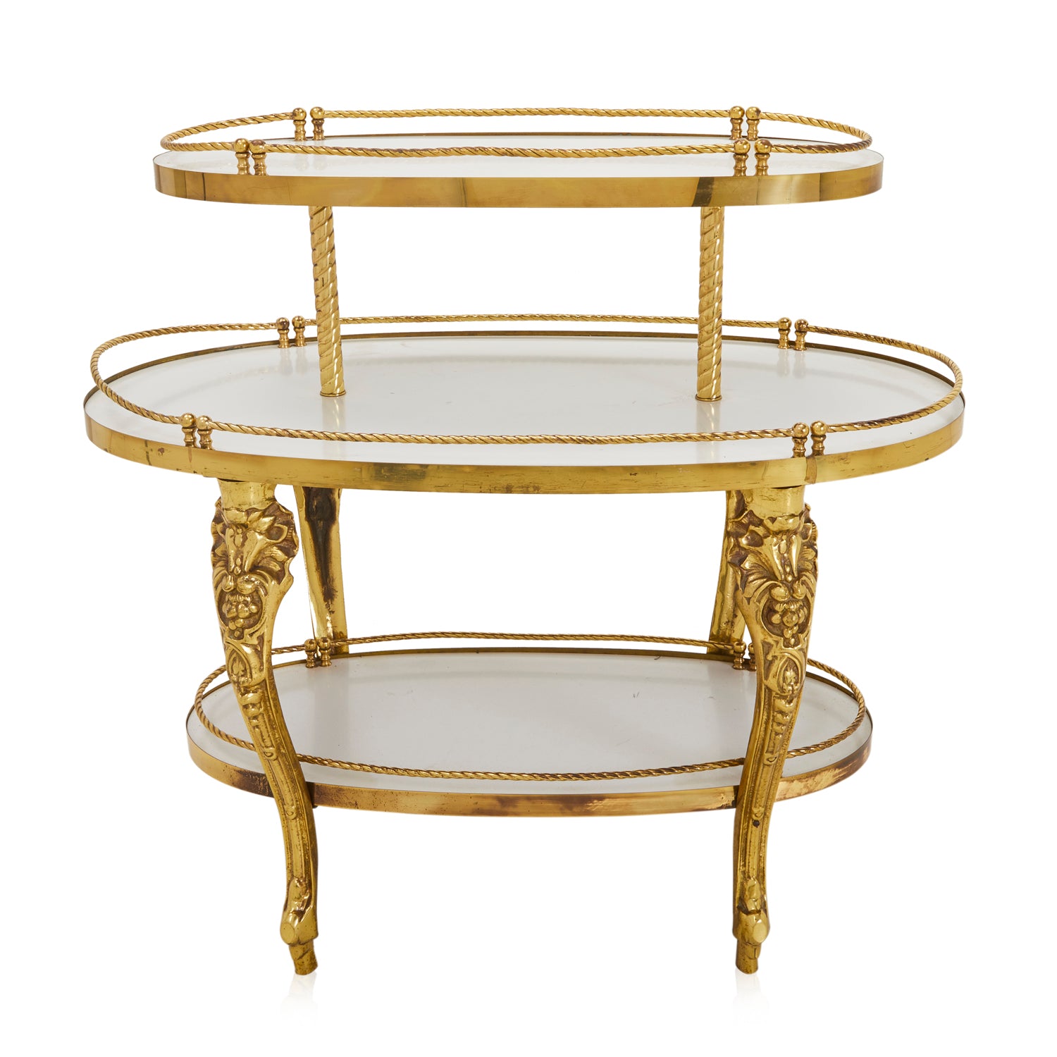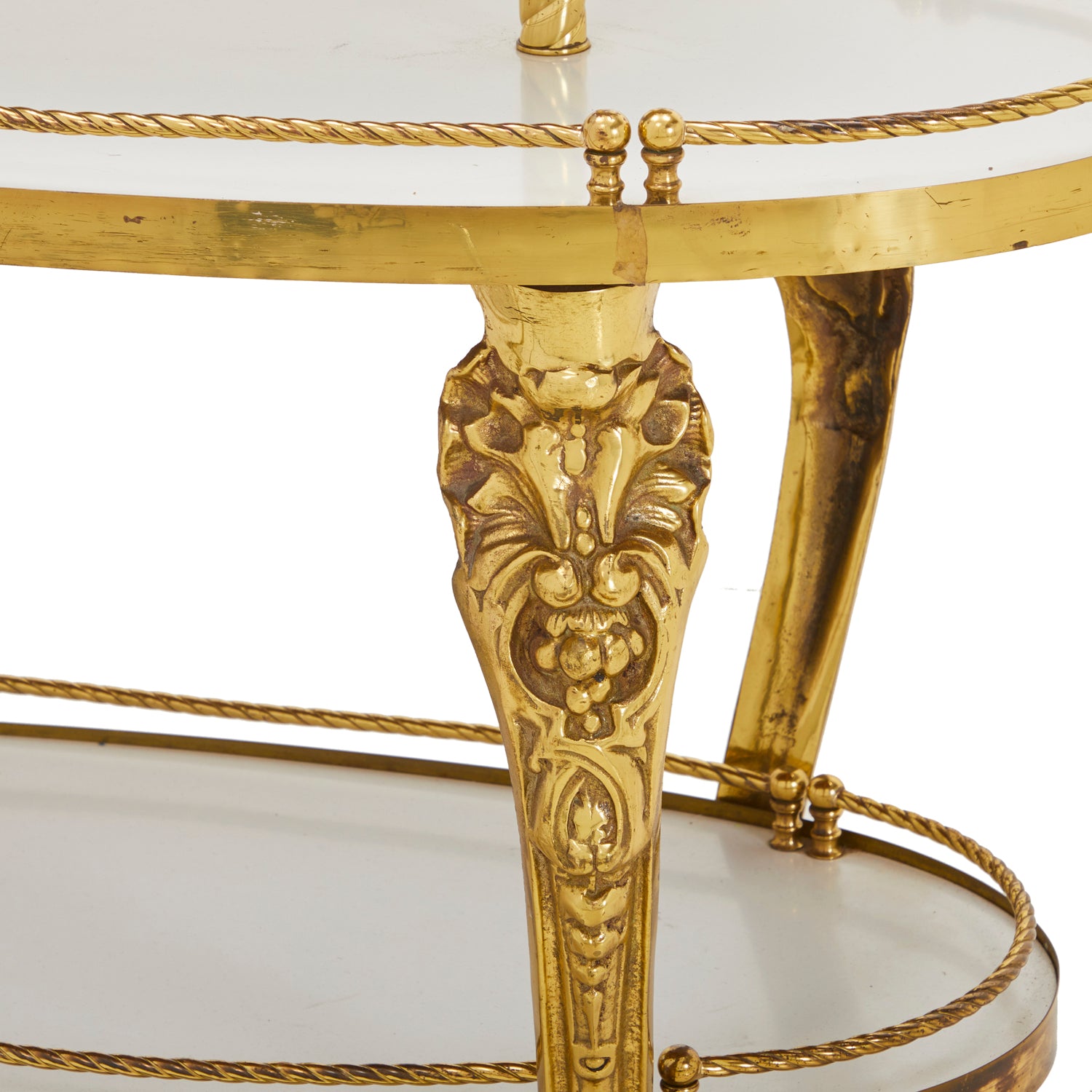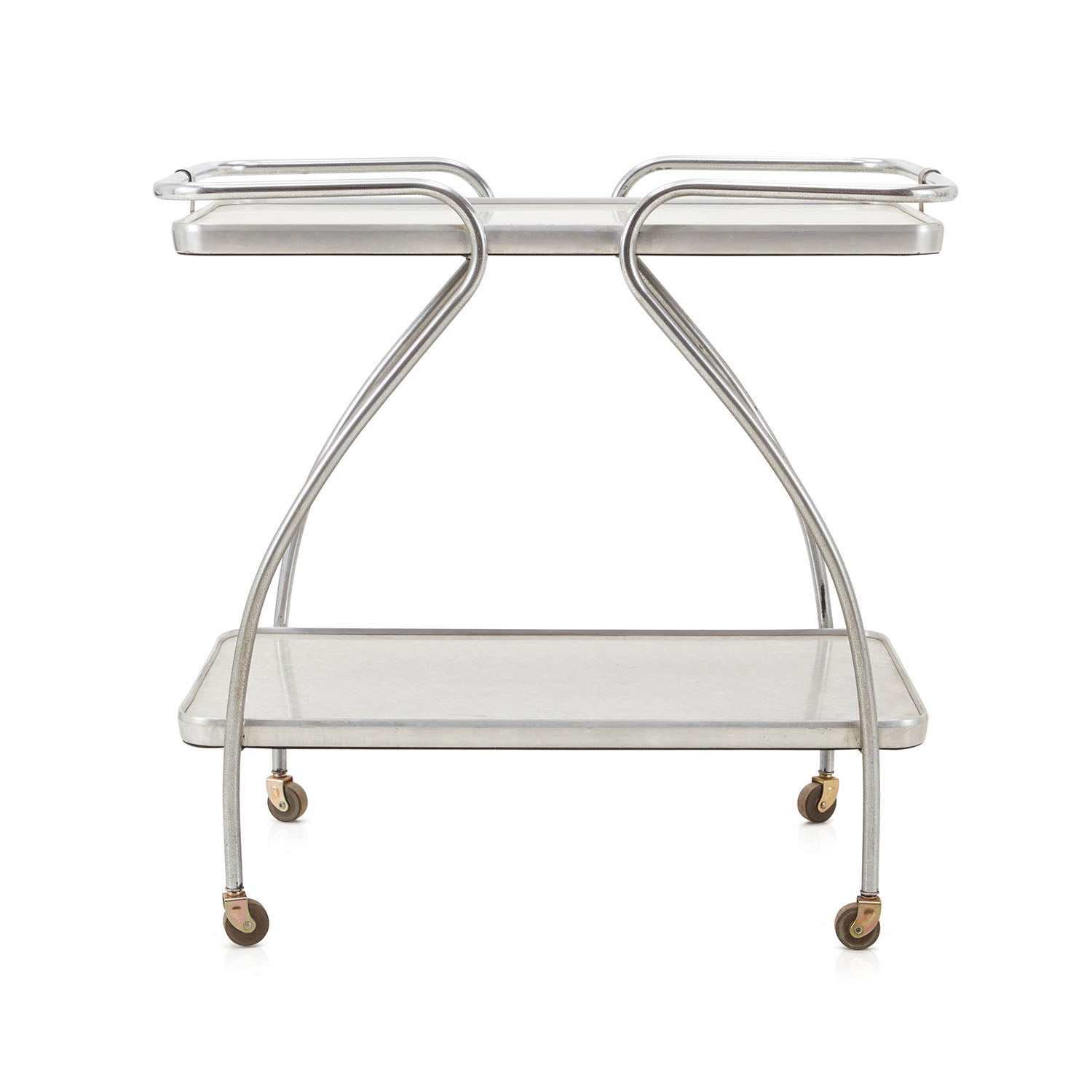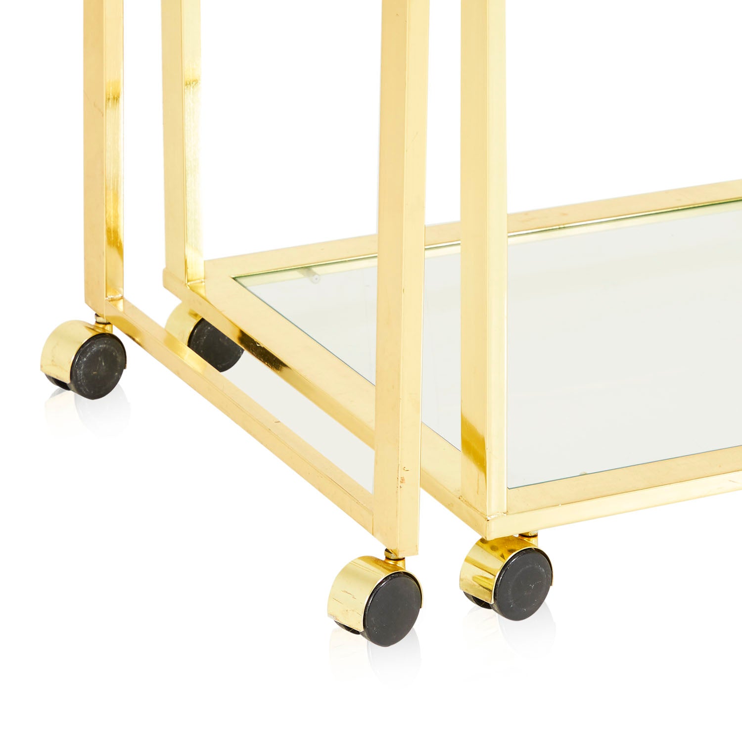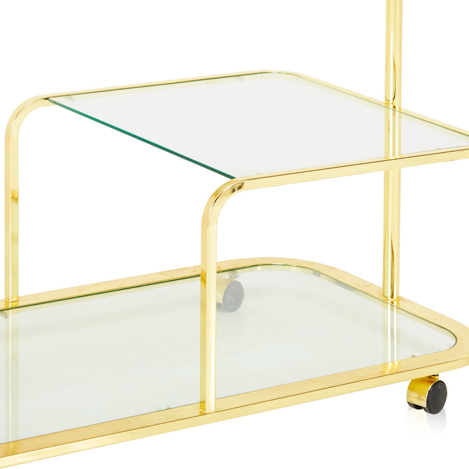 Details: Vintage bar with acrylic / wood frame and velvet accents. White shelves. Glass table top. Excellent condition. Matching bar stools available (rented separately). Dimensions:...