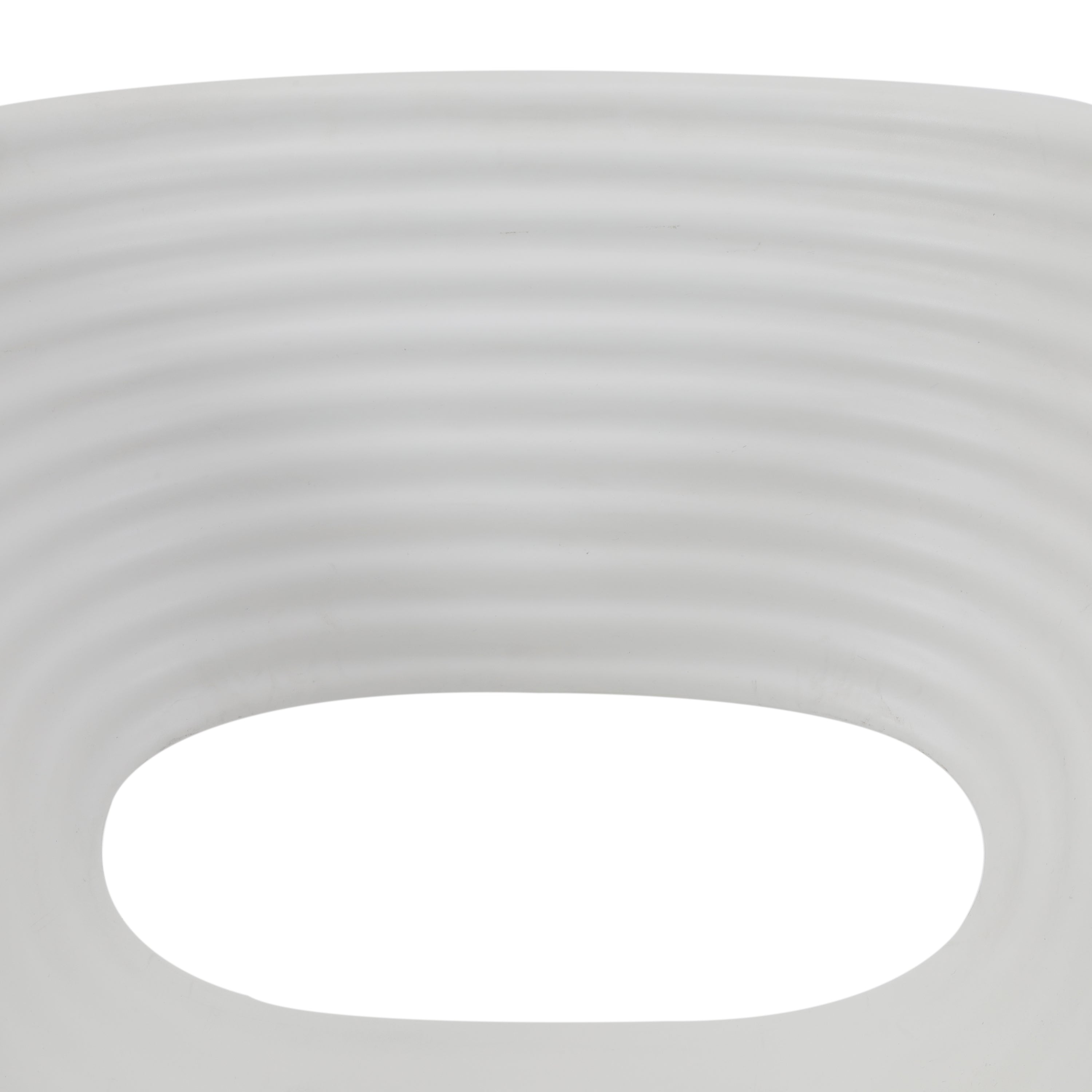 Category: chair, circular, Futuristic, oblong, round, rounded, shell, Stackable, White
