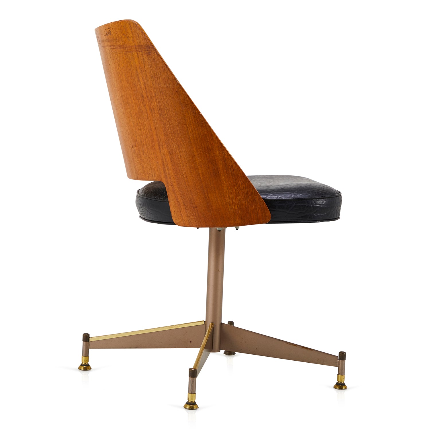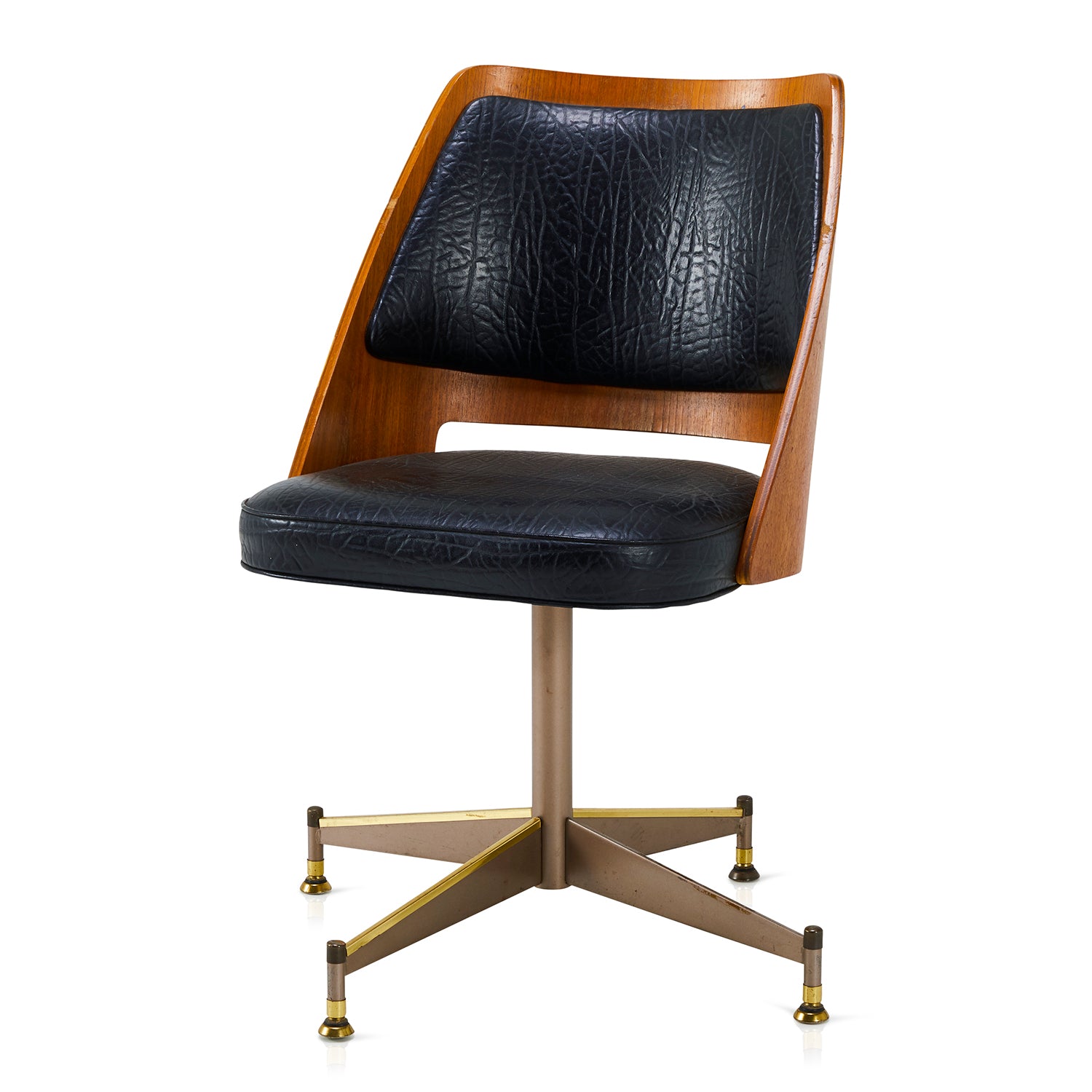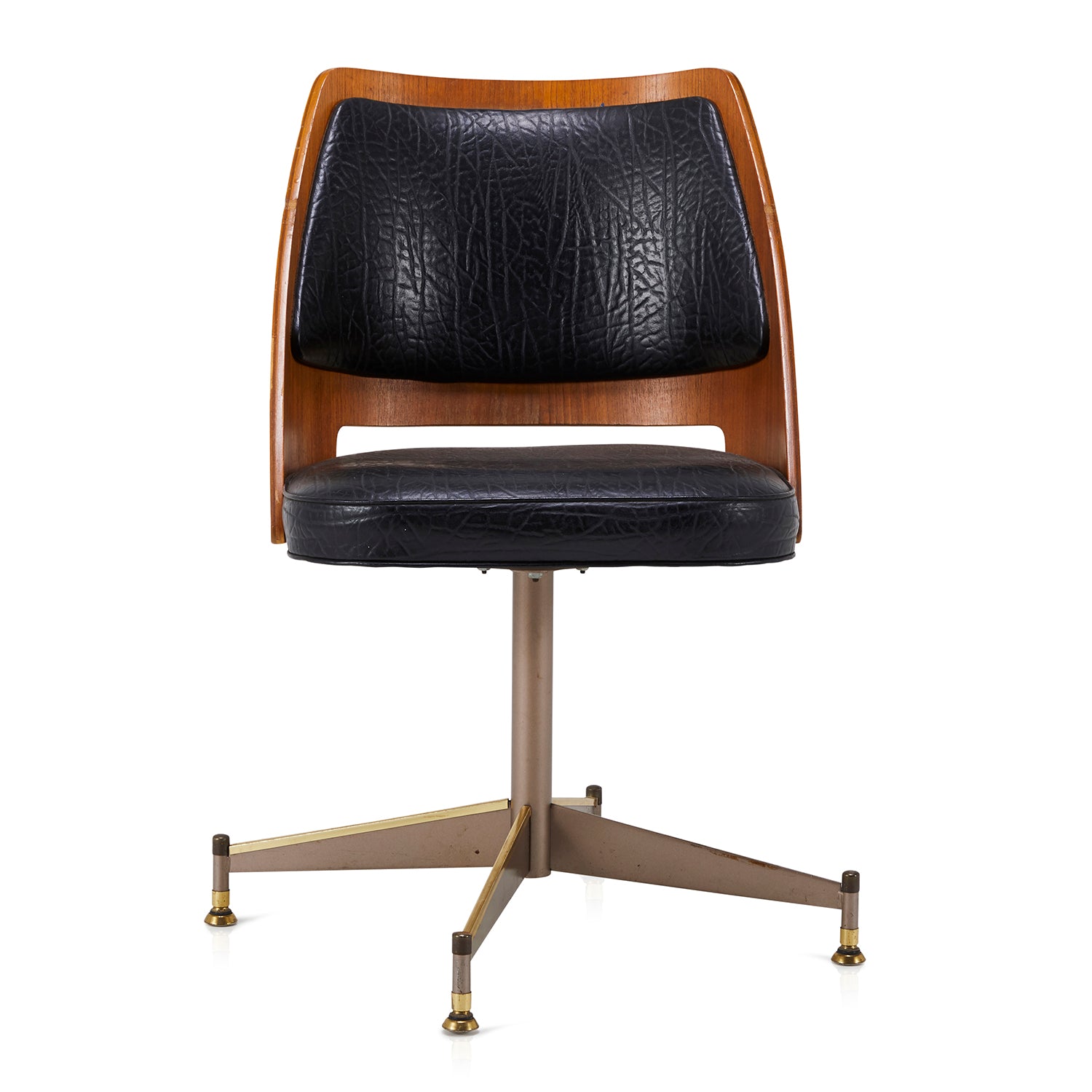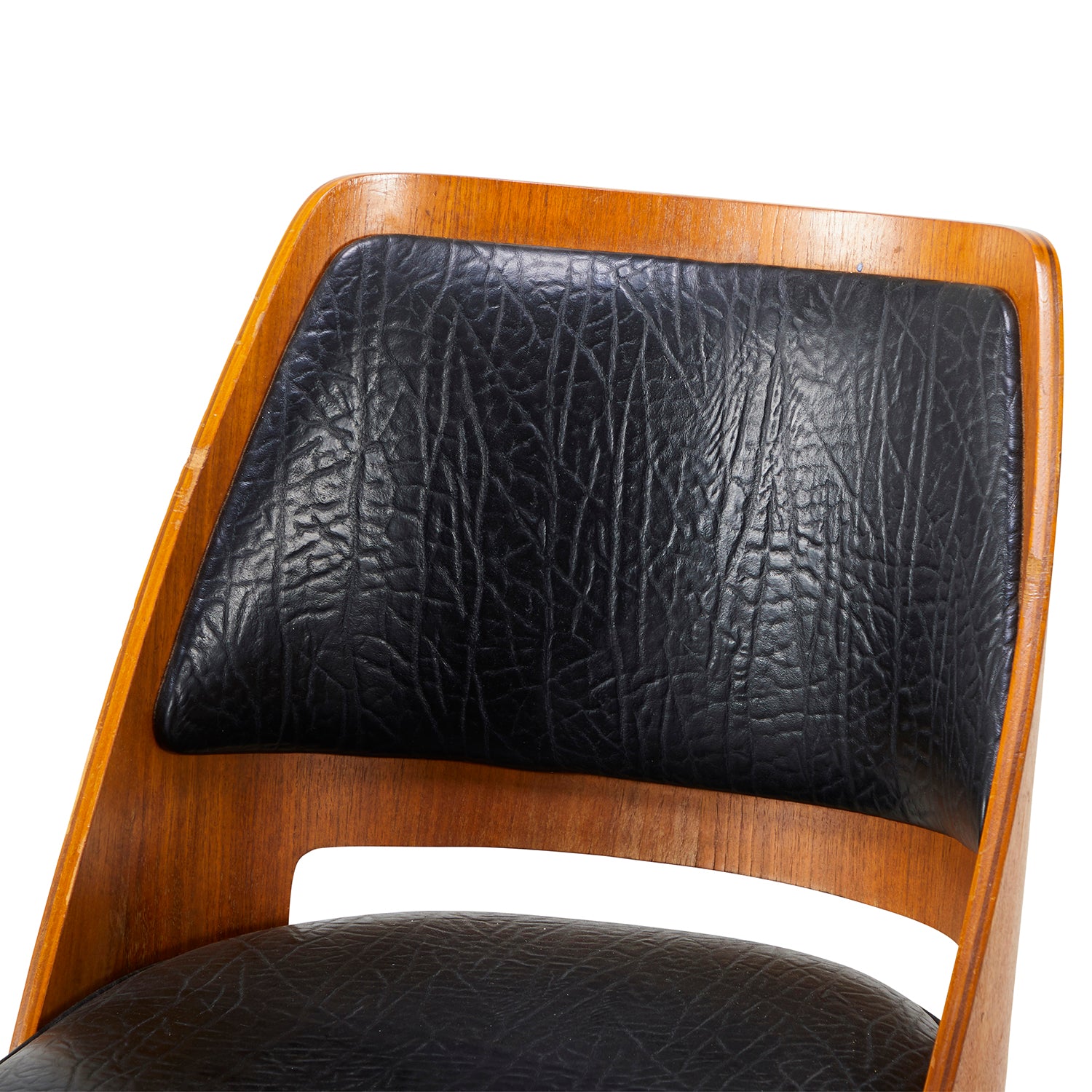 Details: Modern armchair with a narrow backrest and curved arms, constructed of ash wood, iron rods and a black leather seat Dimensions: 32.25" H x 23.5"...