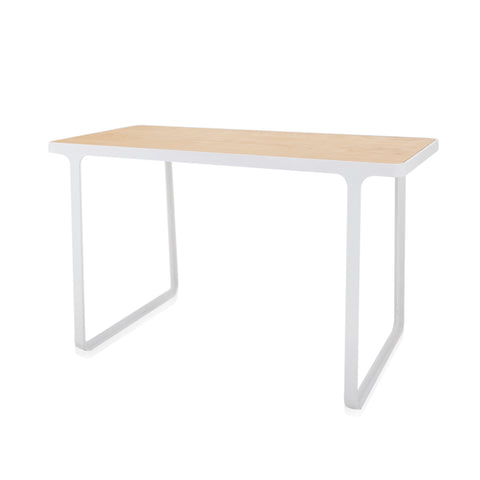 Details: White table / desk with 2 yellow metal legs Dimensions: 28" H x 48" W x 30" D