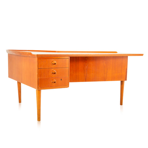 Details: L-shaped light wood desk with wood legs and three drawers Dimensions: 43" H x 62" W x 30" D
