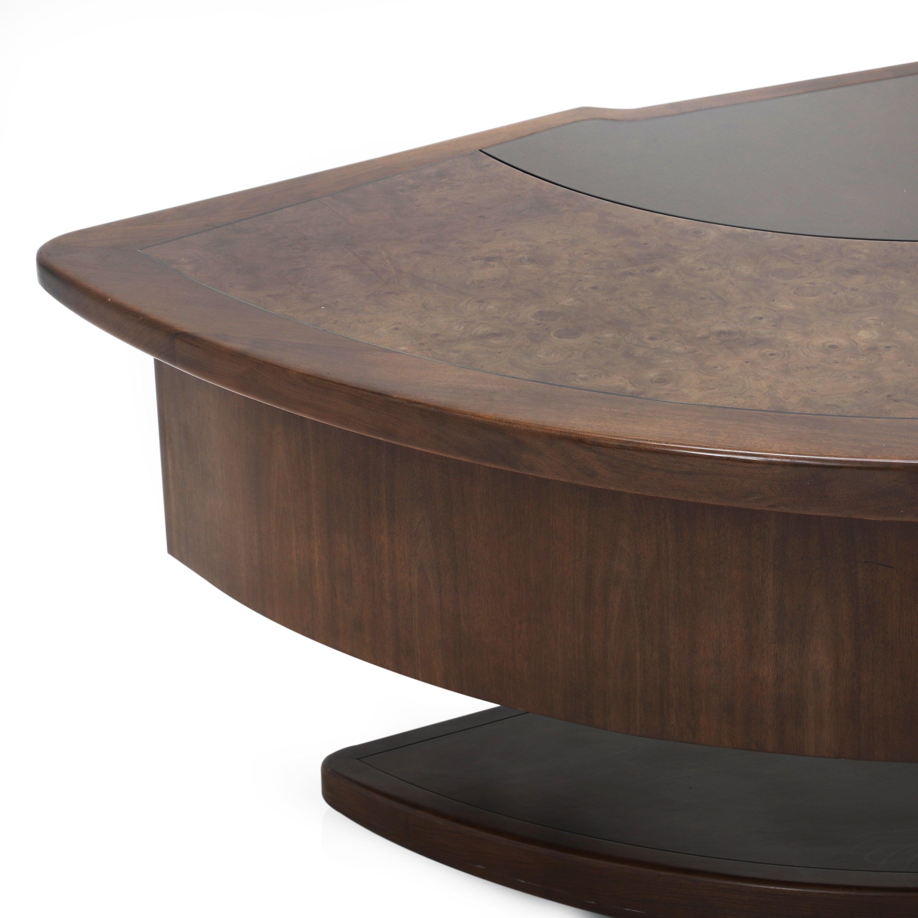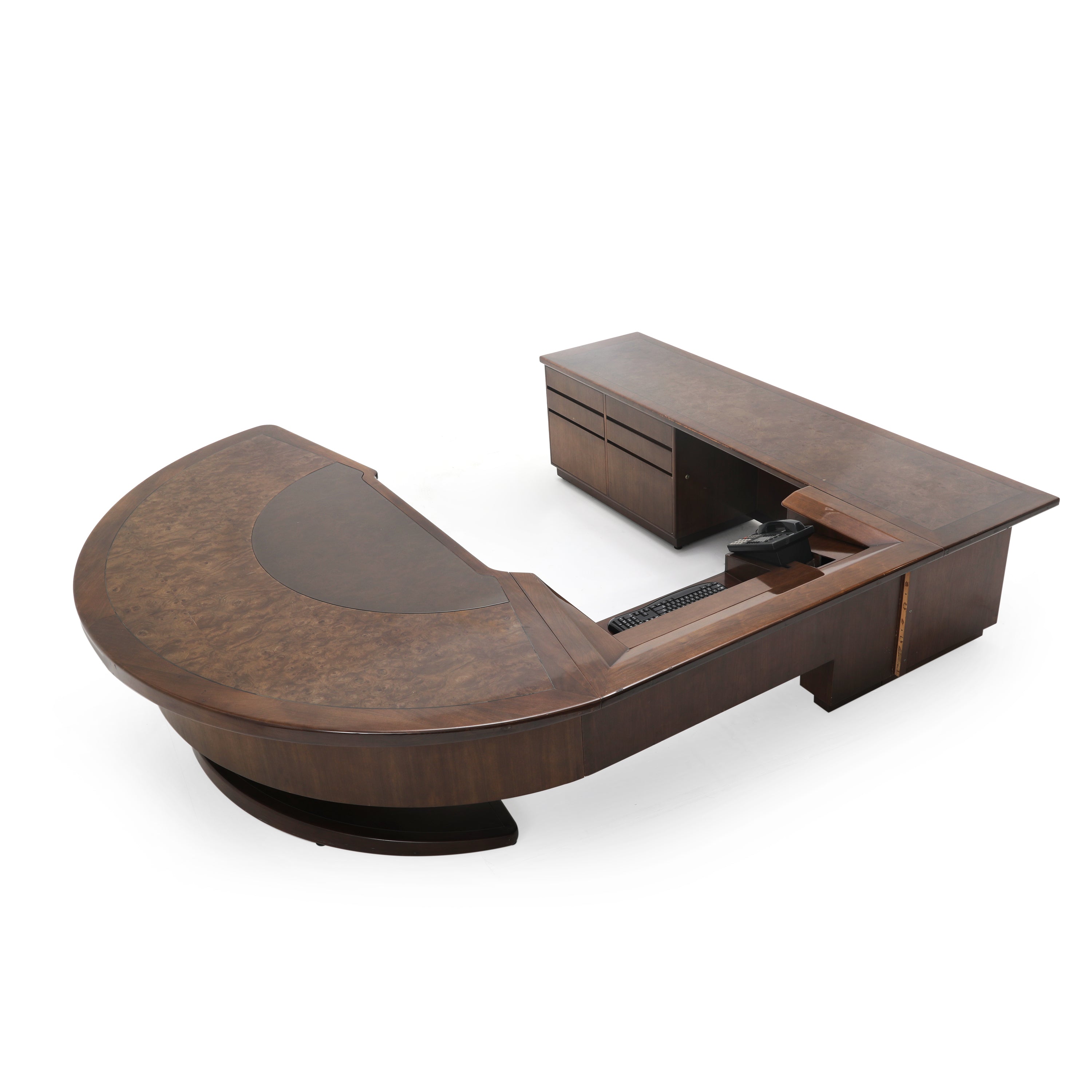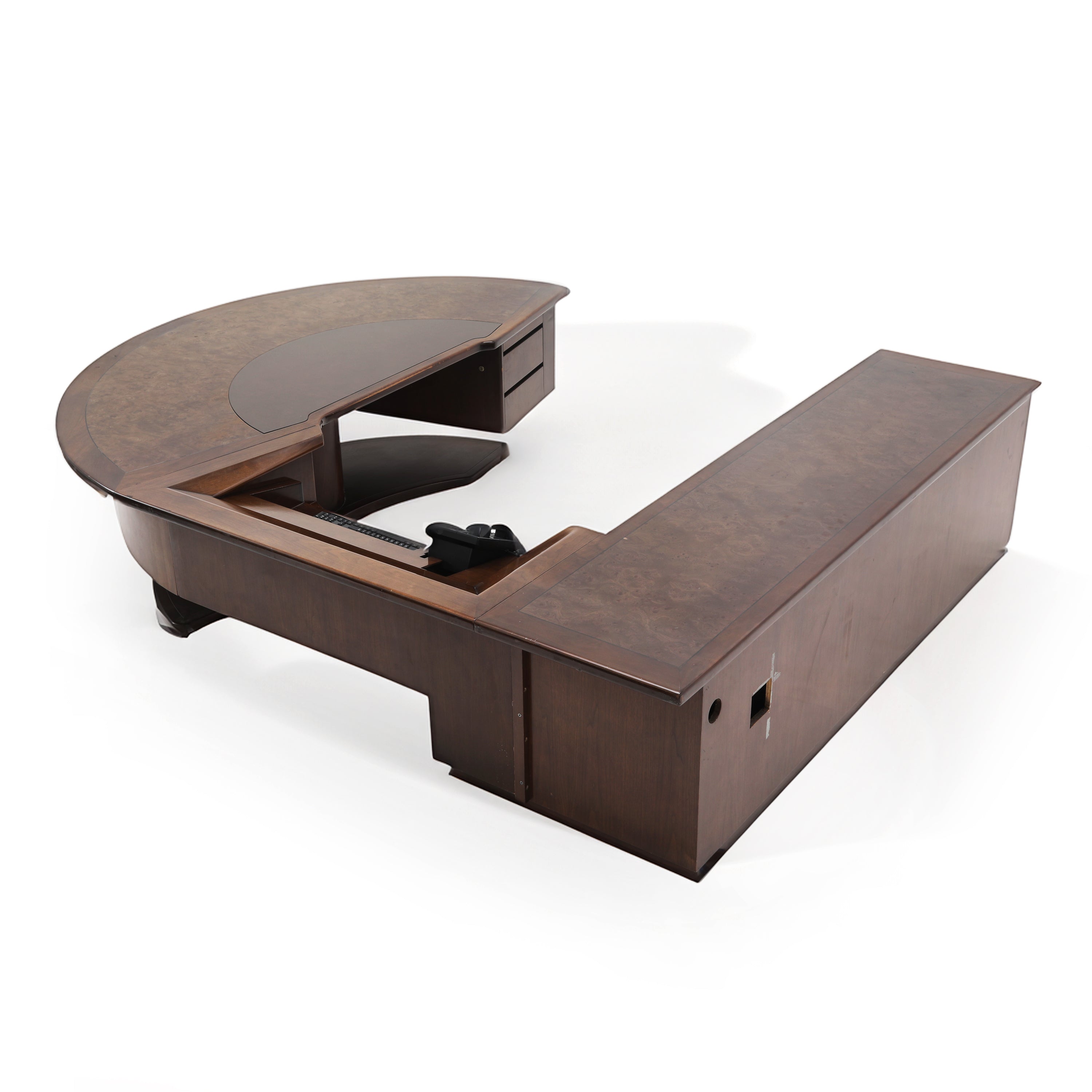 Details: Very rare Monteverdi Young Demi-Lune Executive Desk. (High replacement value, handle with the utmost care) Dimensions: Curved desk: 29ʺH × 96ʺW x 48ʺD Middle desk: 29"H x...